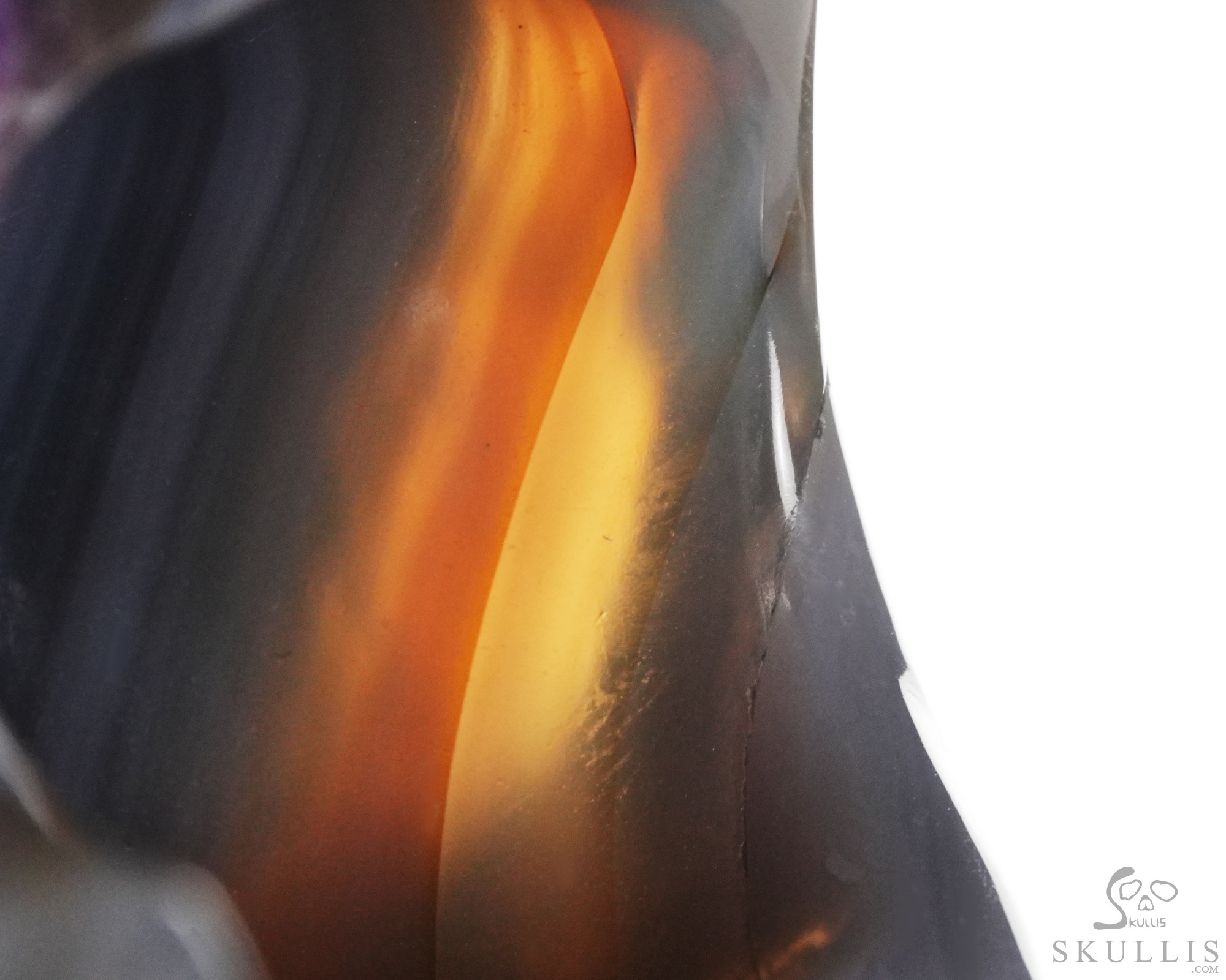 You are looking at an Agate Amethyst Geode skull. The skull is 6.2 inches from front to back.