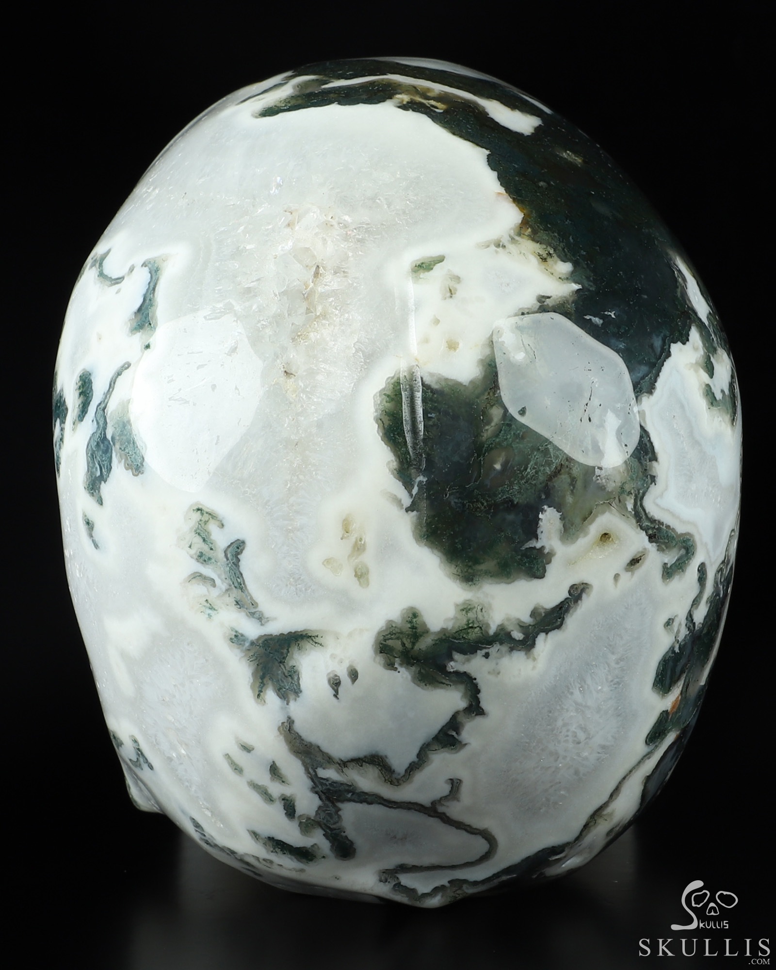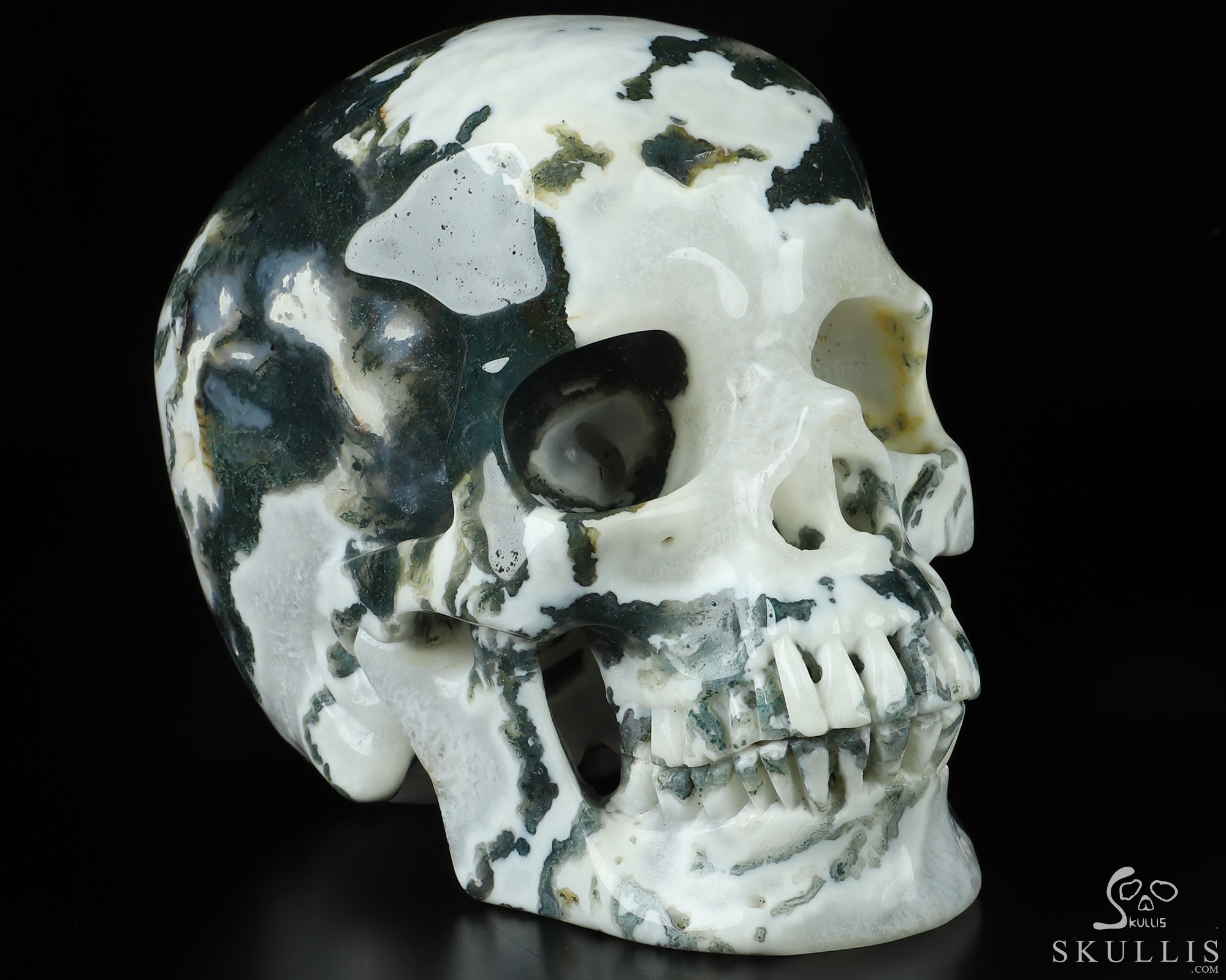 Lifesized 6.2" Green Moss Agate Carved Crystal Skull, Super Realistic