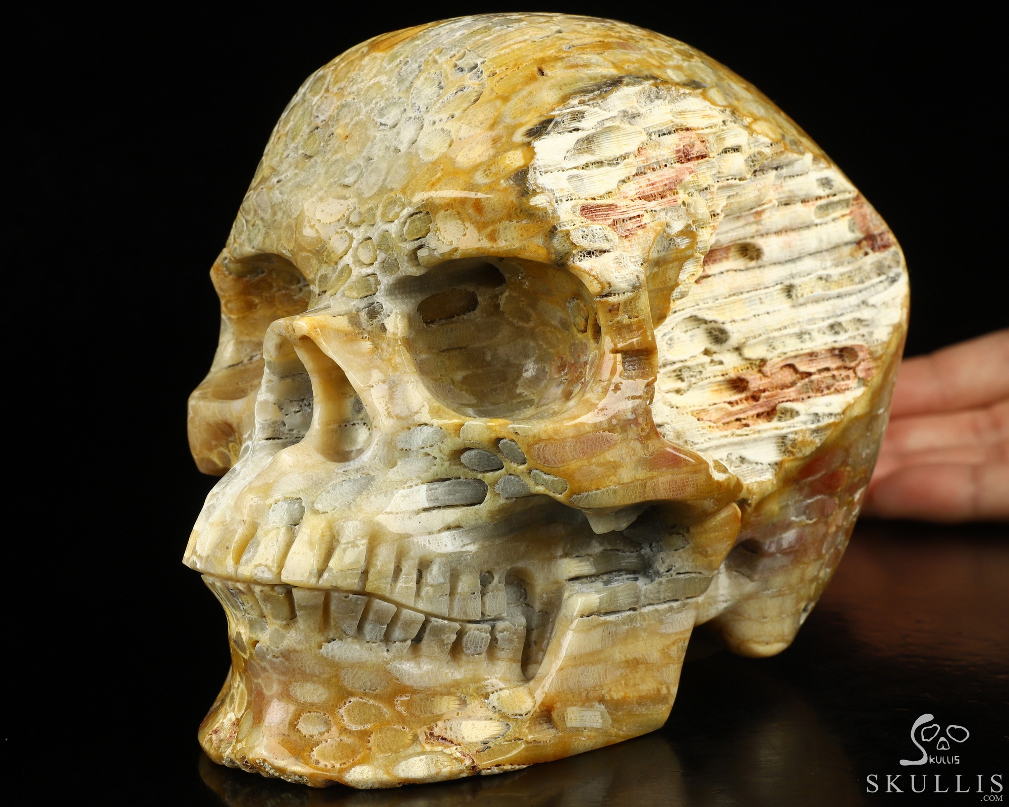 5.1" Coral Fossil Hand Carved Crystal Skull, Super Realistic, Crystal Healing