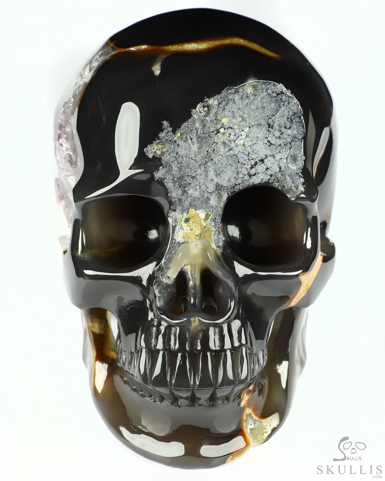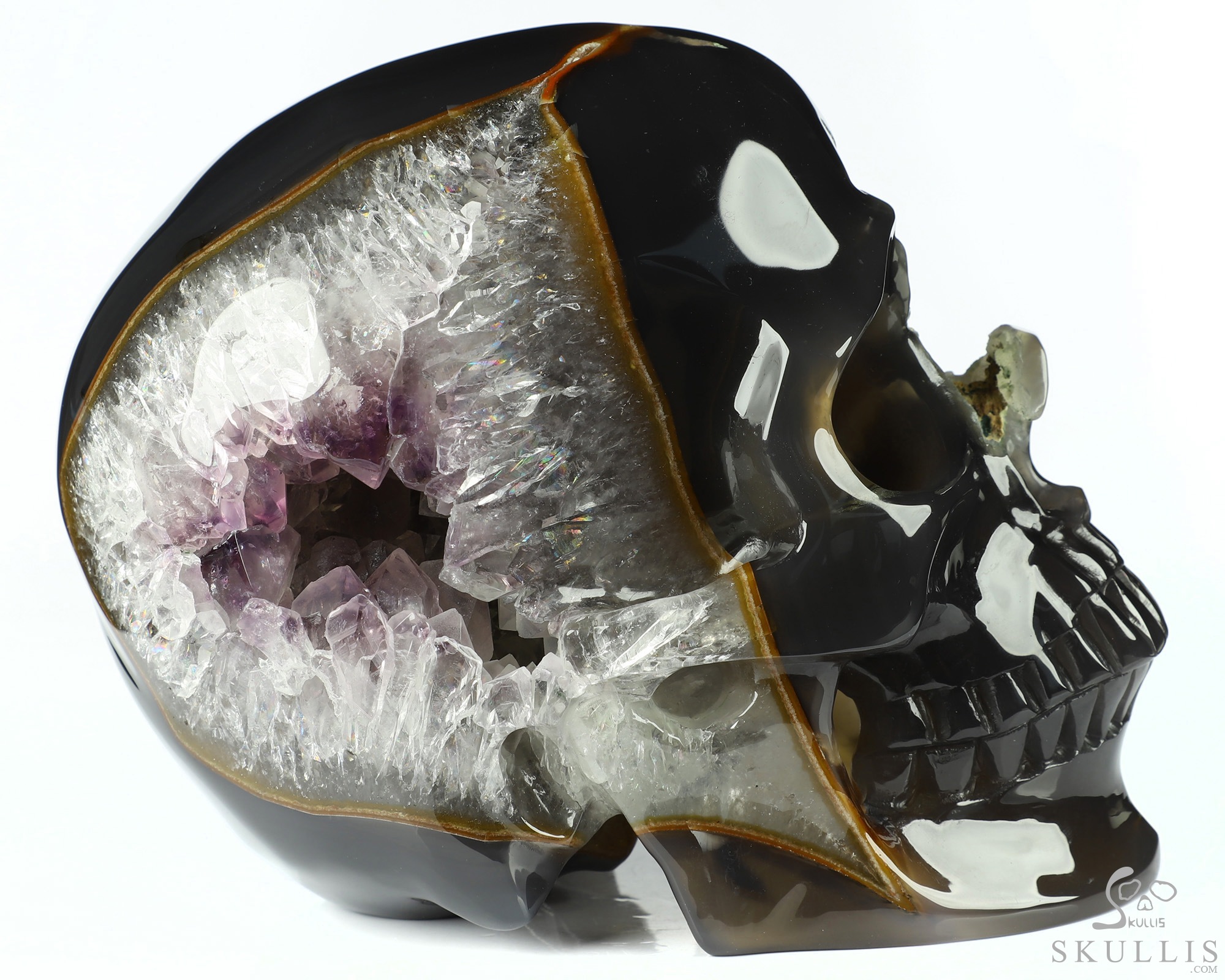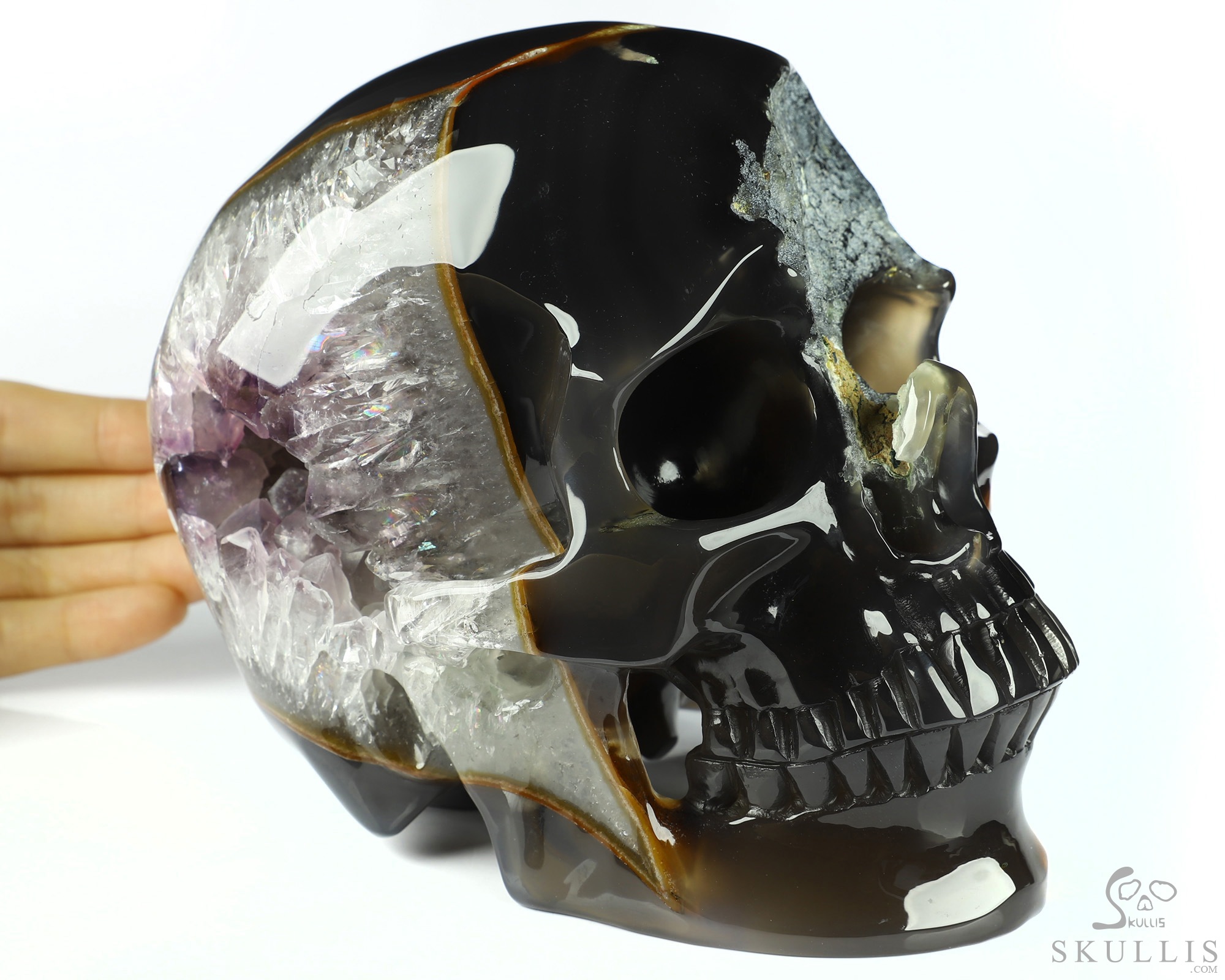Lifesized 7.5" Agate Amethyst Geode Hand Carved Crystal Skull, Super Realistic, Crystal Healing