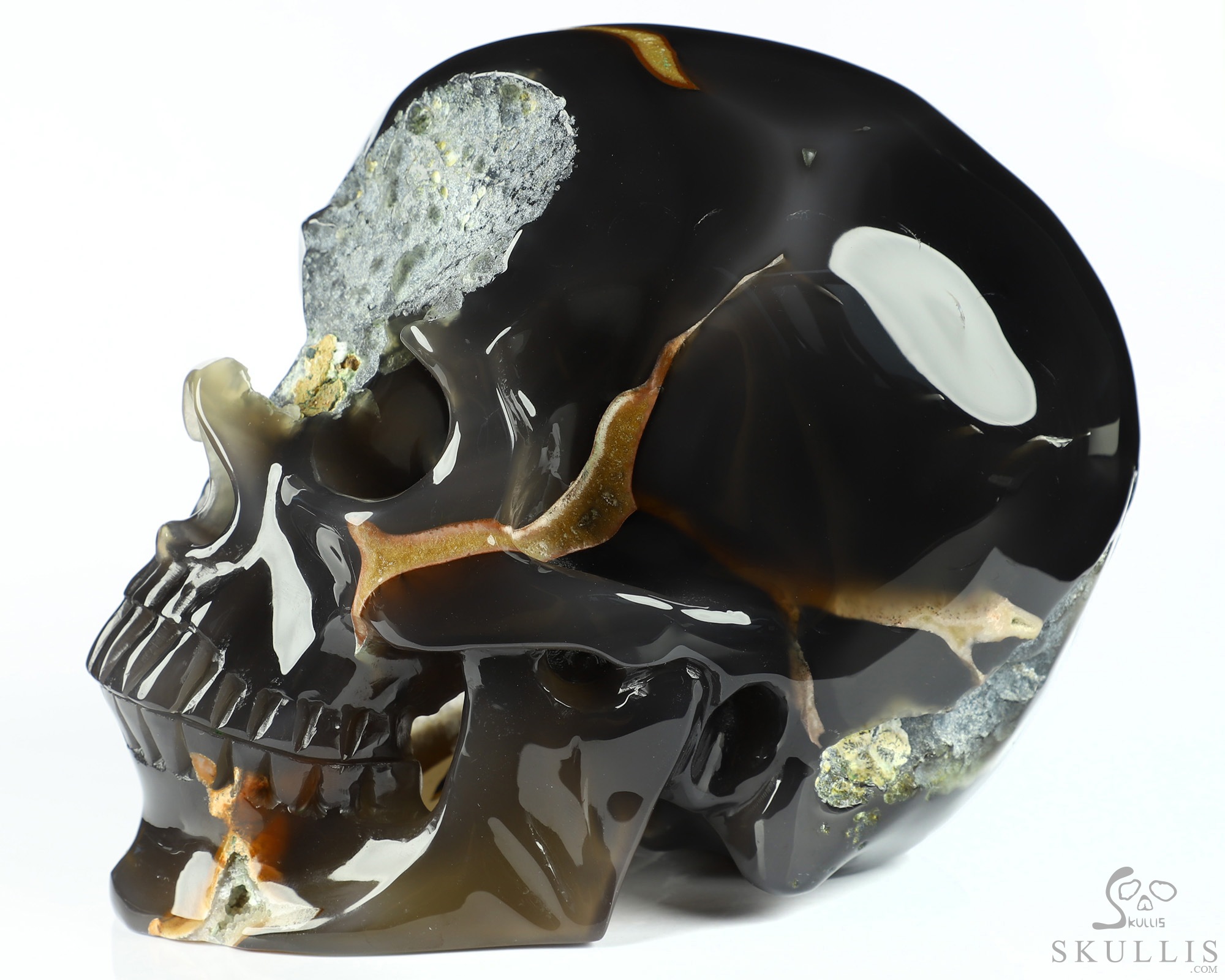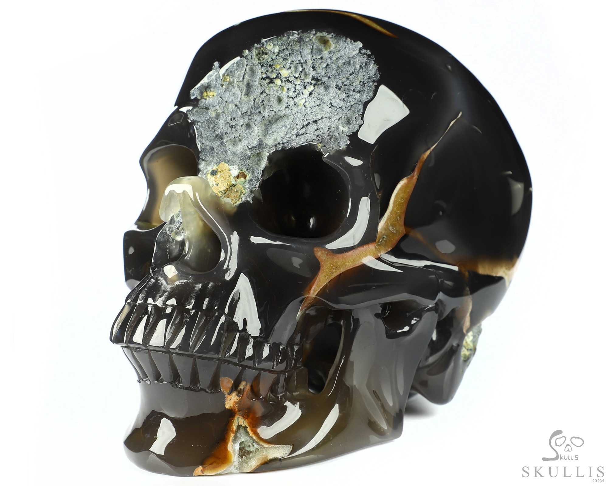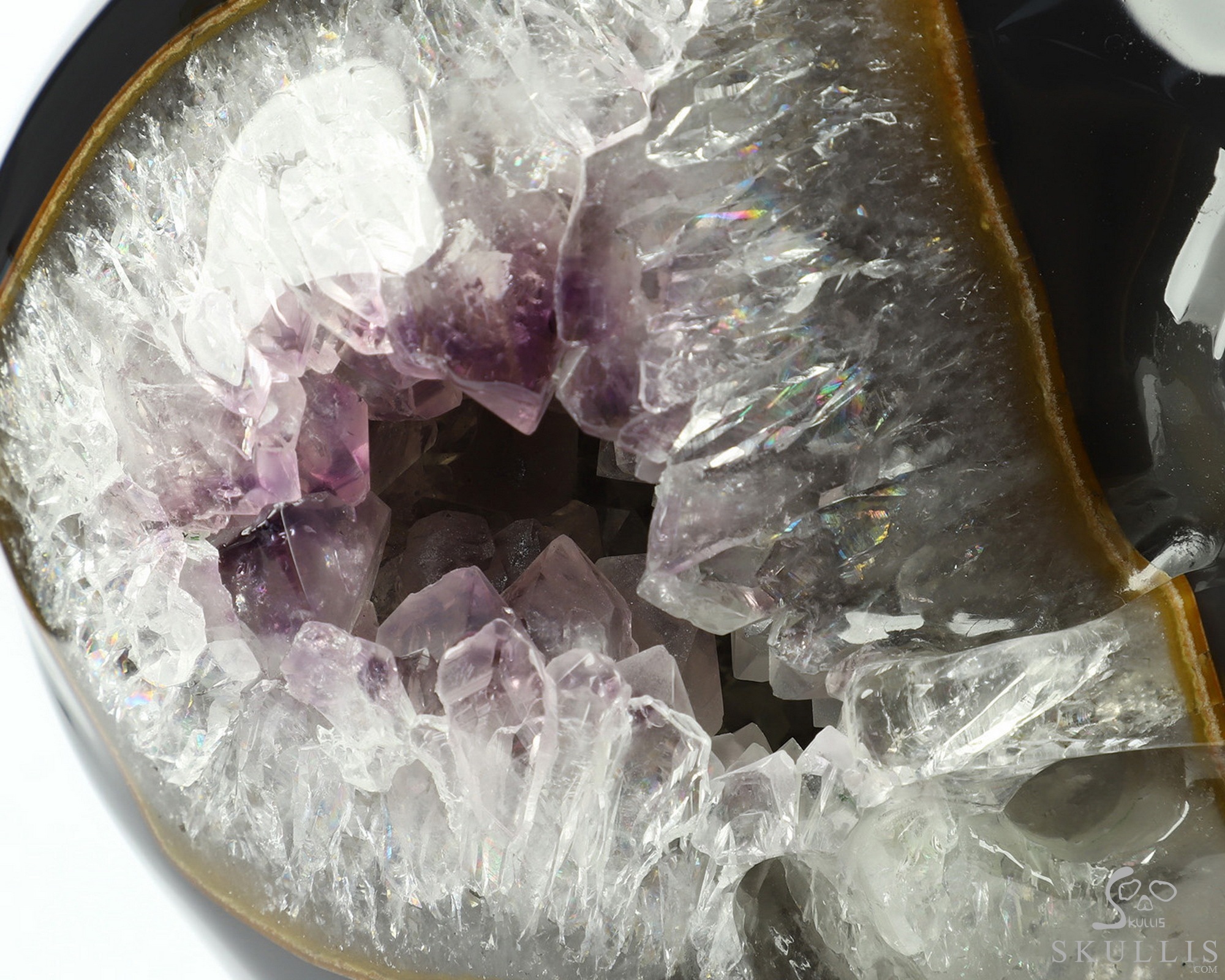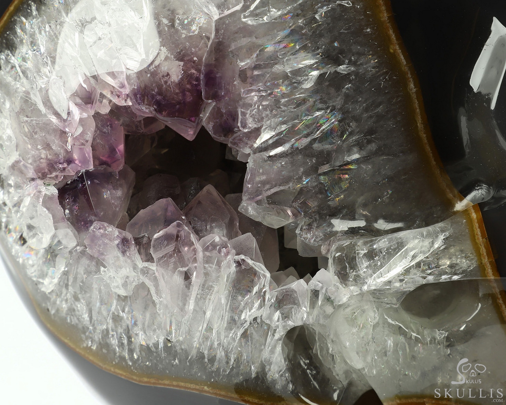 Lifesized 7.5" Agate Amethyst Geode Hand Carved Crystal Skull, Super Realistic, Crystal Healing