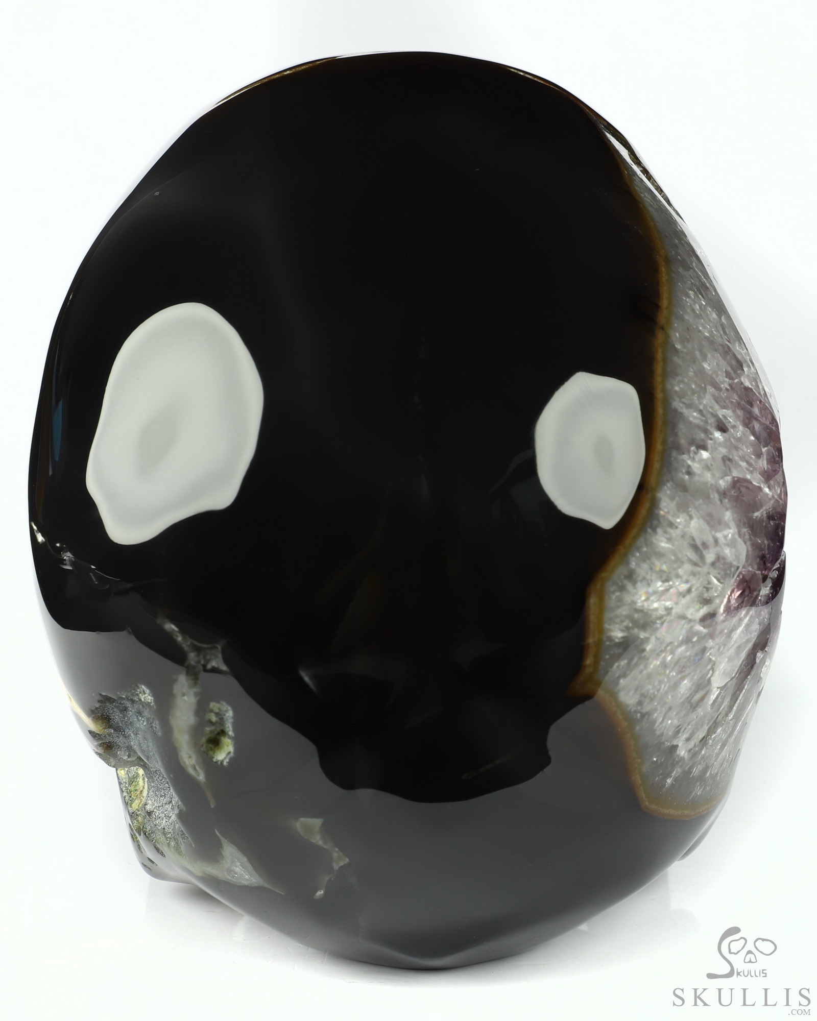 6.3" Agate Amethyst Geode Hand Carved Crystal Skull Fine Art Sculpture, Crystal Healing