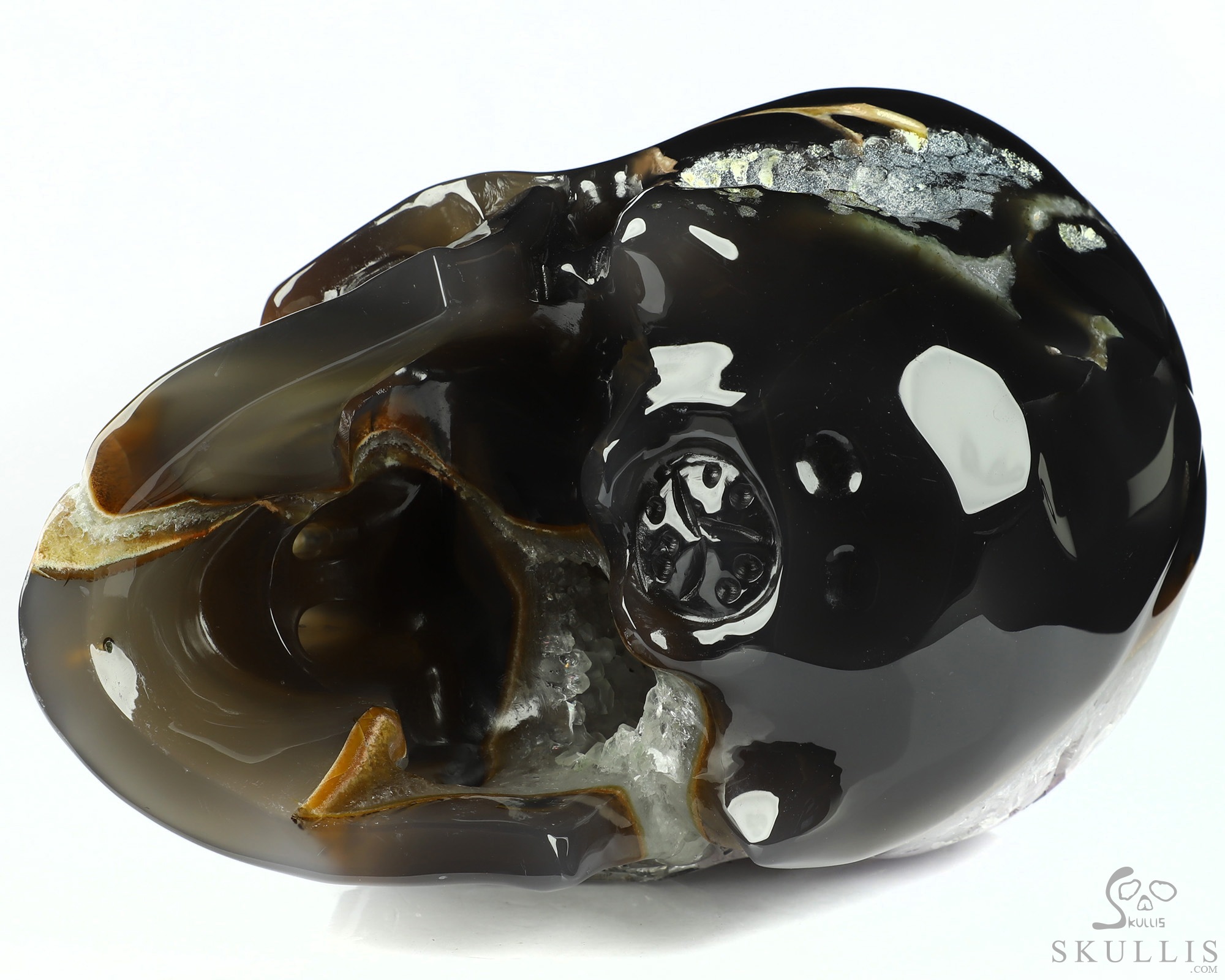 Lifesized 6.5" Agate Amethyst Geode Hand Carved Crystal Skull, Super Realistic, Crystal Healing