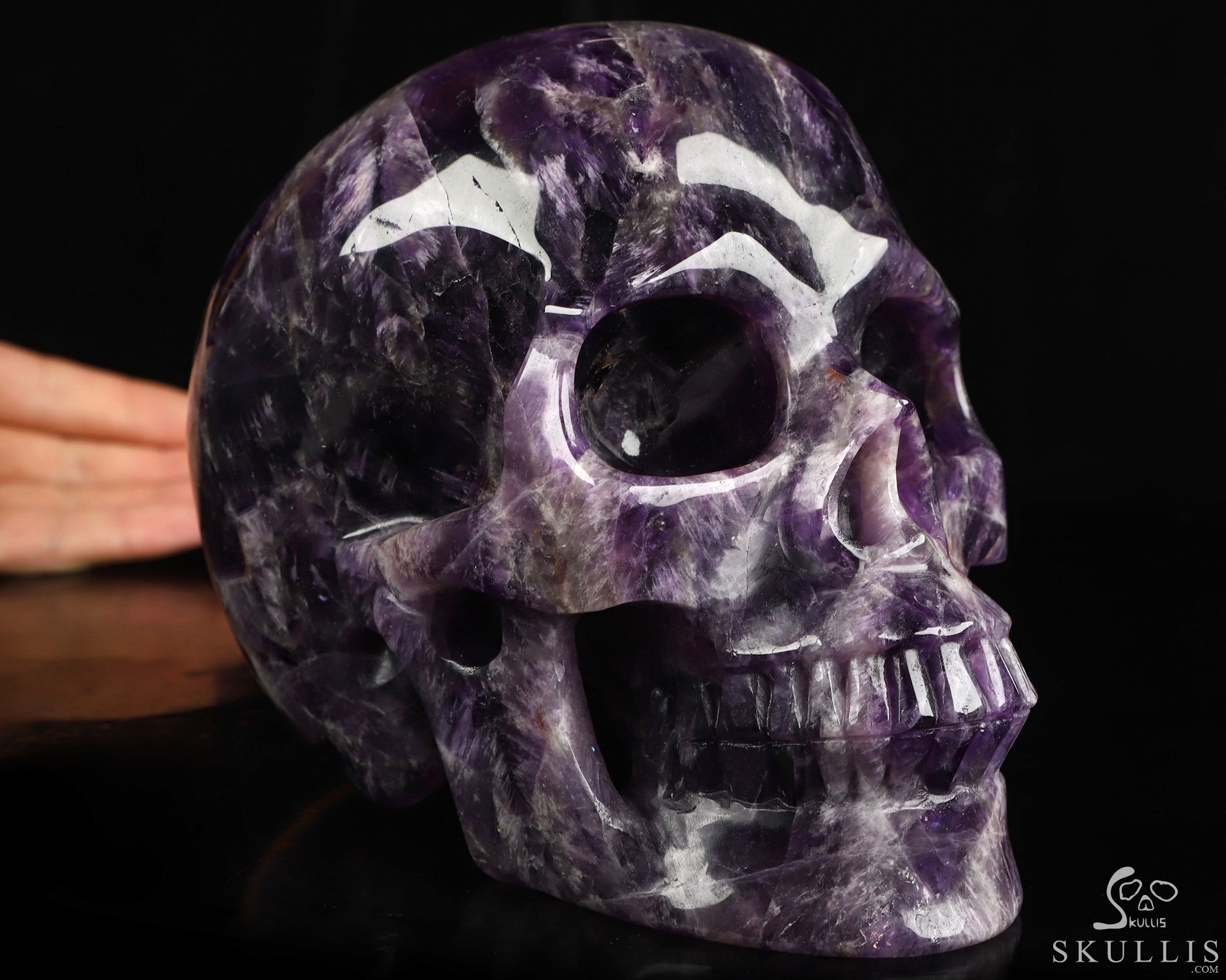 Gemstone Lifesized 6.7" Amethyst Hand Carved Crystal Skull, Super Realistic, Crystal Healing