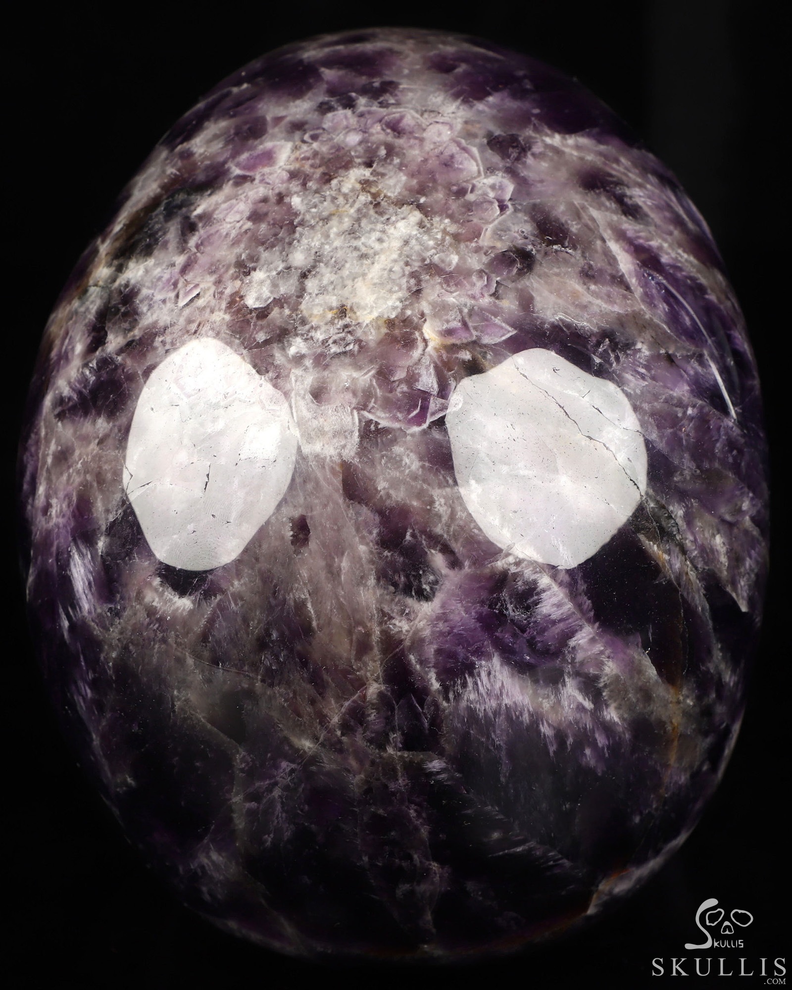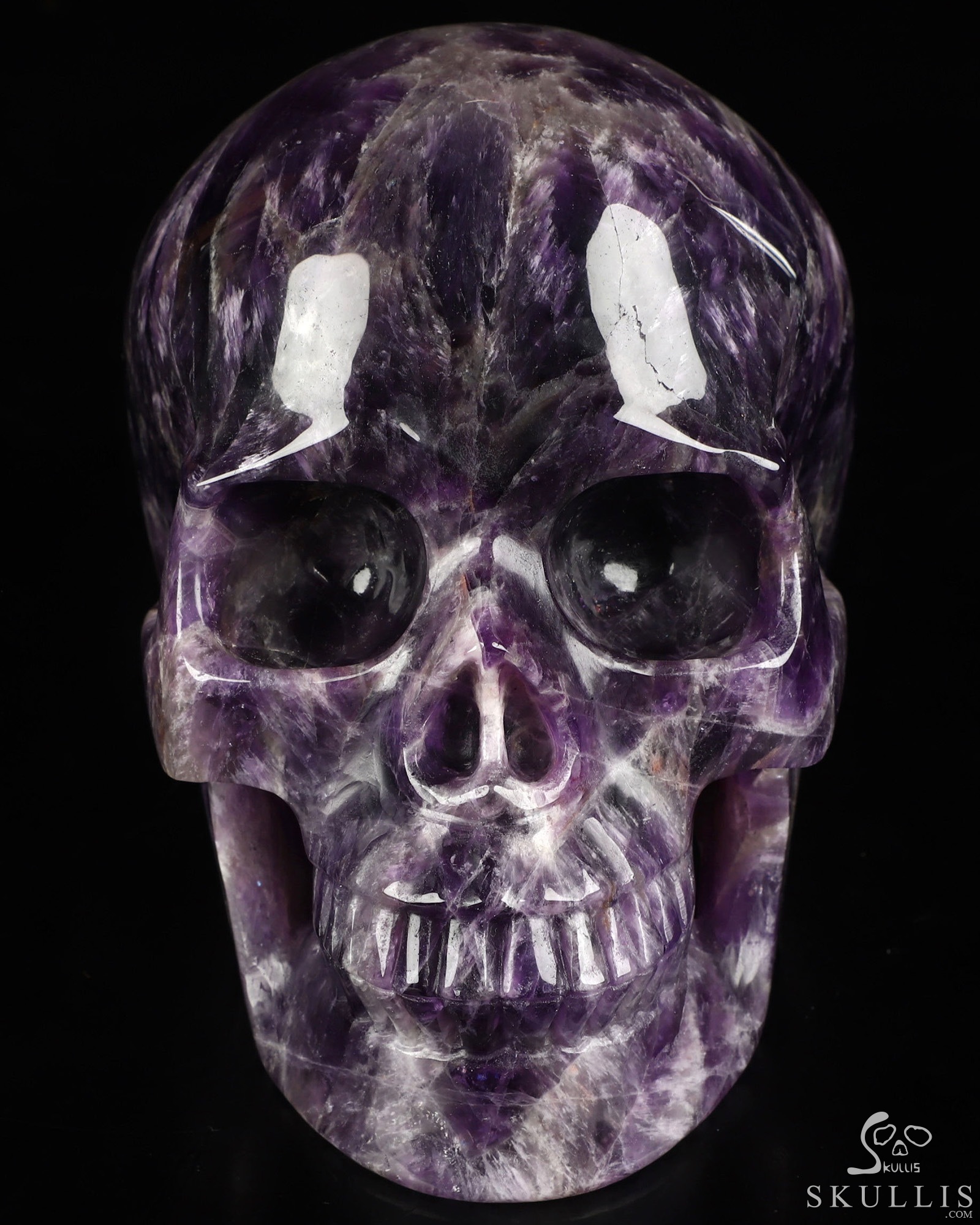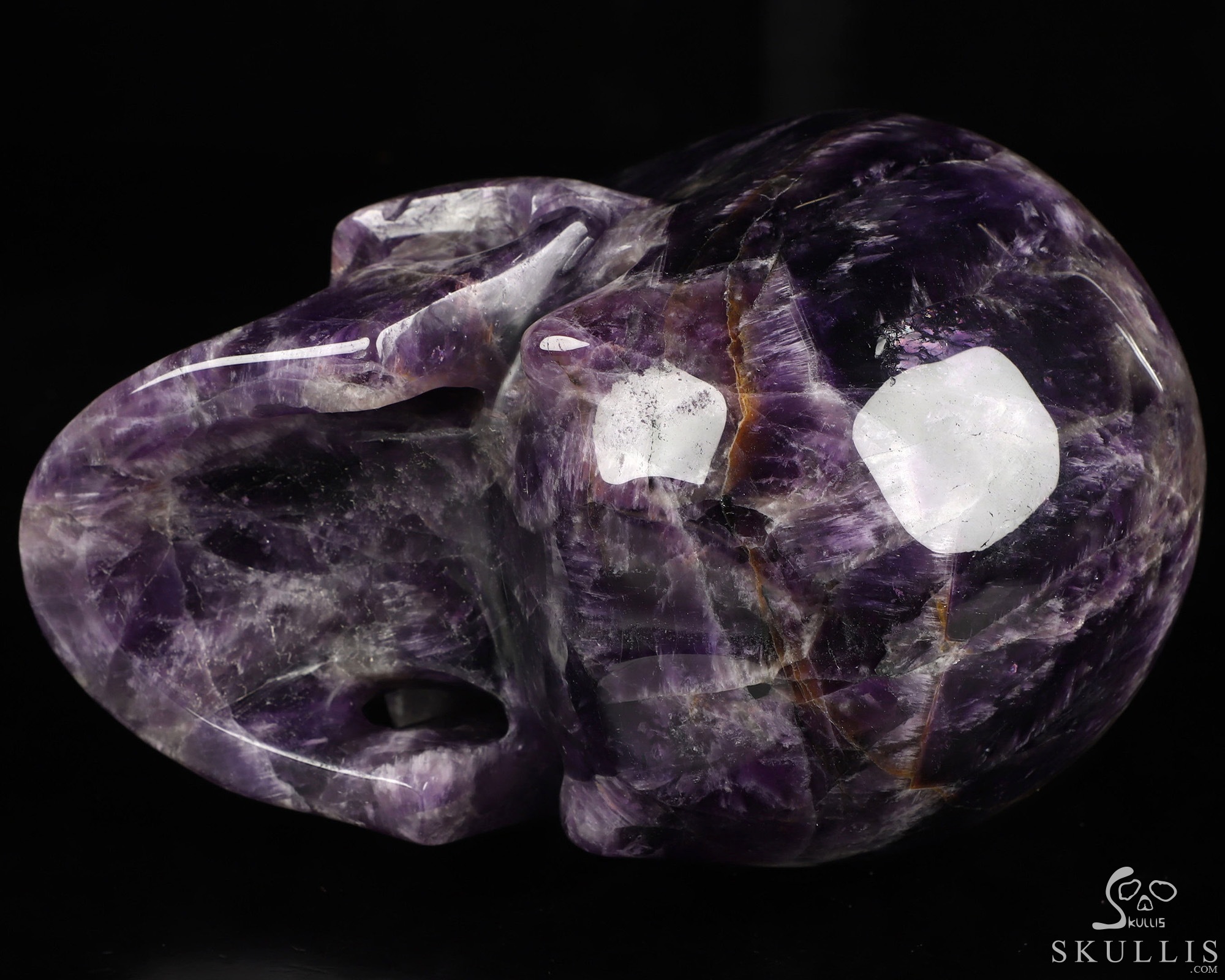 You are looking at an Amethyst skull. The skull is 6.6 inches from front to back.