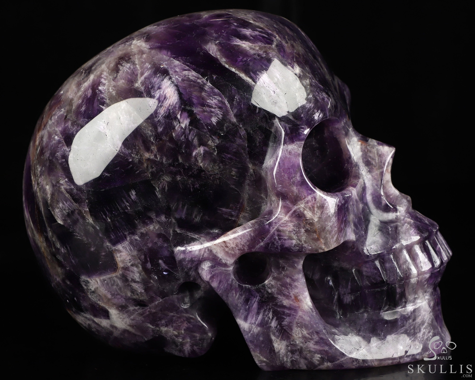 Lifesized 6.6" Amethyst Hand Carved Crystal Skull, Realistic, Crystal Healing