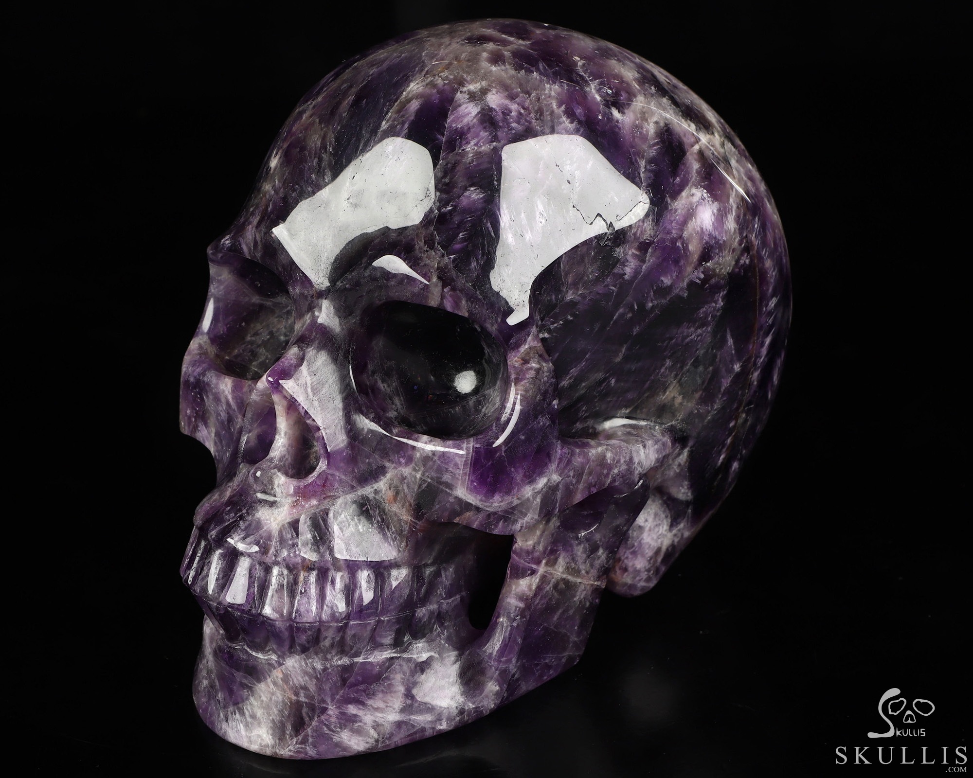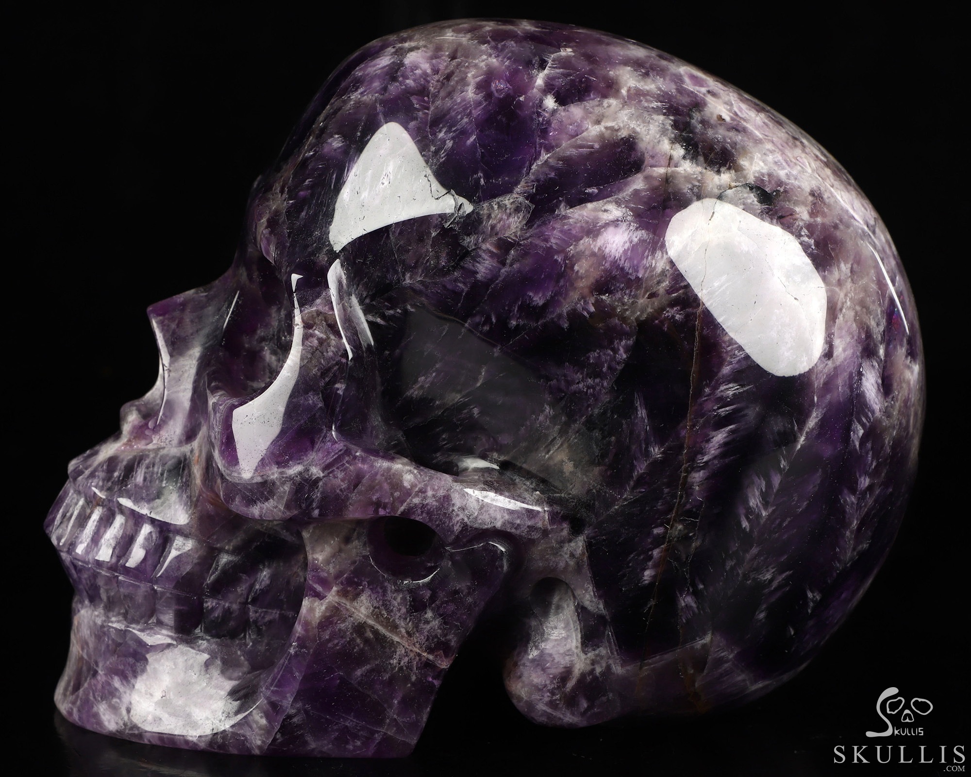 7.8" Amethyst Hand Carved Crystal Skull Fine Art Sculpture, Crystal Healing
