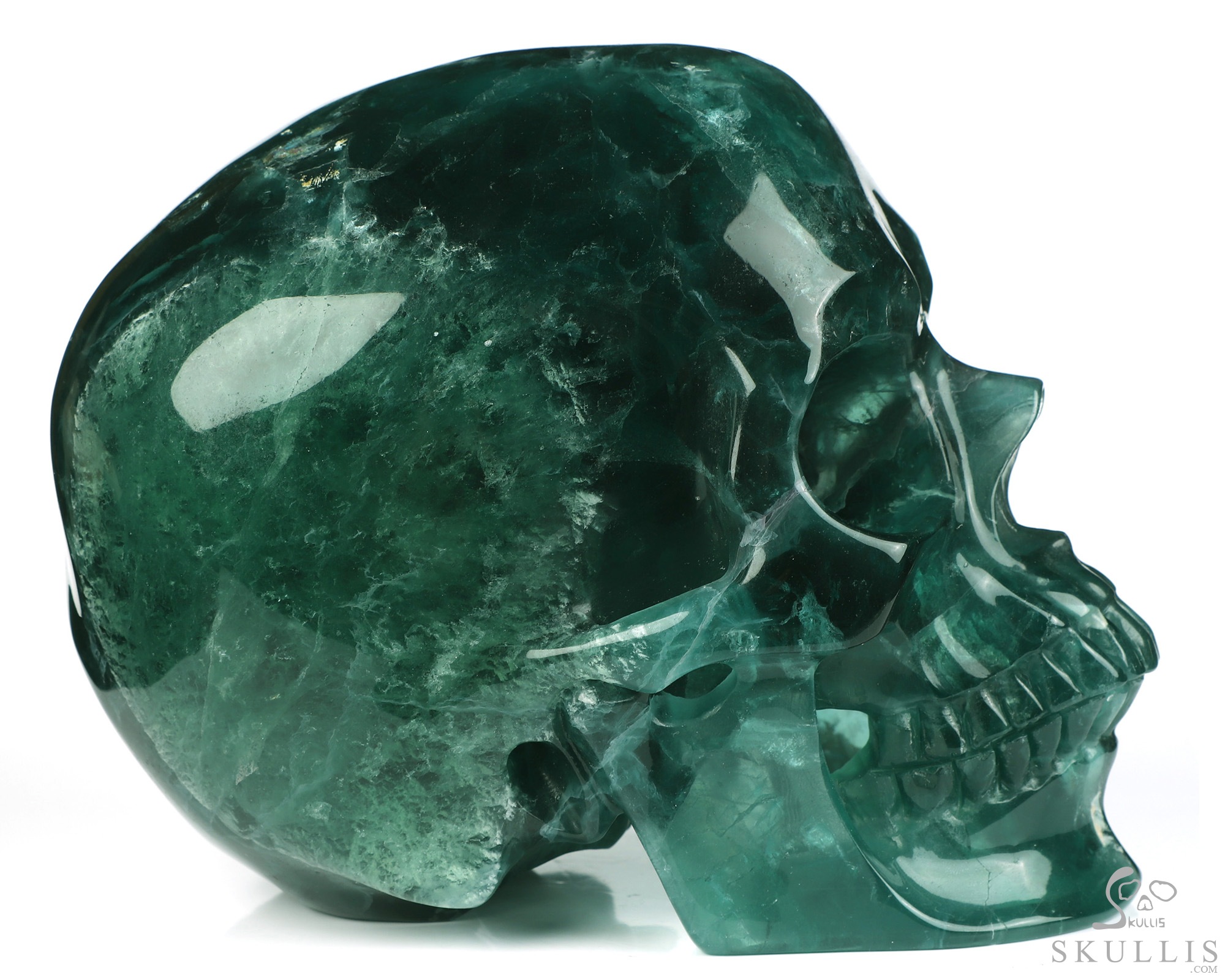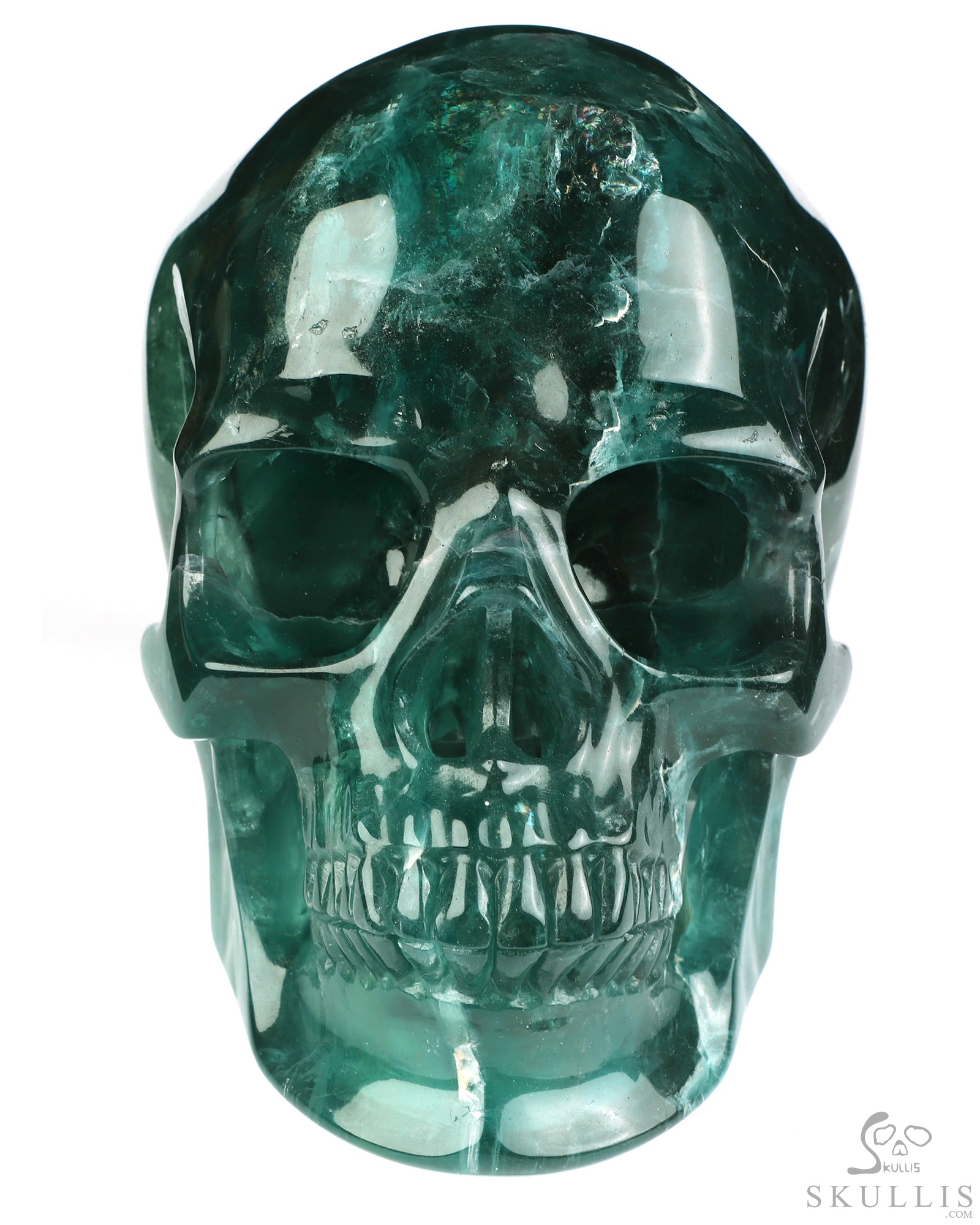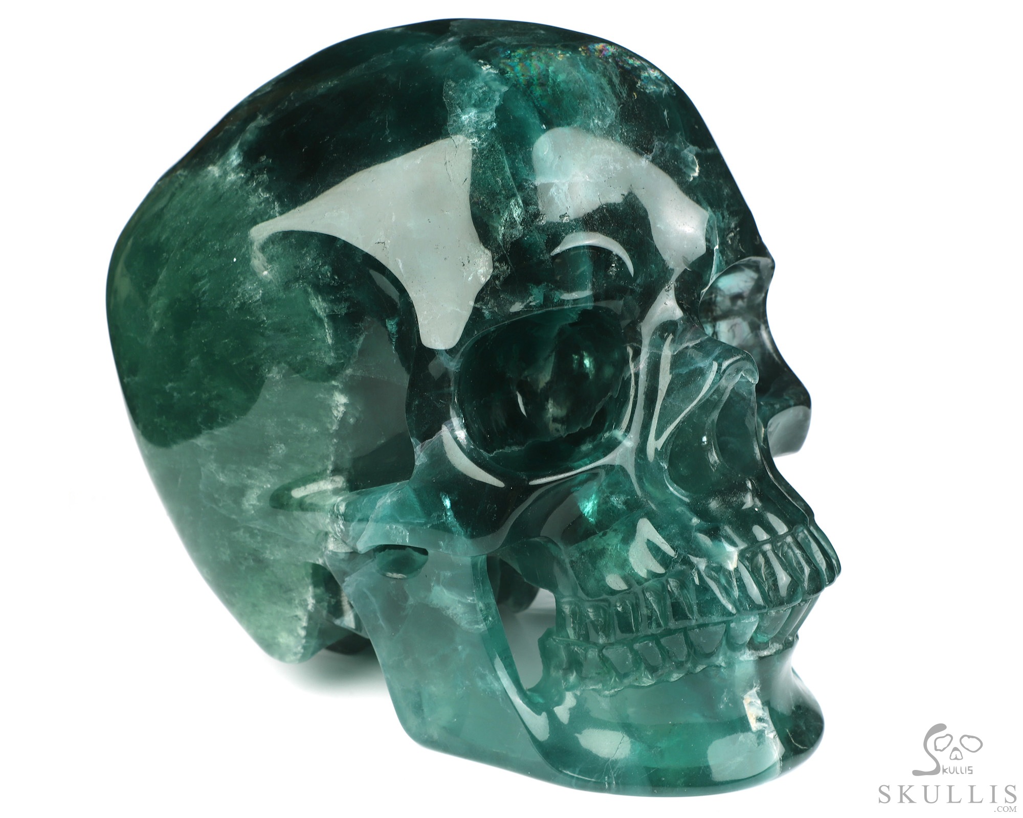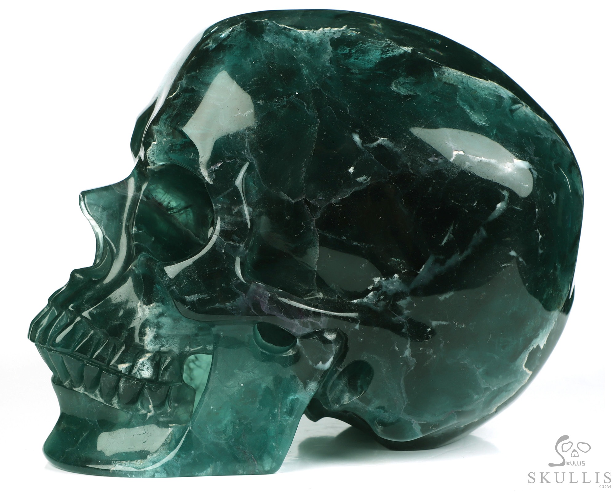 Lifesized 6.6" Fluorite Hand Carved Crystal Skull, Super Realistic, Crystal Healing