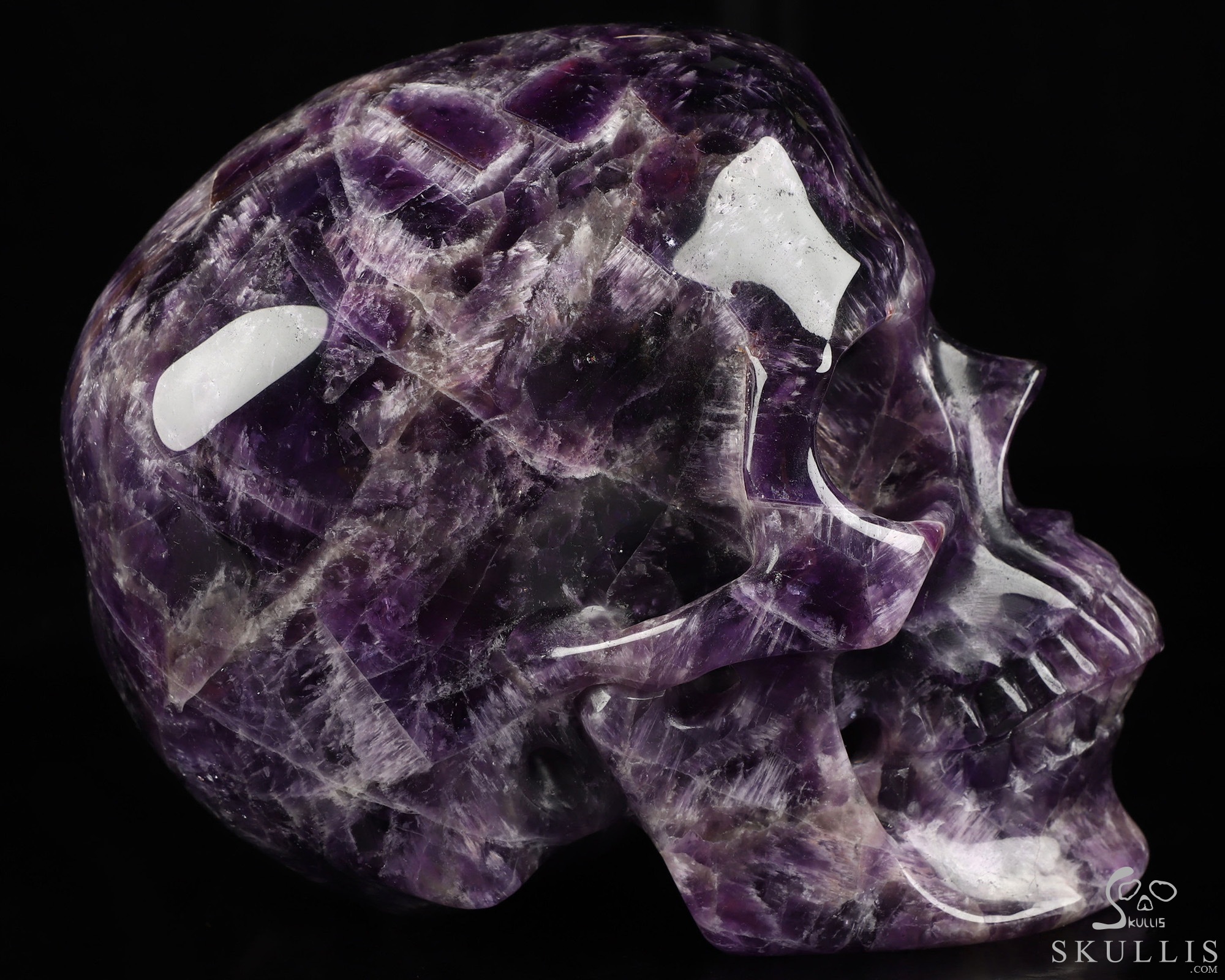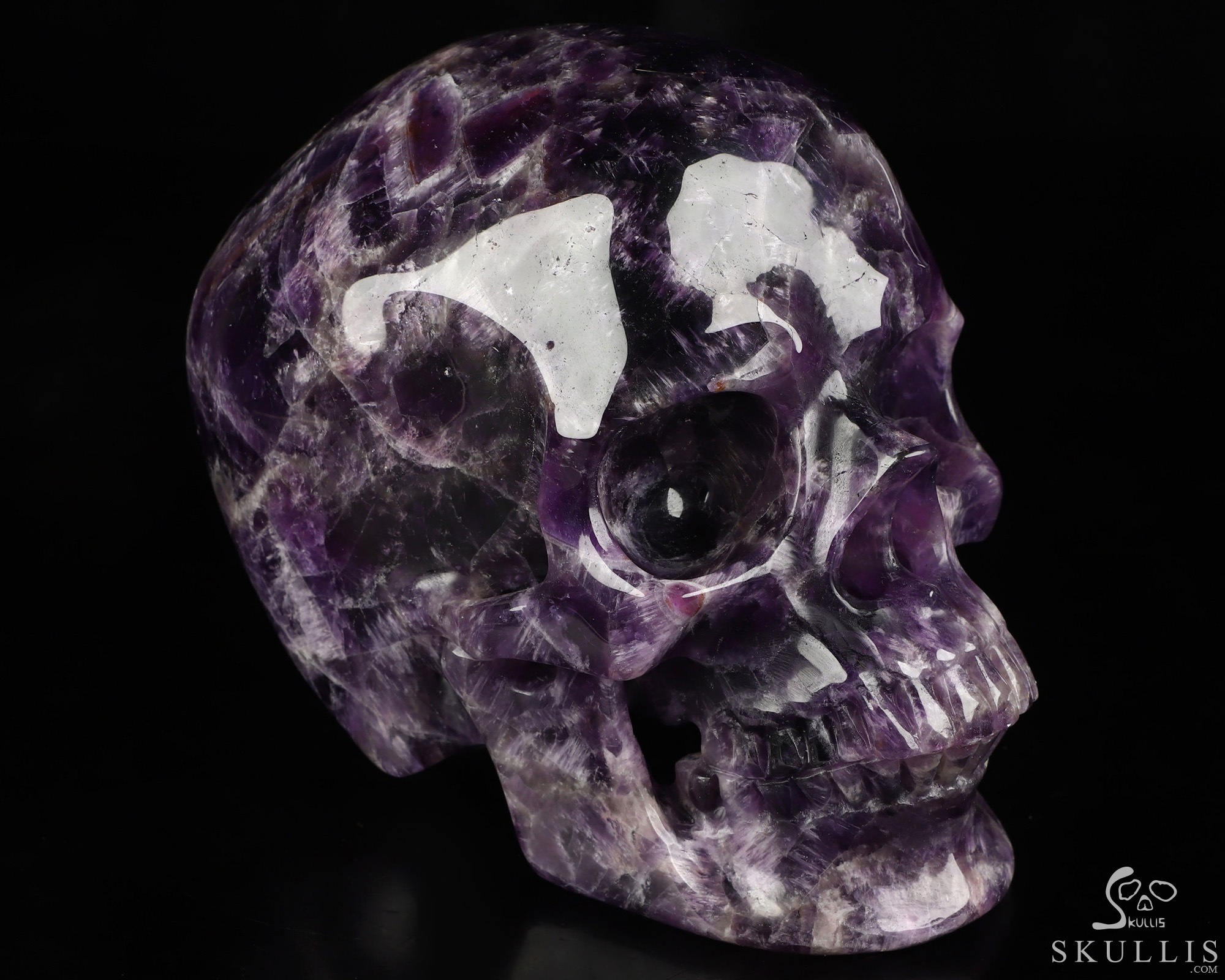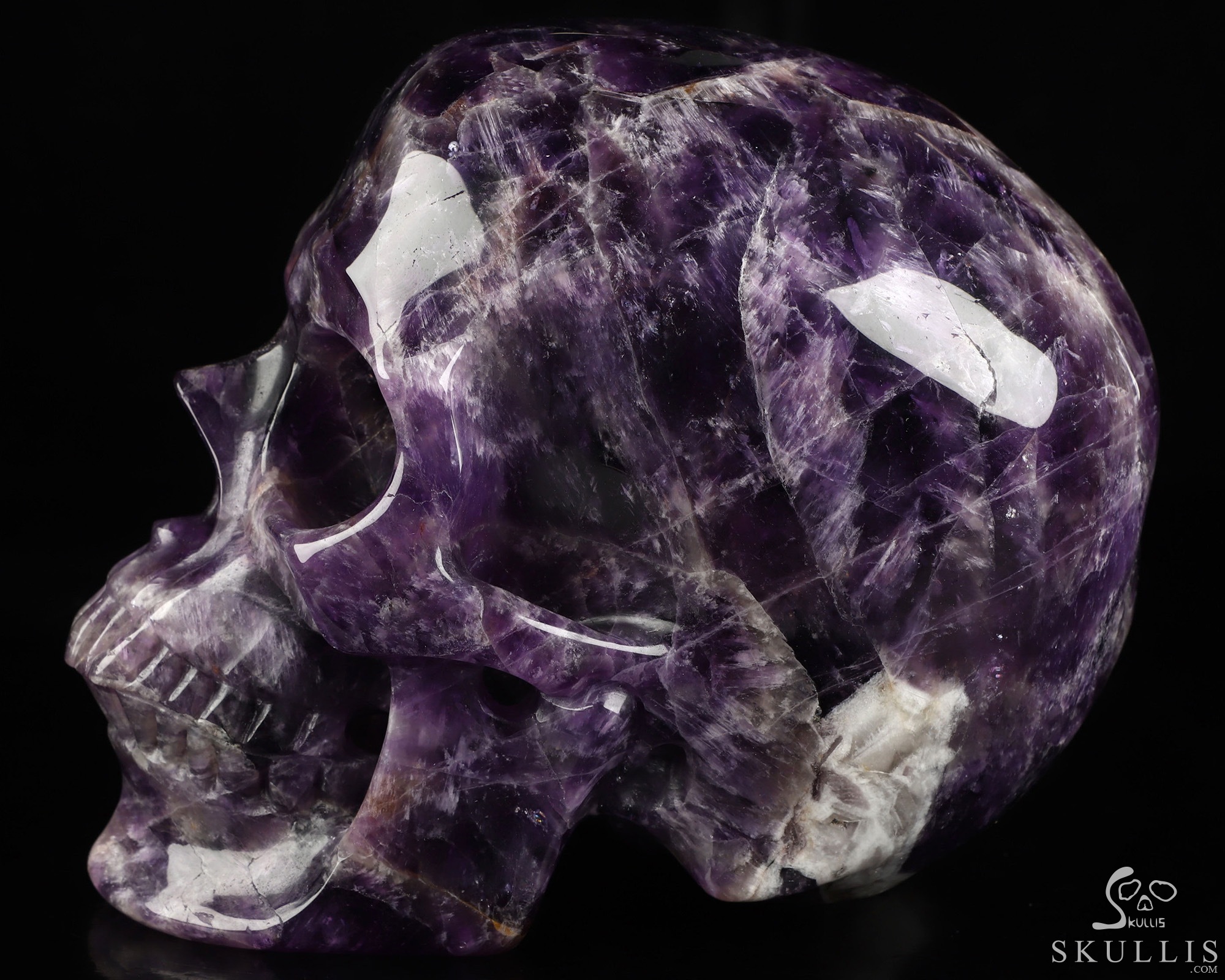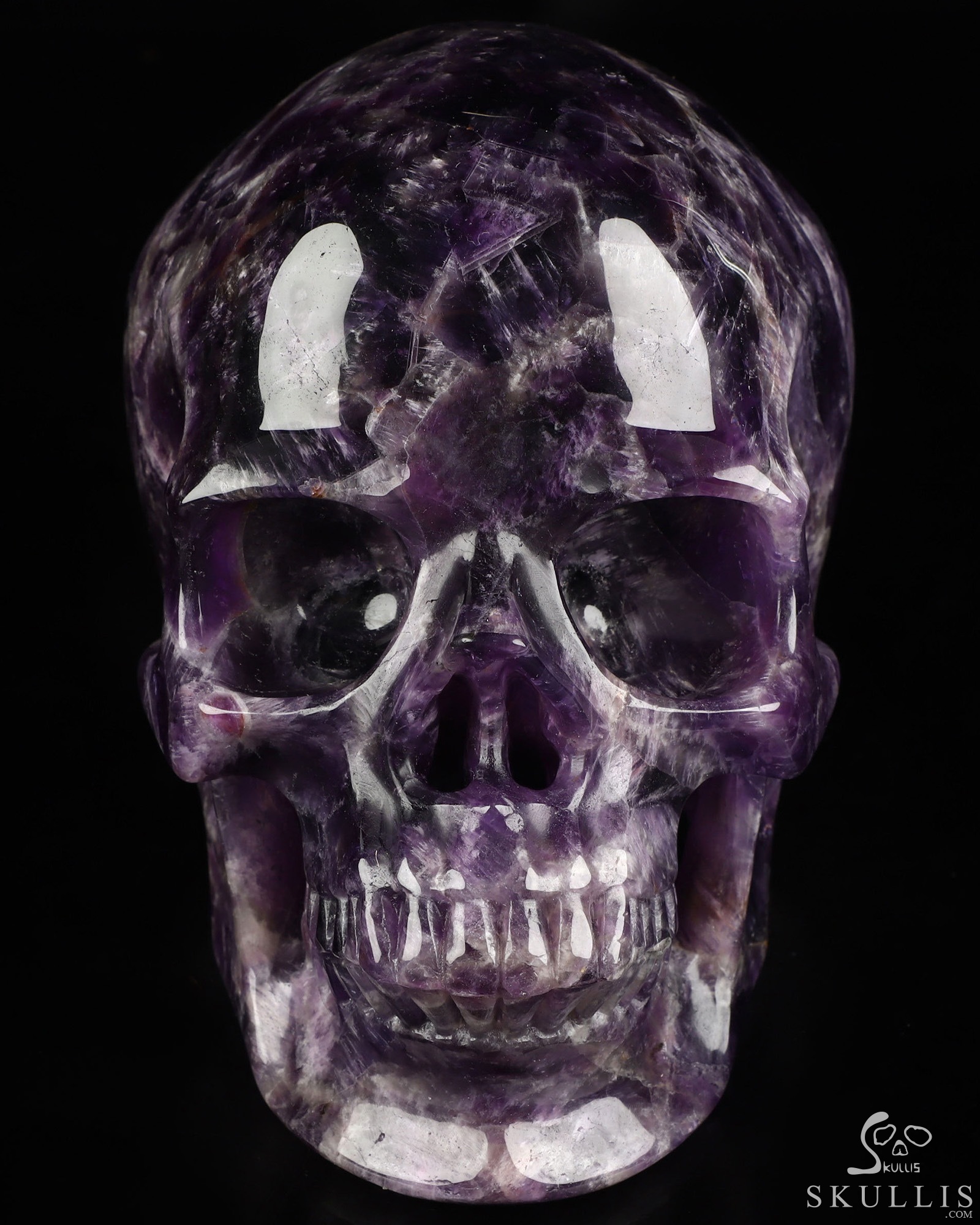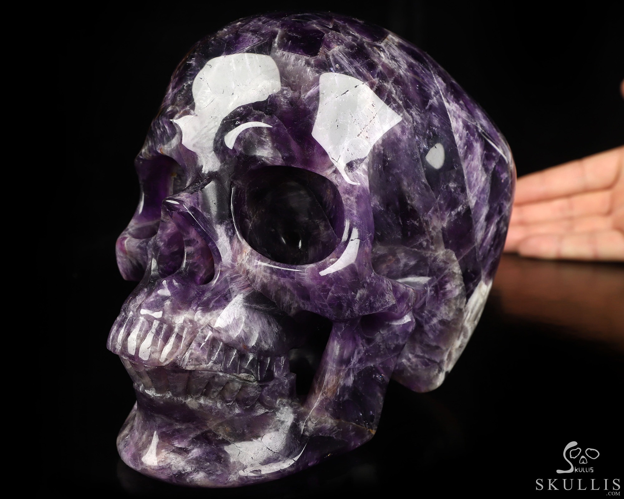 Lifesized 6.7" Amethyst Hand Carved Crystal Skull, Super Realistic, Crystal Healing