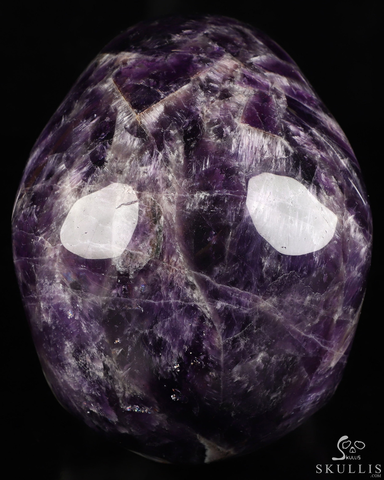 You are looking at an Amethyst skull. The skull is 6.7 inches from front to back.