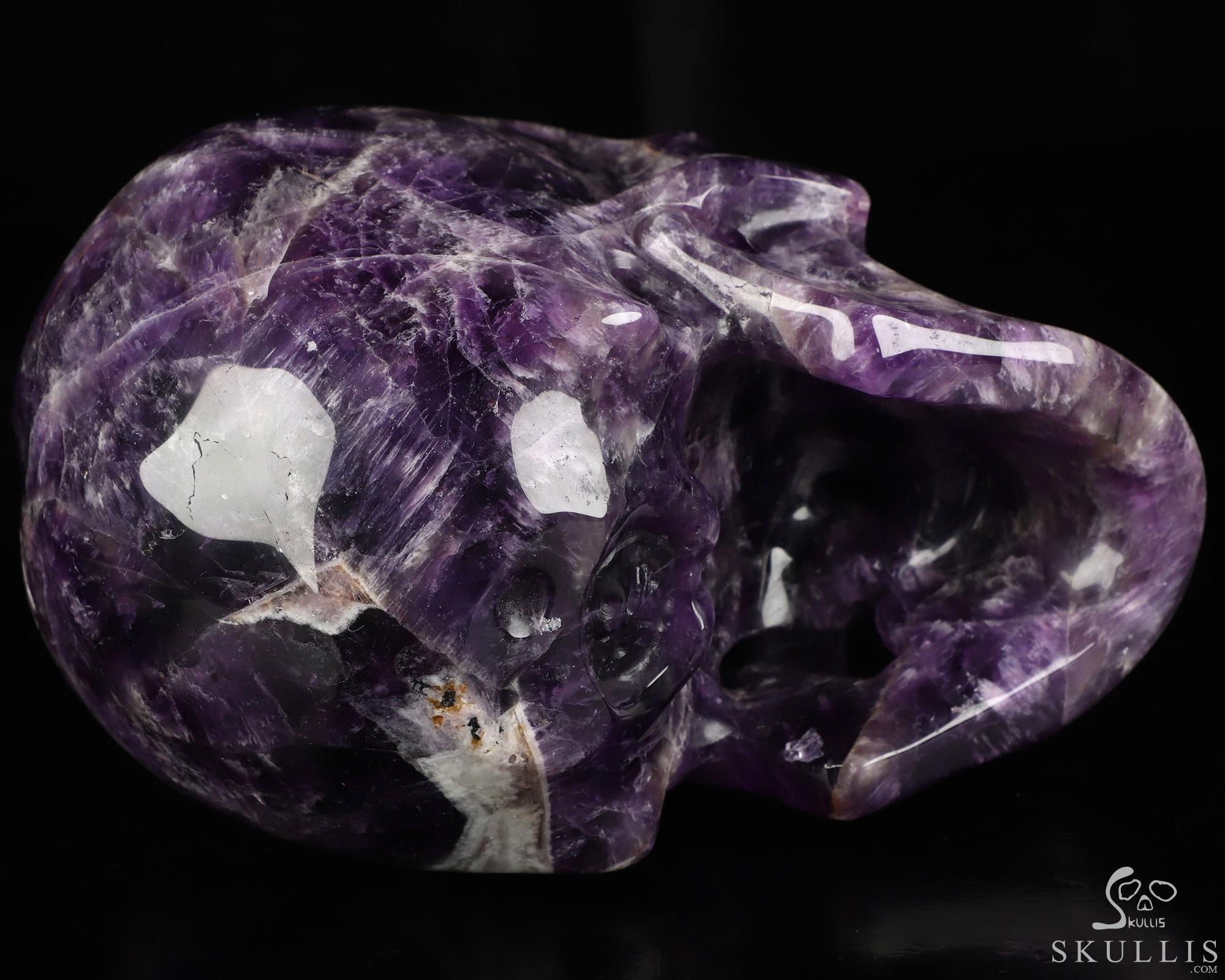 Gemstone Huge 5.1" Amethyst Carved Crystal Skull, Super Realistic