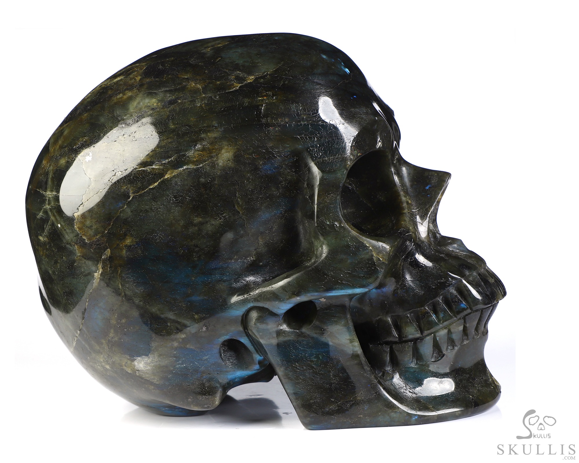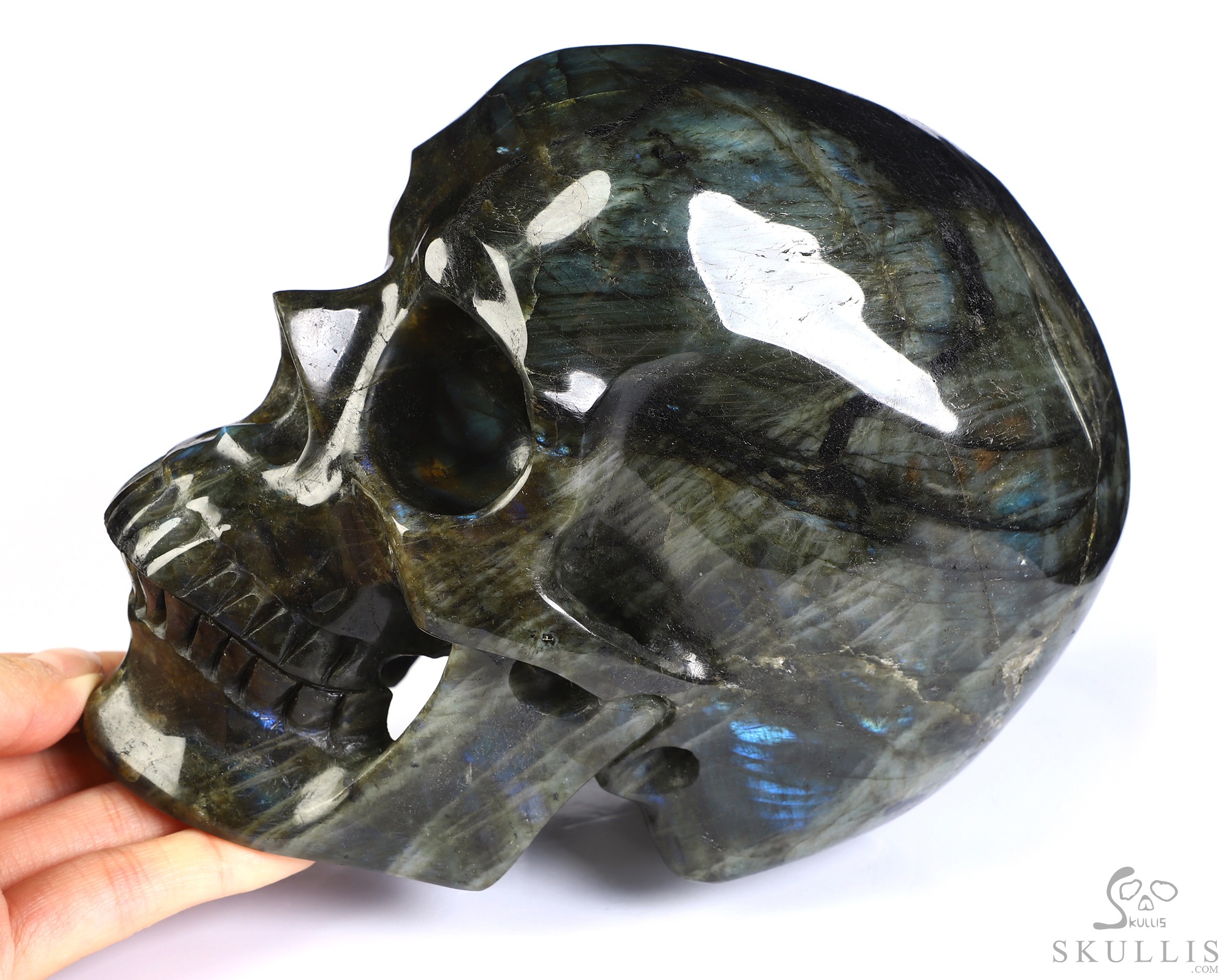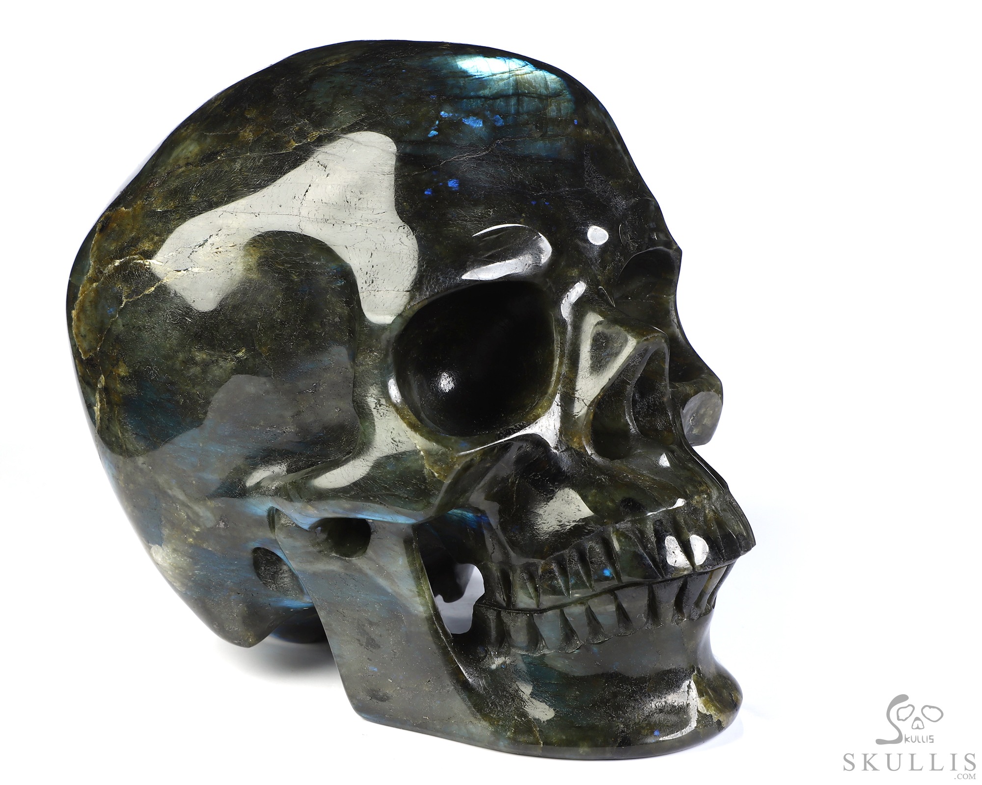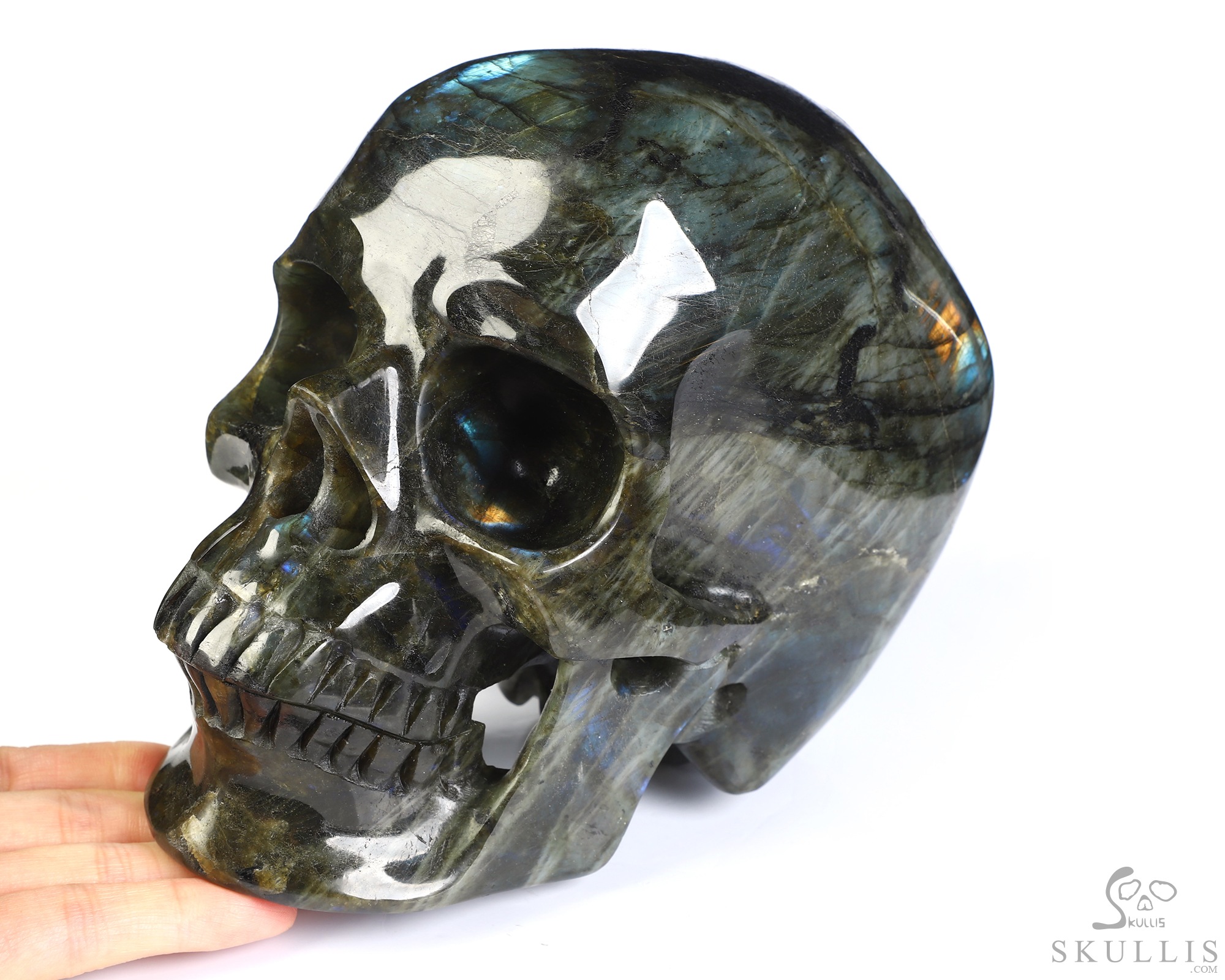 Lifesized 6.7" Labradorite Hand Carved Crystal Skull, Super Realistic, Crystal Healing