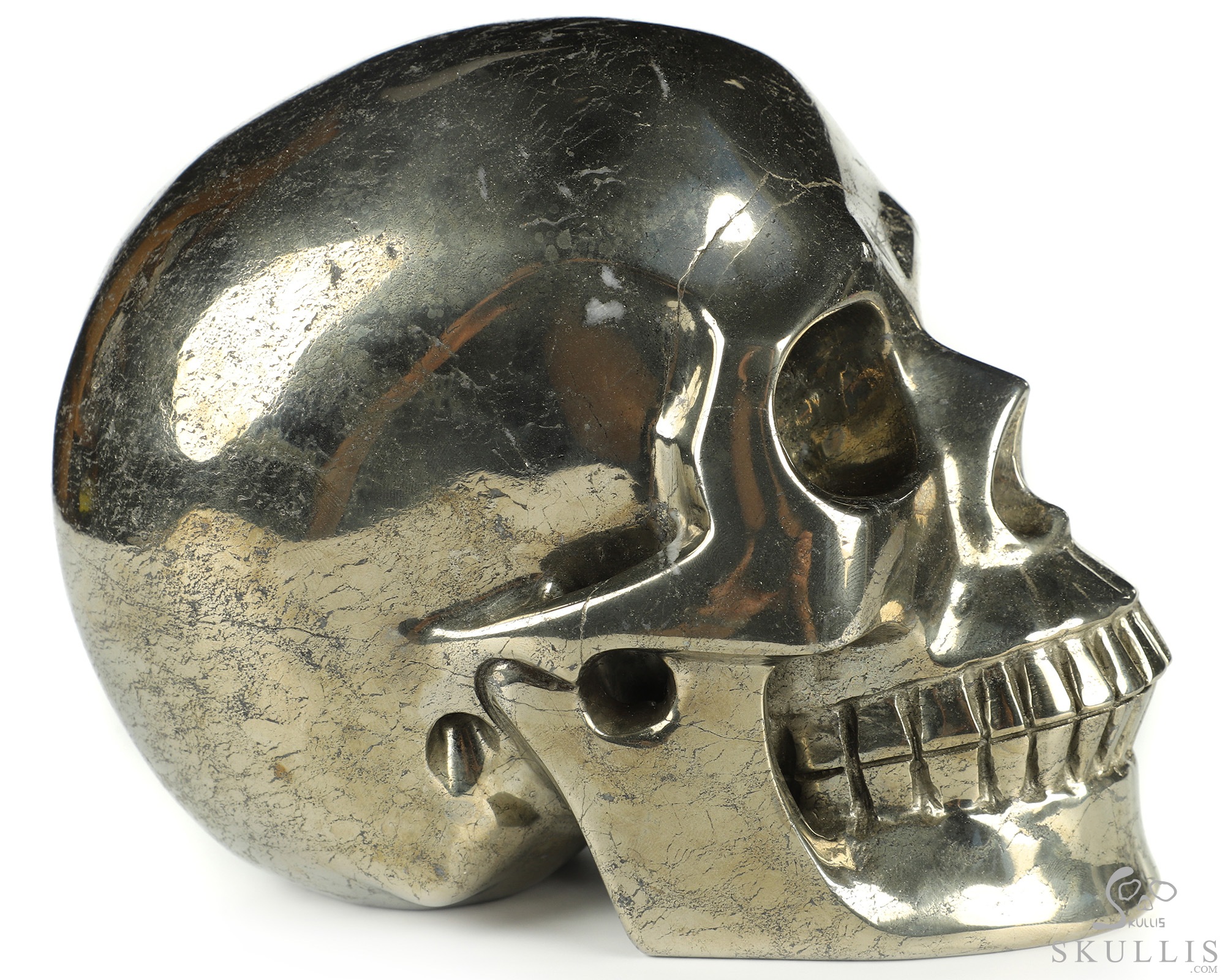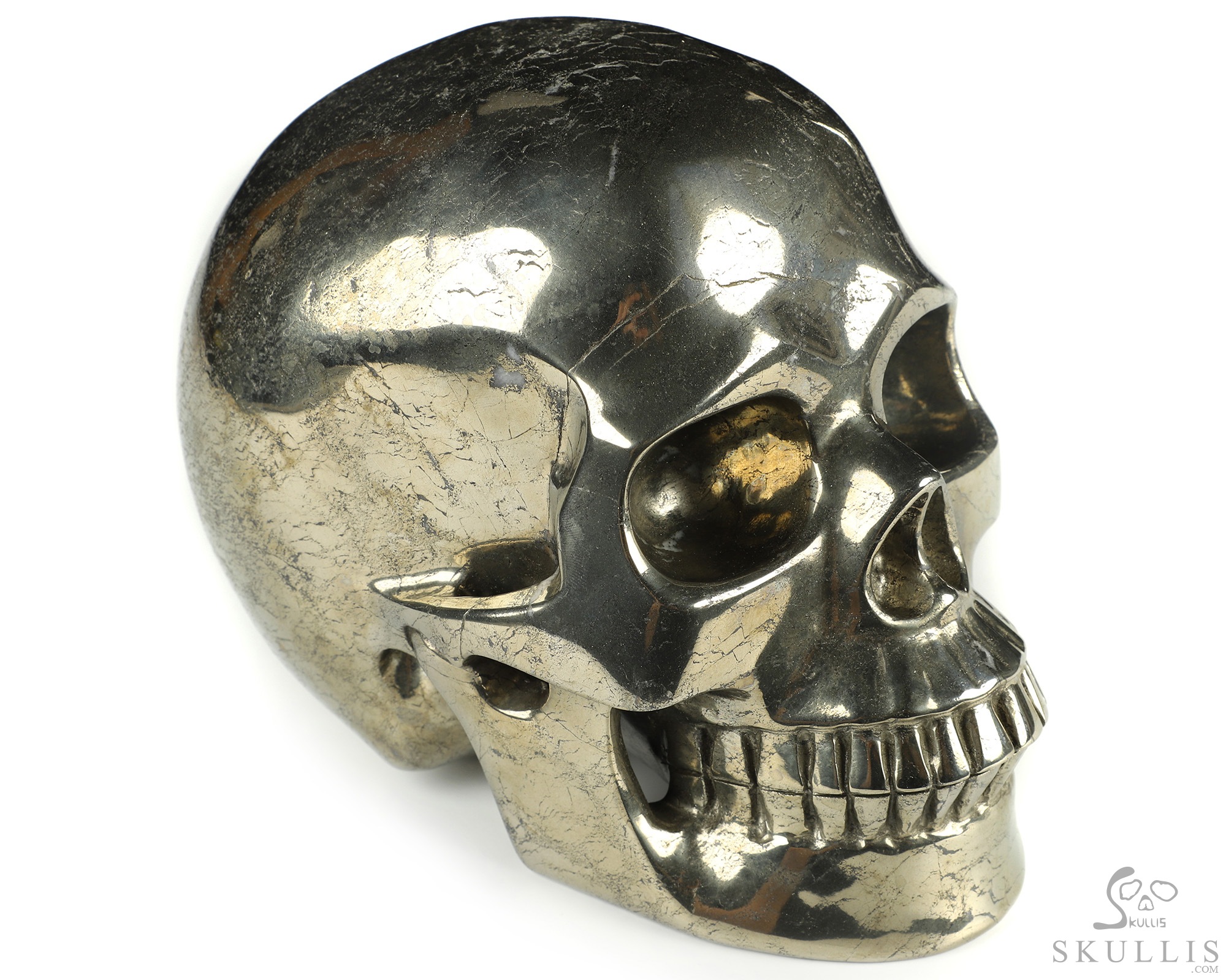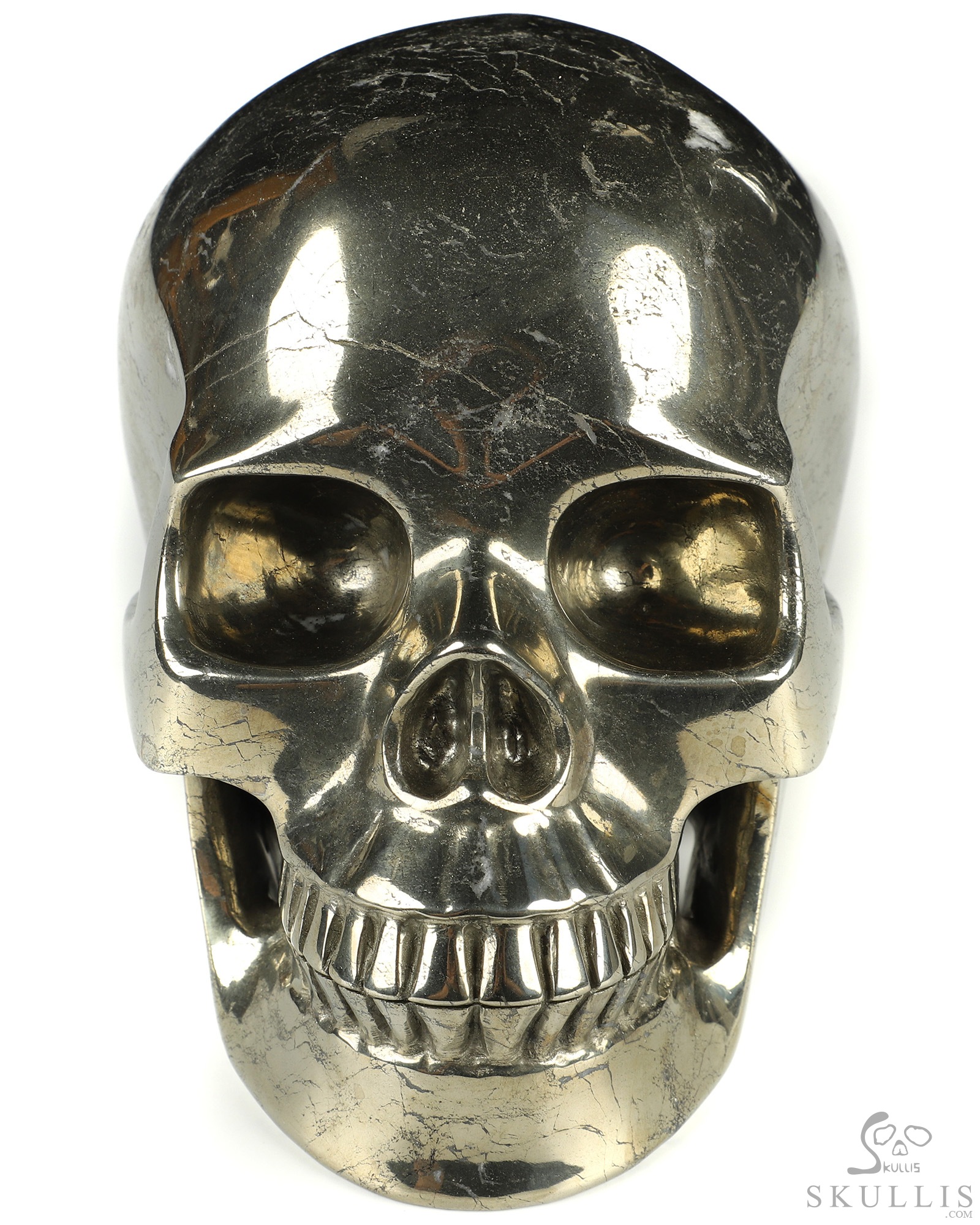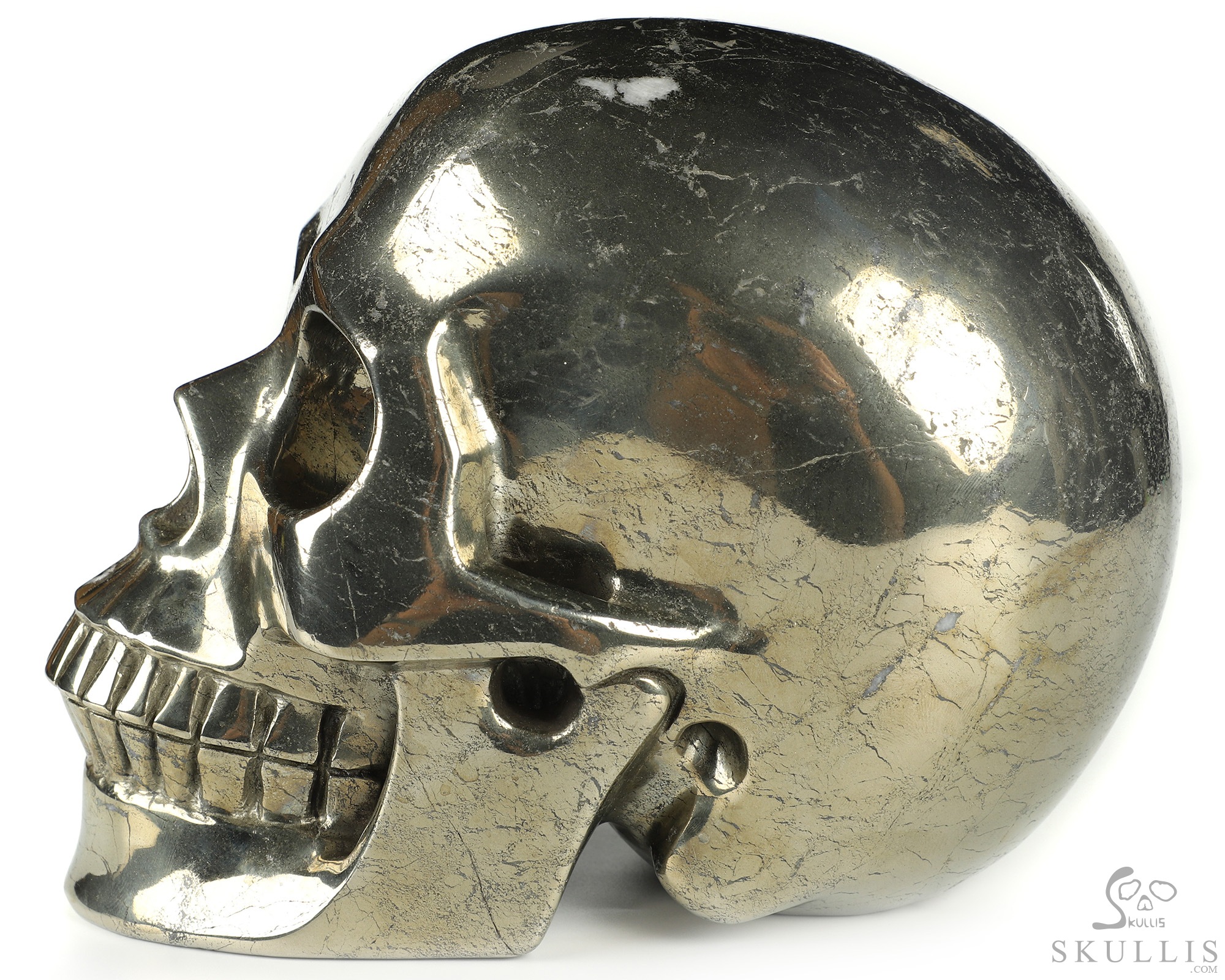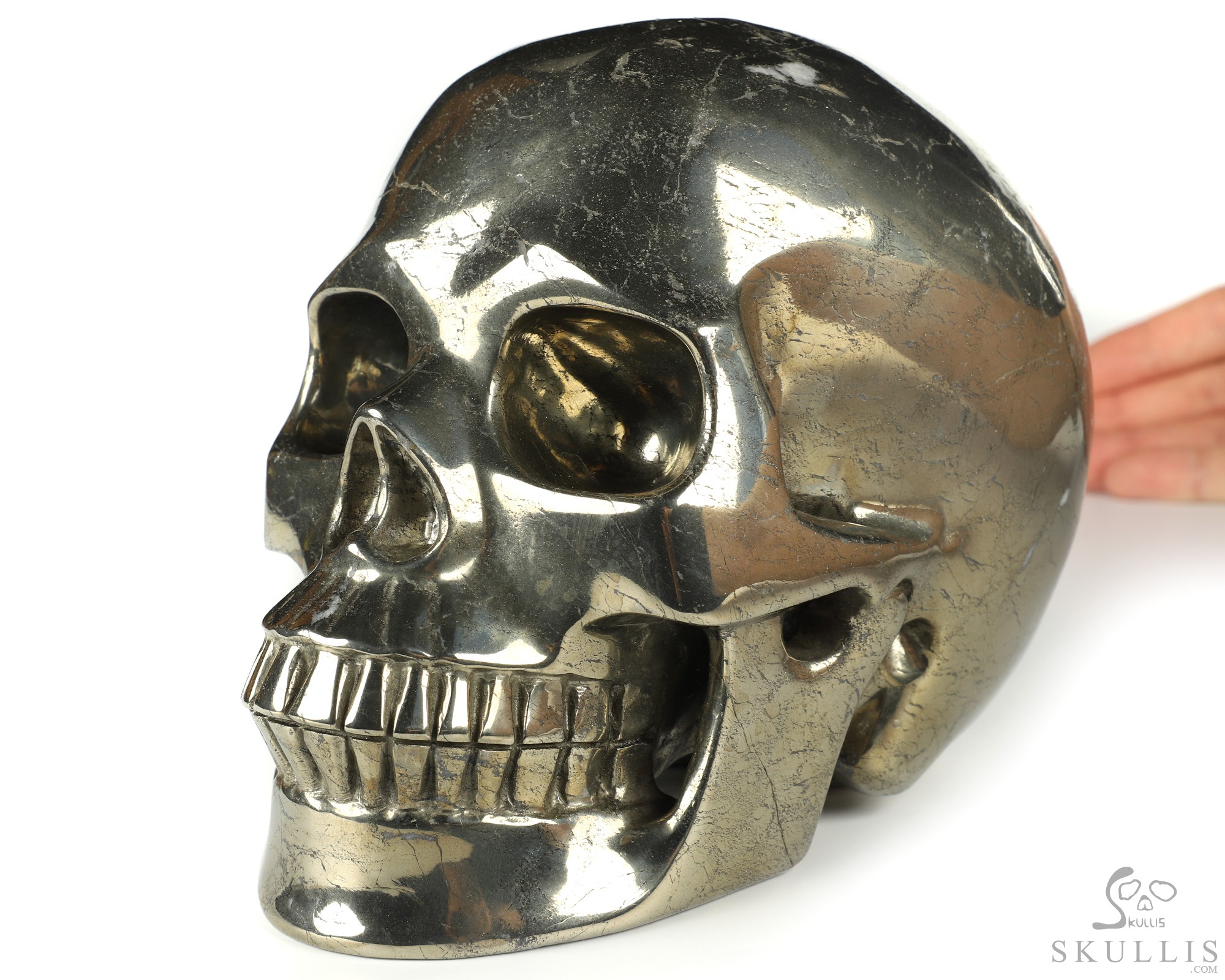 Lifesized 6.7" Pyrite Hand Carved Crystal Skull, Realistic, Crystal Healing