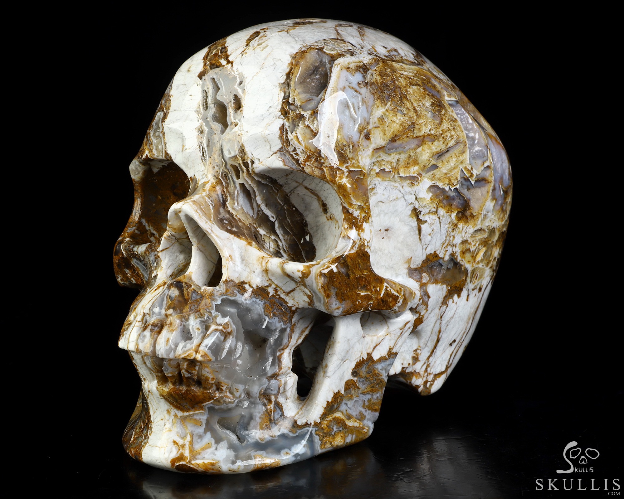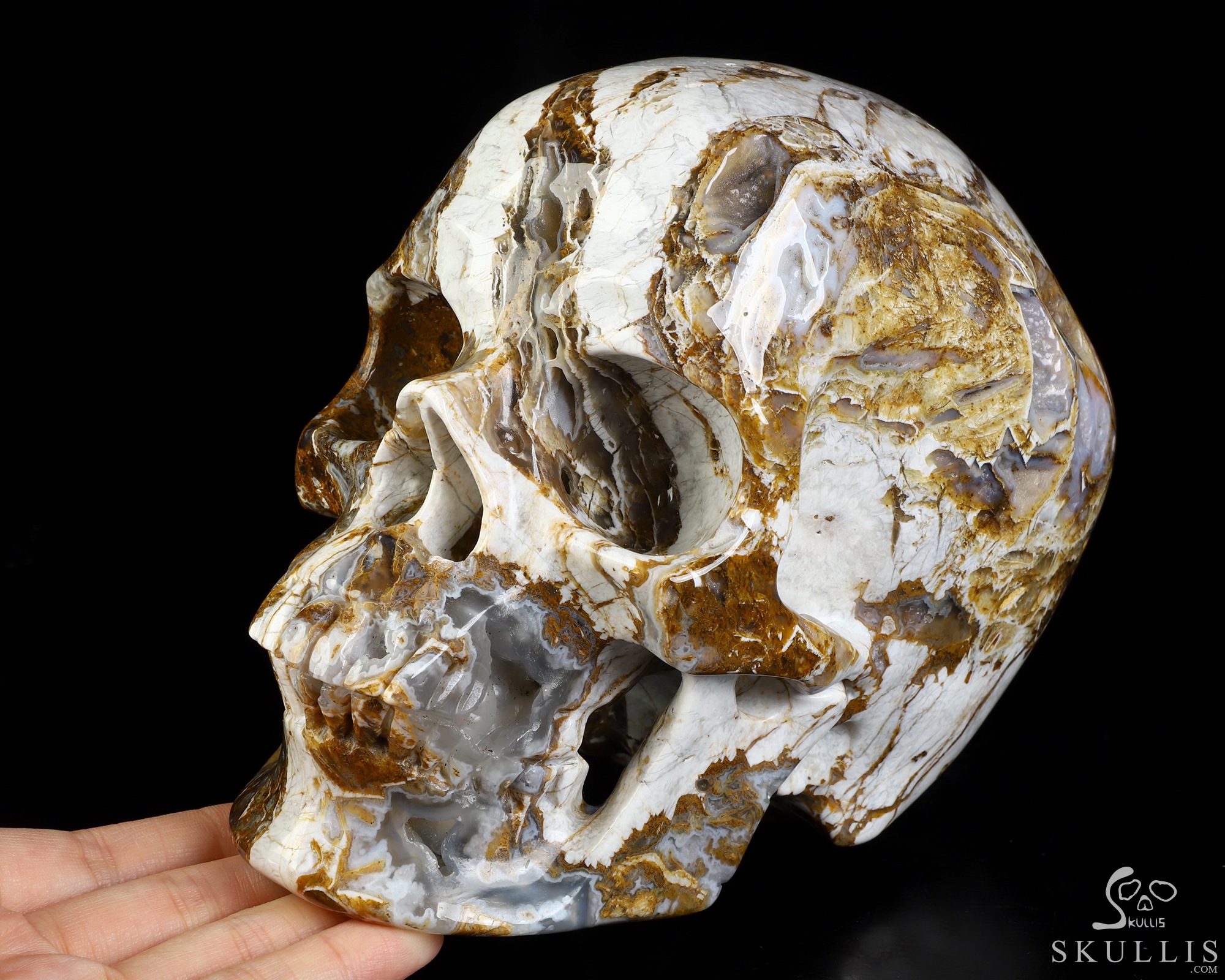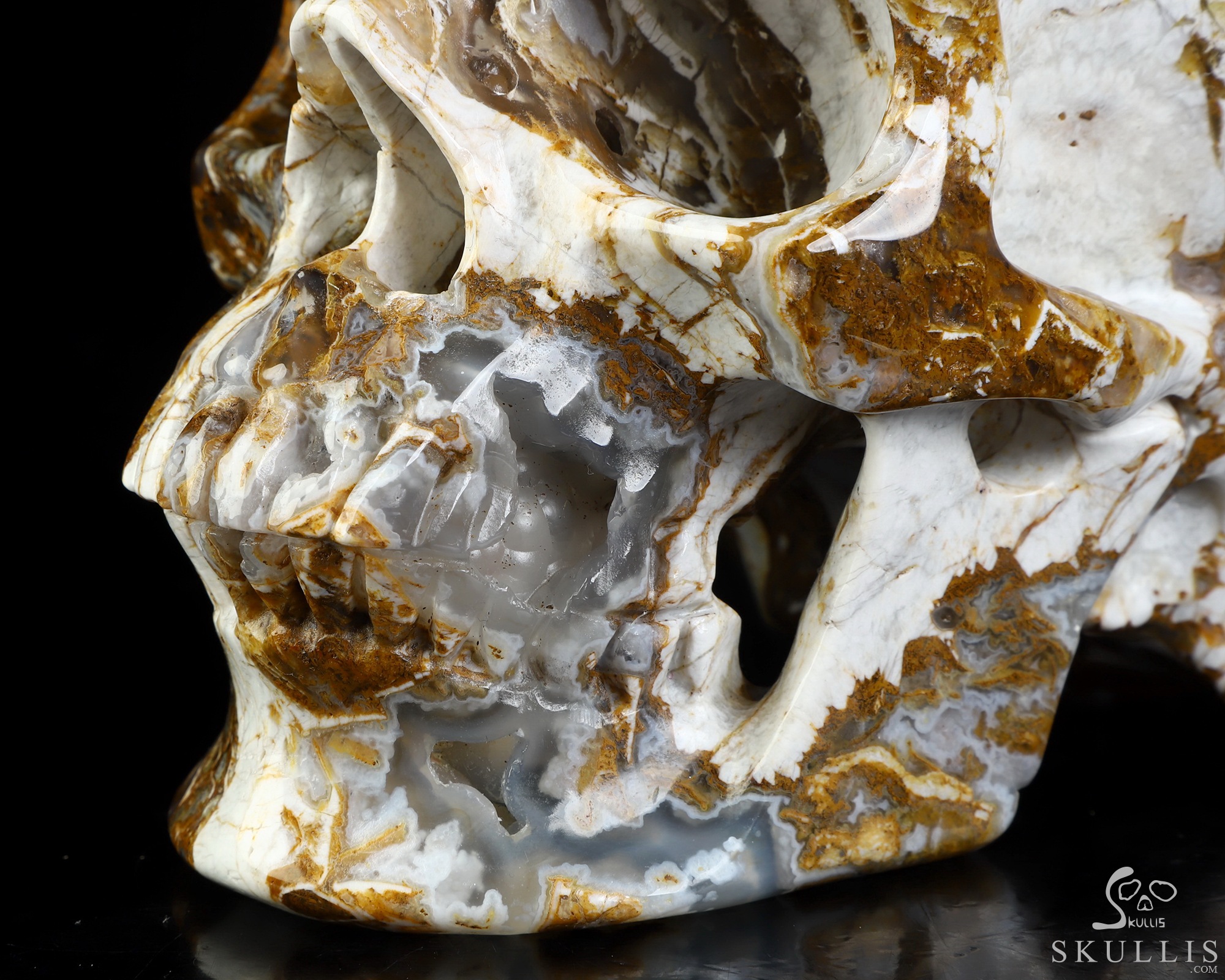 Lifesized 6.8" Tree Leaves Agate Hand Carved Crystal Skull, Super Realistic, Crystal Healing