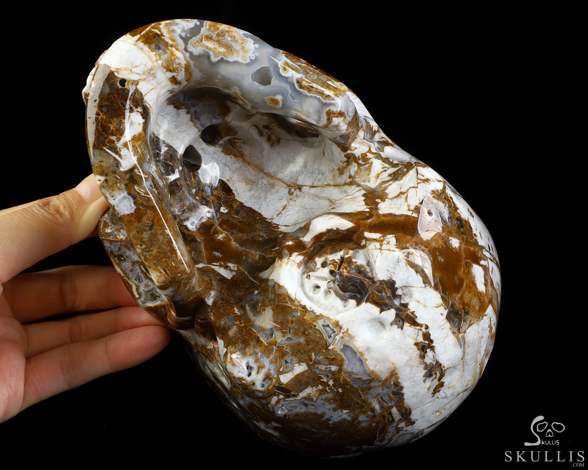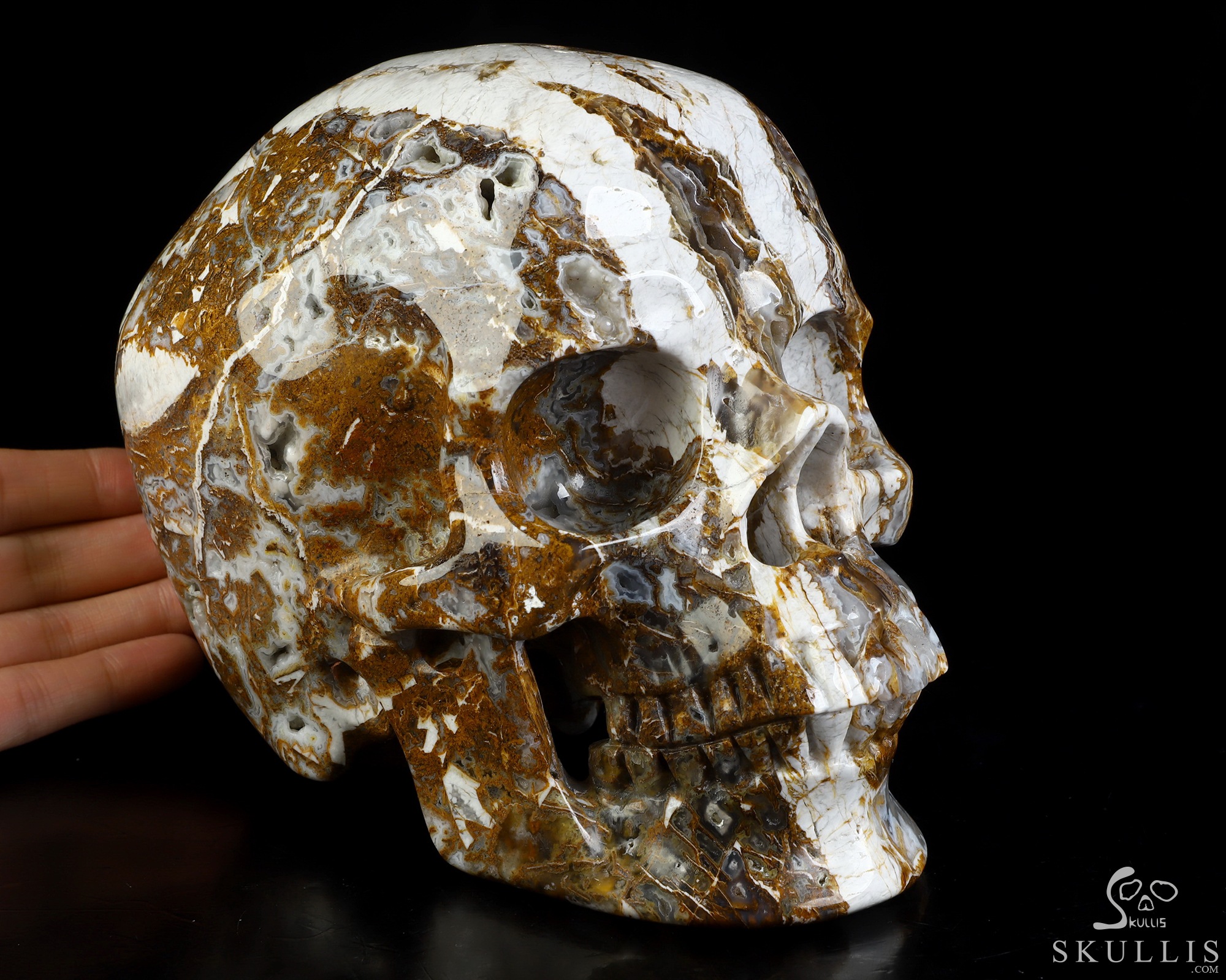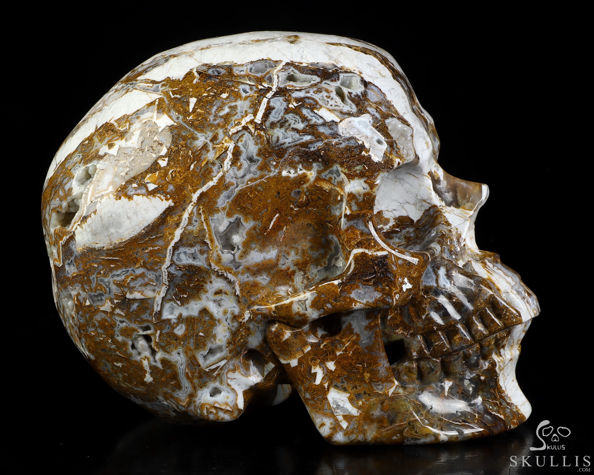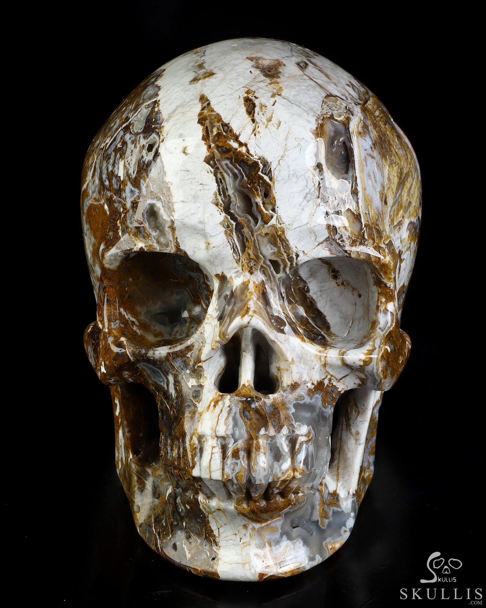 Lifesized 6.8" Tree Leaves Agate Hand Carved Crystal Skull, Super Realistic, Crystal Healing