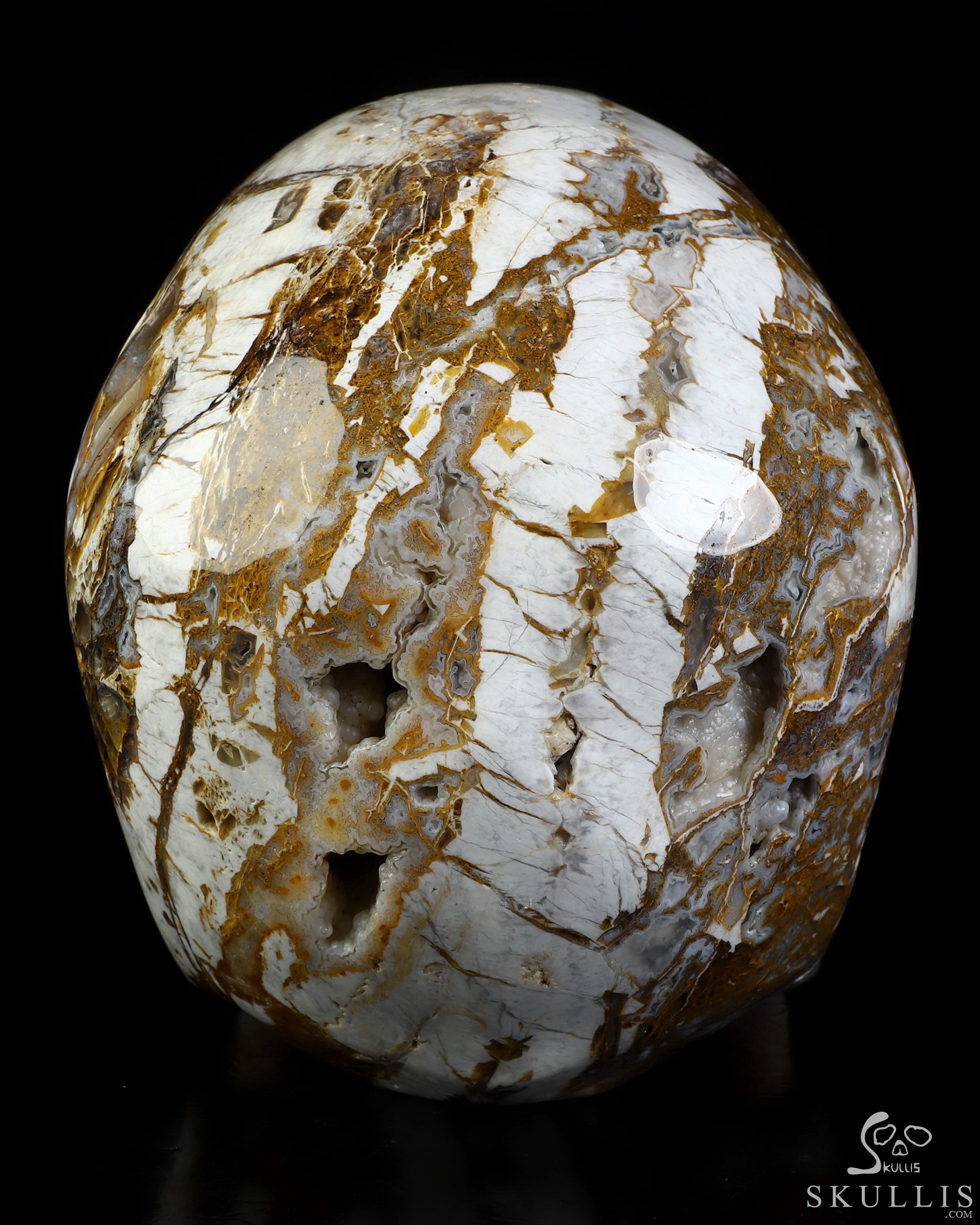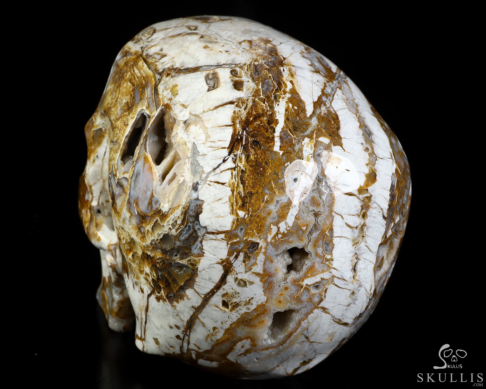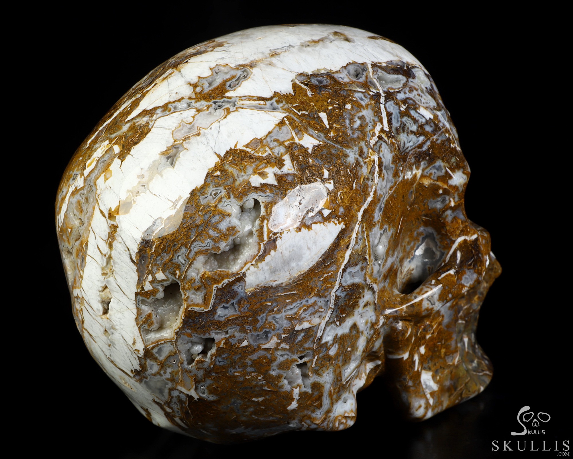 Huge 5.1" Tree Leaves Agate Carved Crystal Geode Skull, Super Realistic