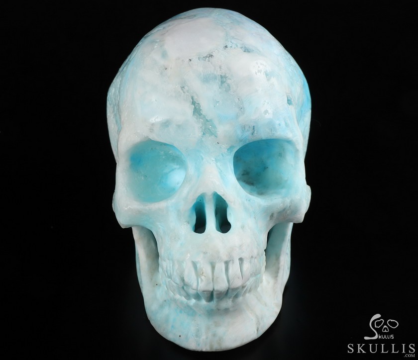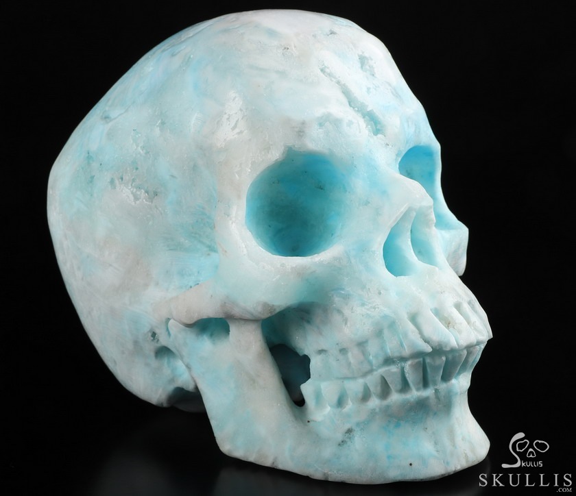 Lifesized 6.9" Blue Aragonite Carved Crystal Skull,Super Realistic, Crystal Healing