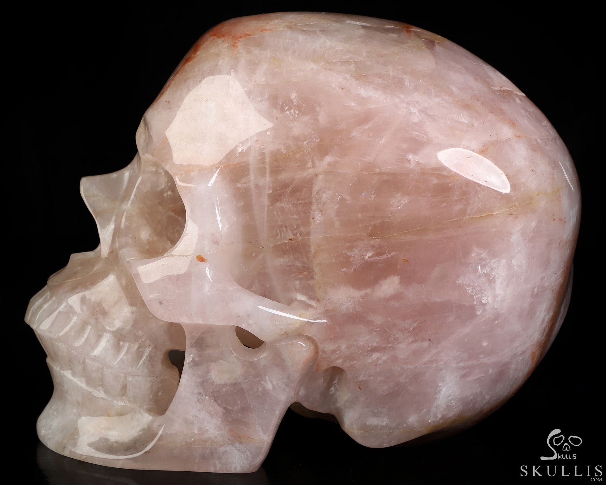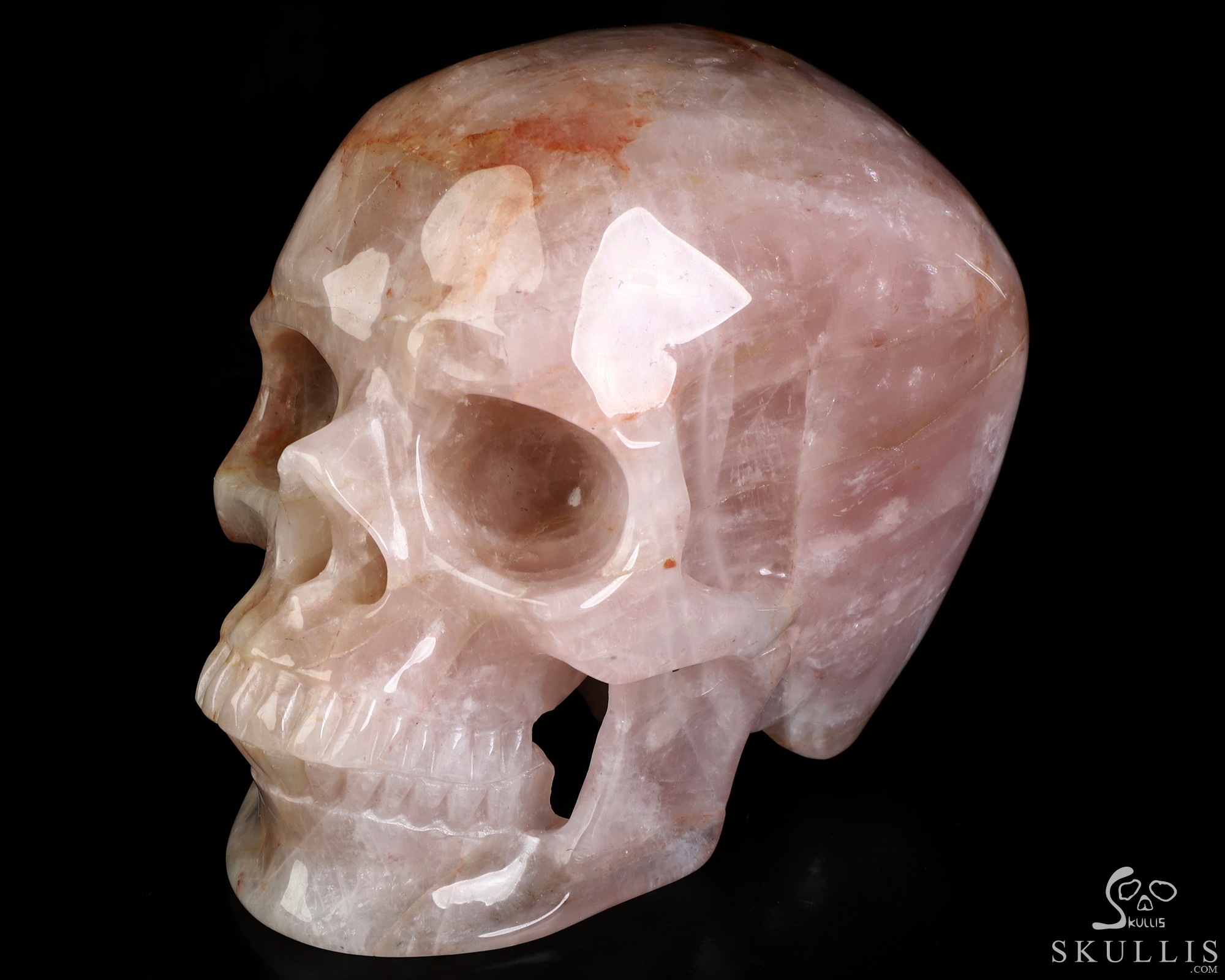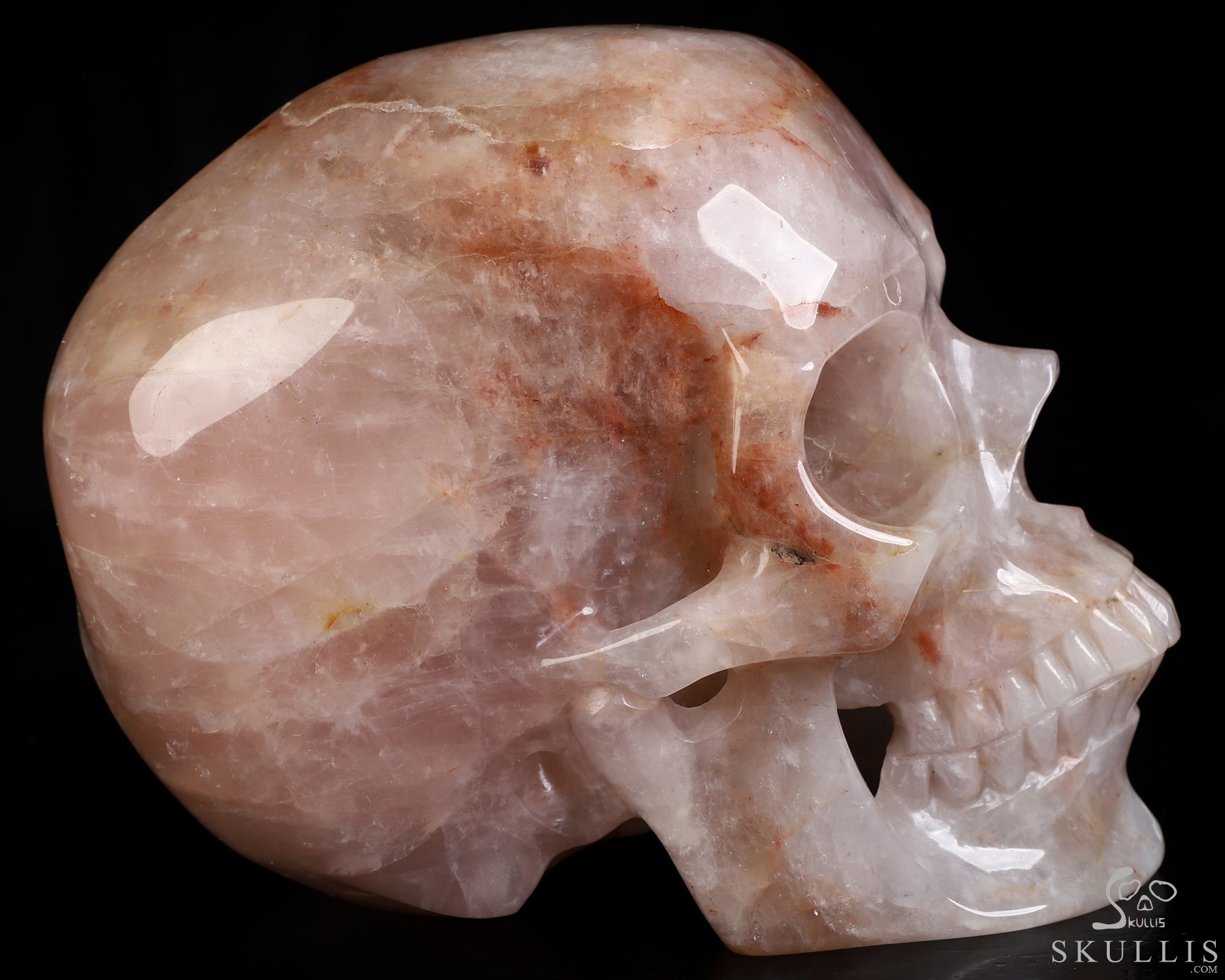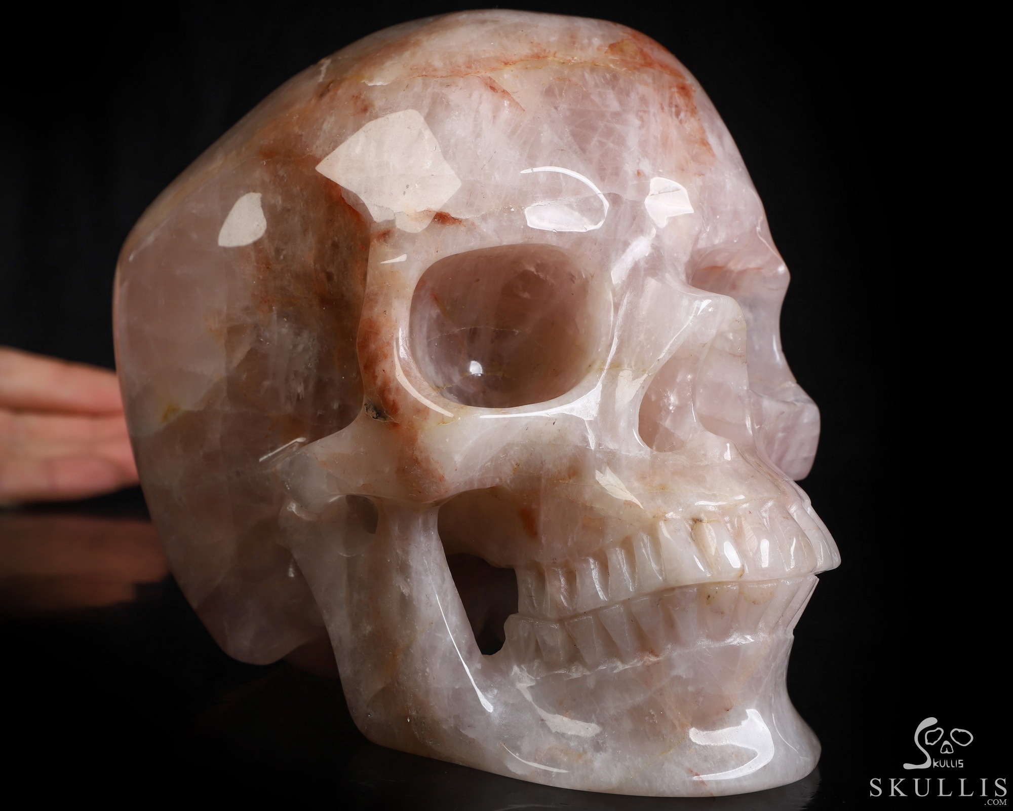 Lifesized 6.9" Fire Quartz Hand Carved Crystal Skull, Super Realistic, Crystal Healing