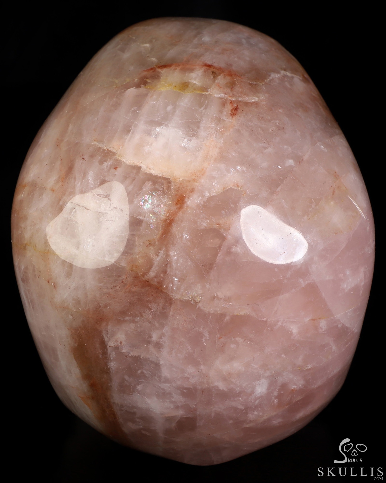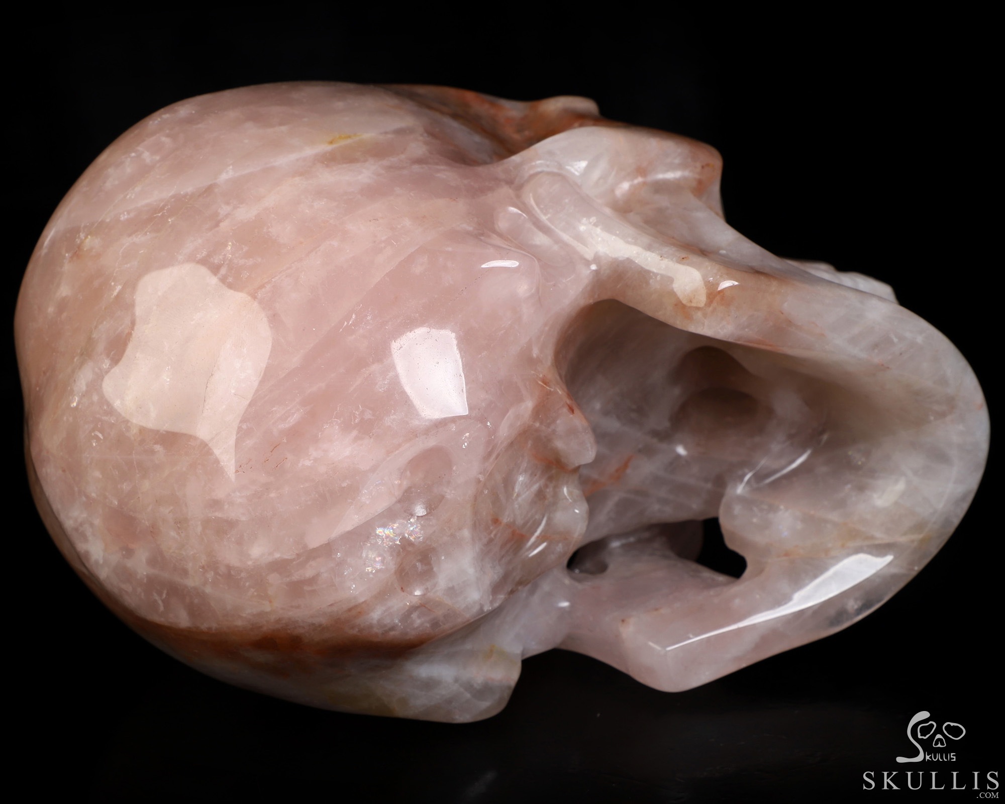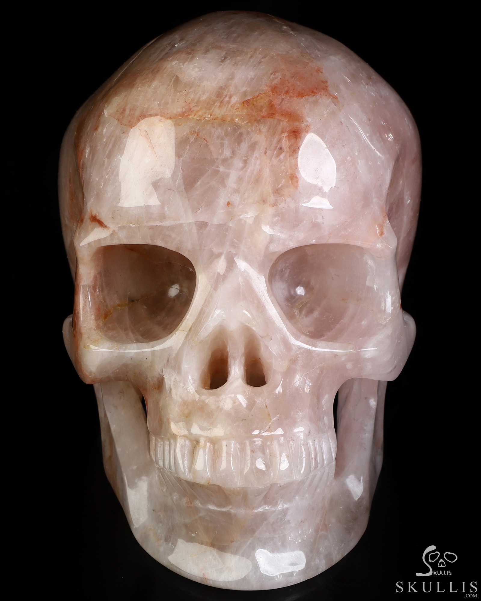 You are looking at a Fire Quartz skull. The skull is 6.9 inches from front to back.
