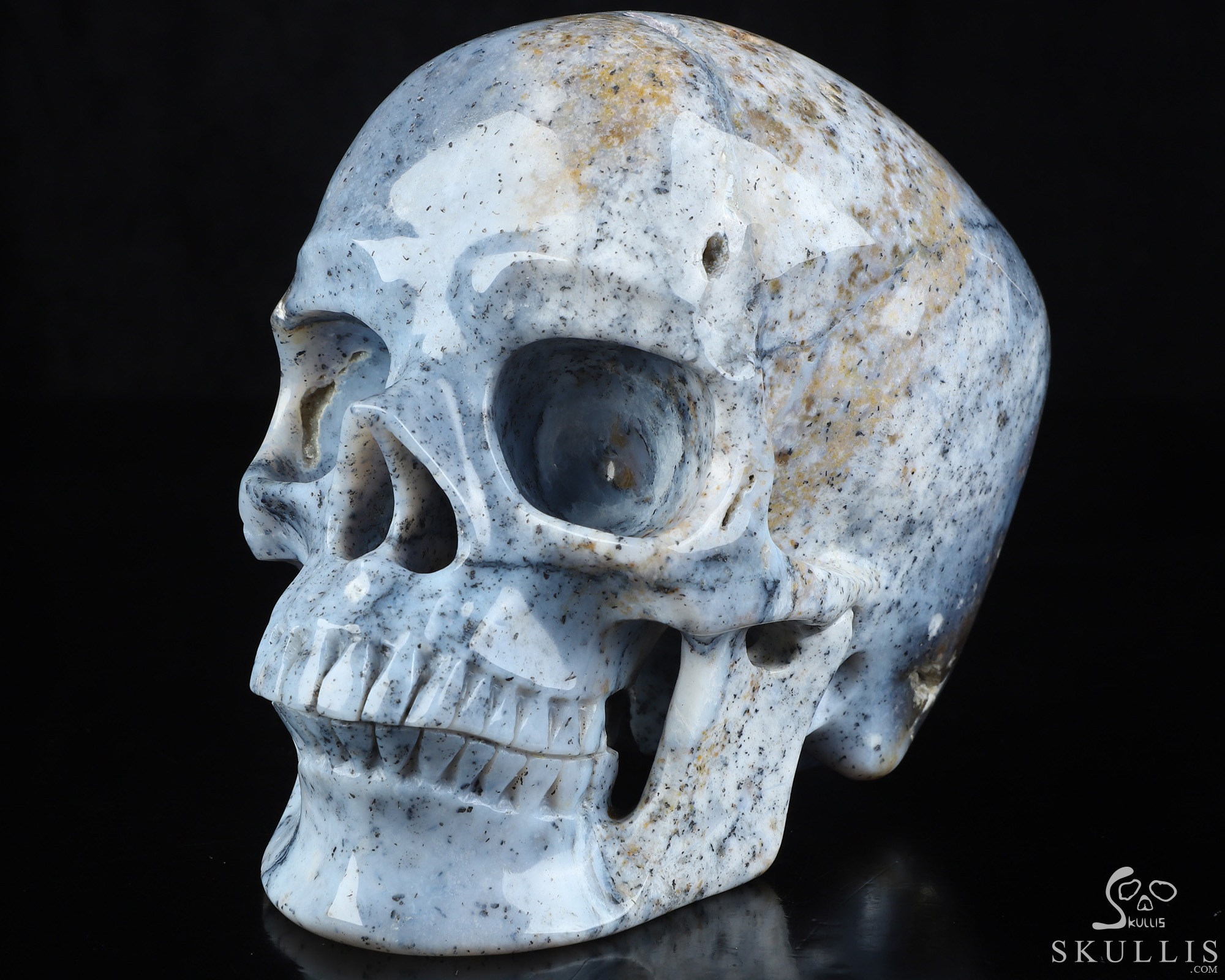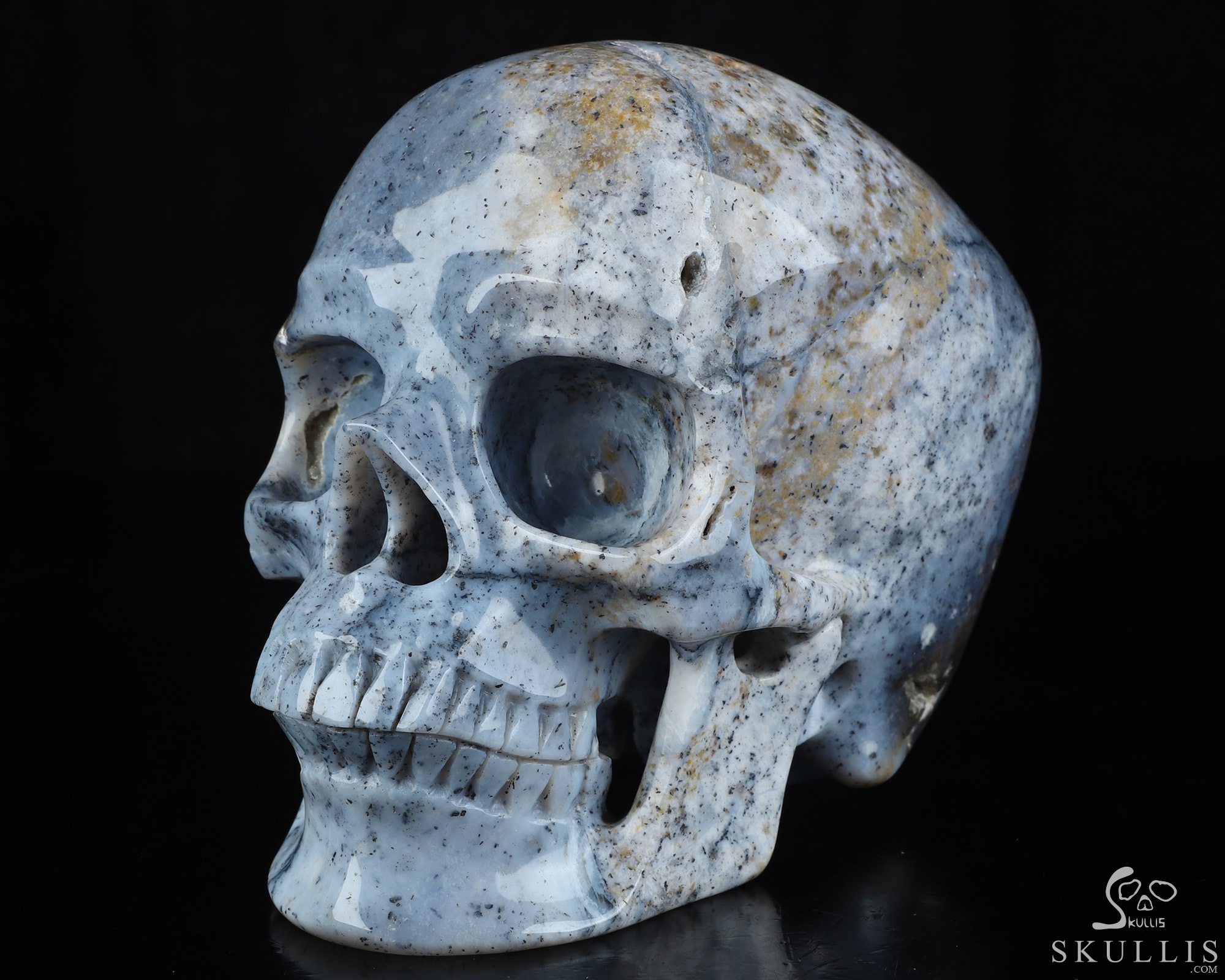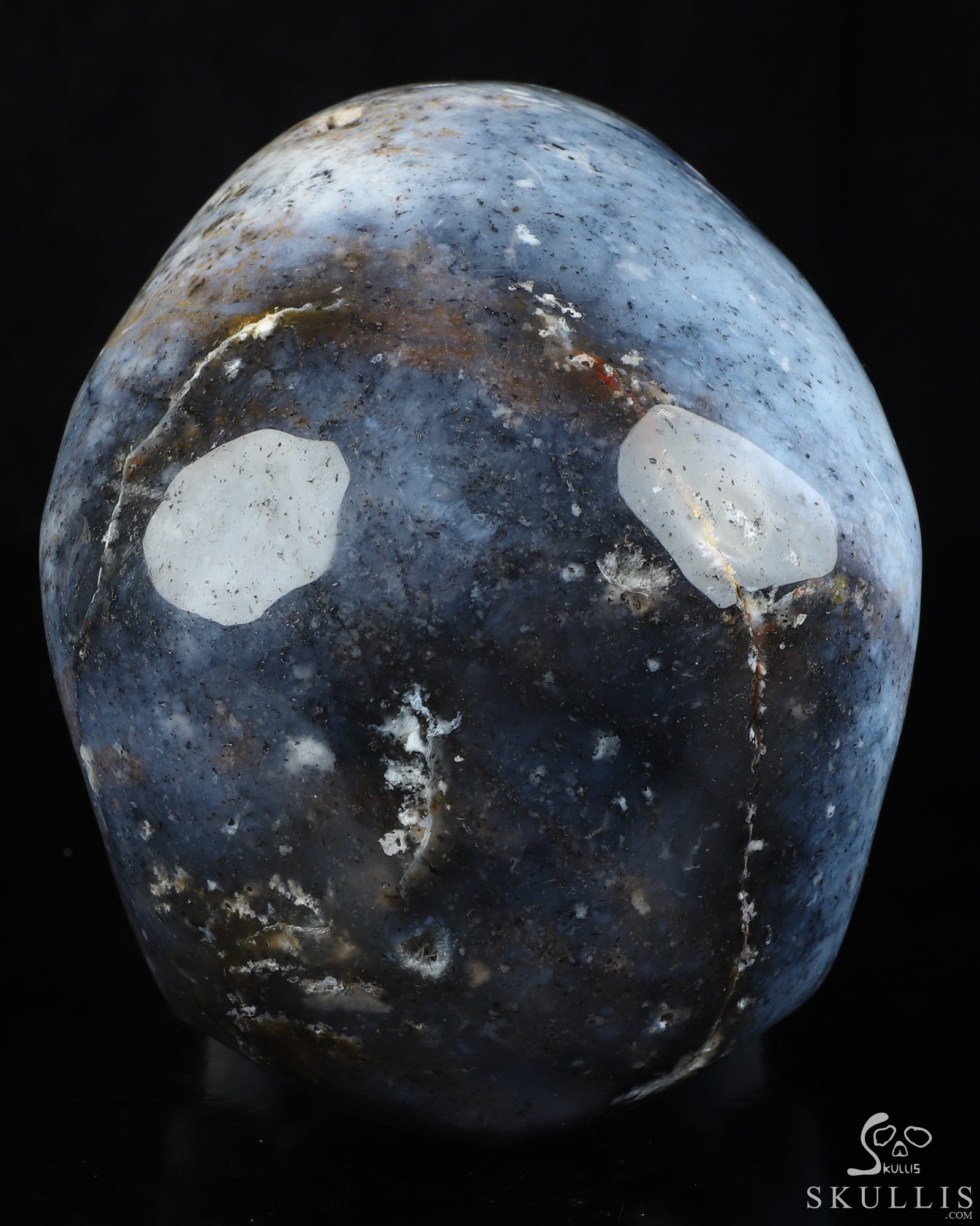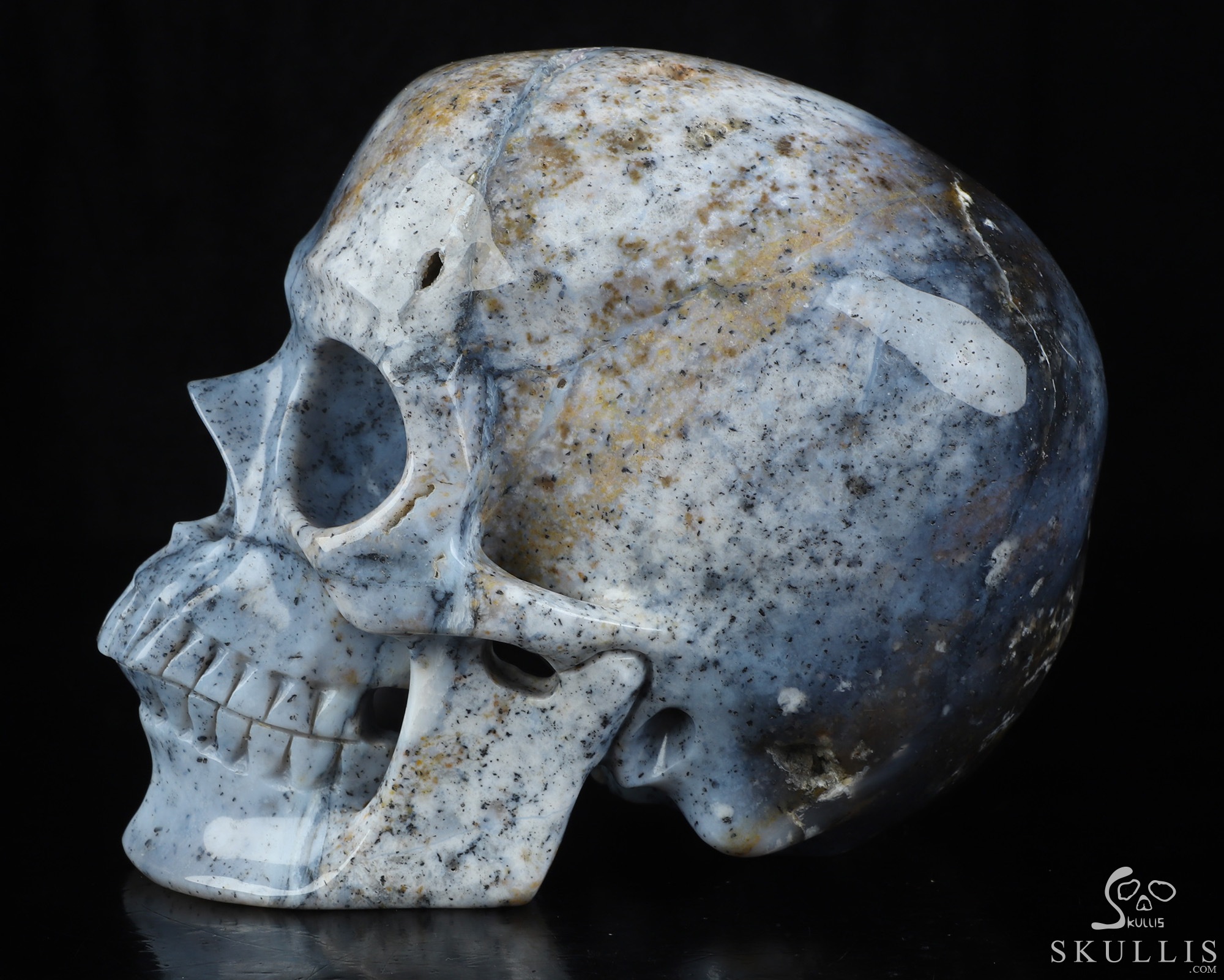 You are looking at a Flower Agate skull. The skull is 6.9 inches from front to back.