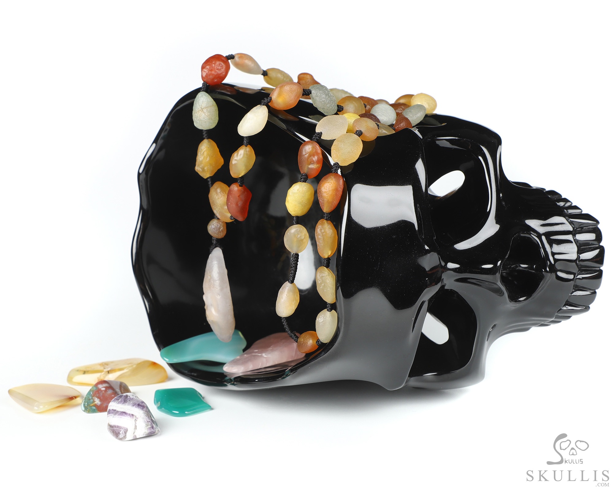 Lifesized 7.0" Black Obsidian Carved Crystal Skull Bowl Sculpture