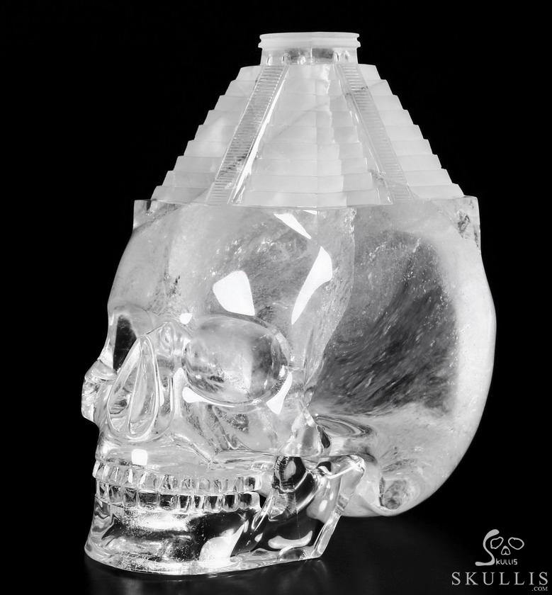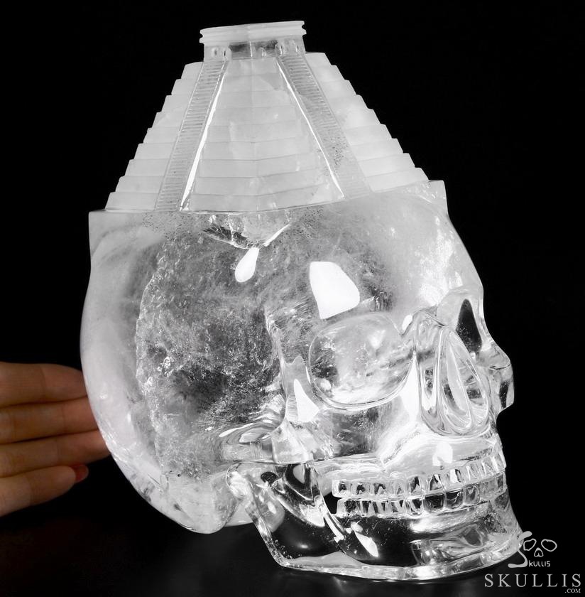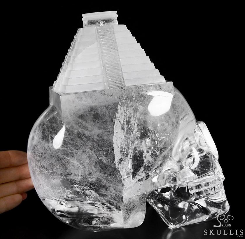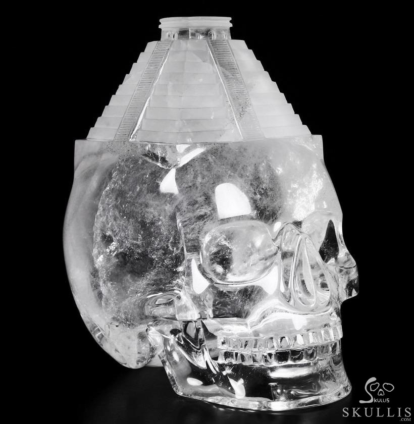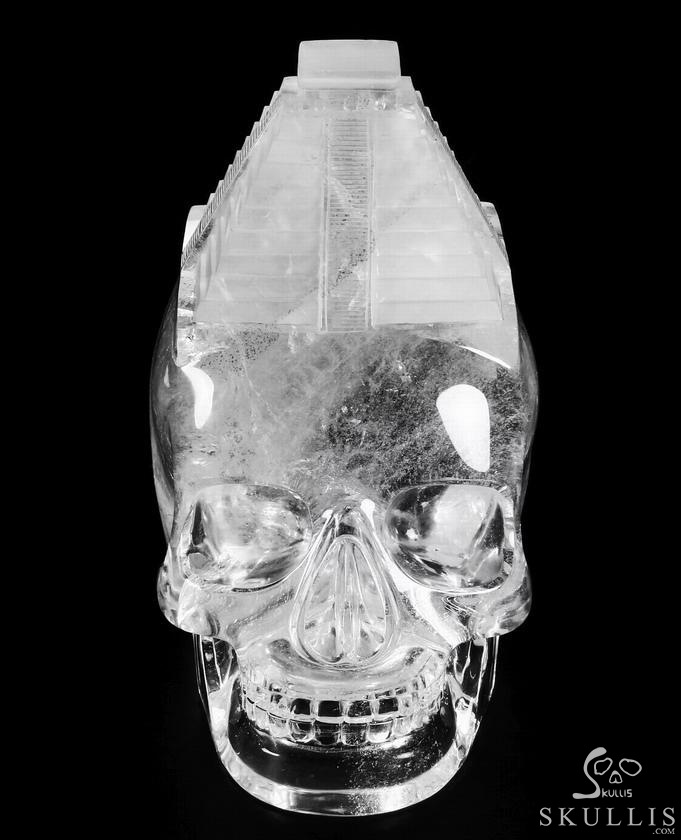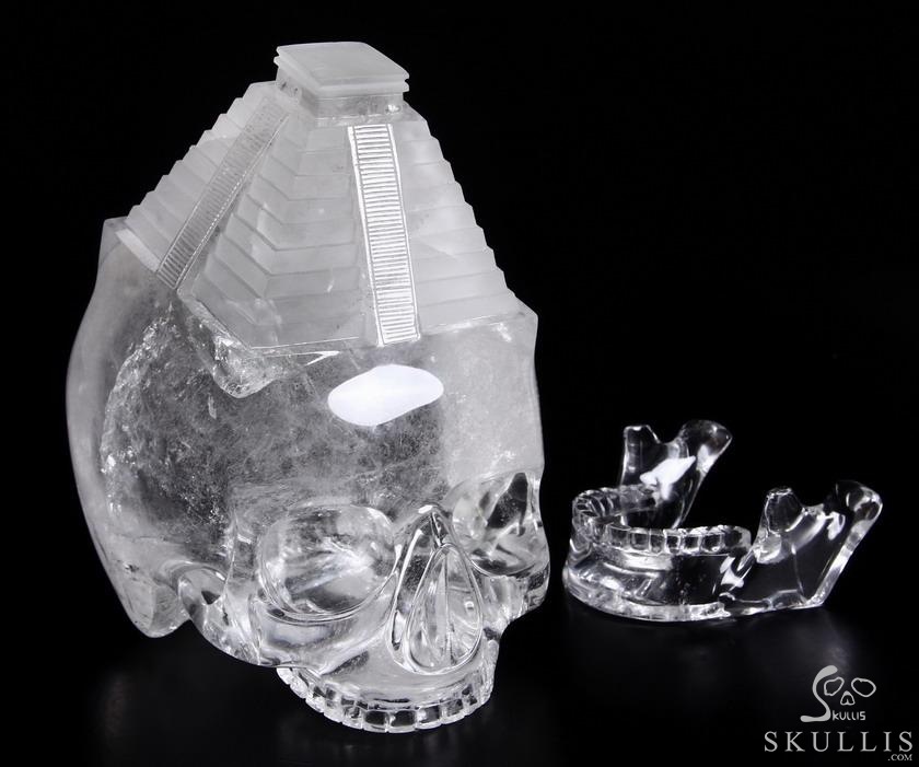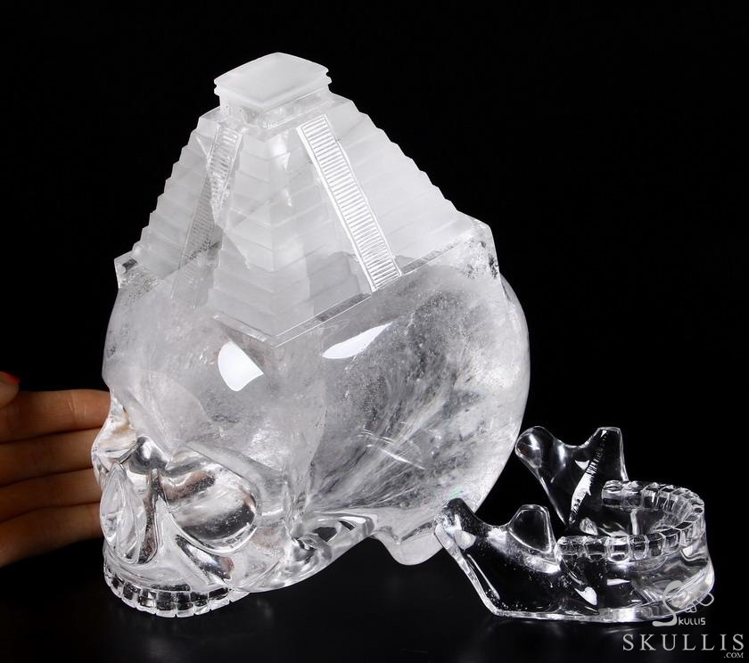 Lifesized 7.1" Quartz Rock Crystal Carved Mitchell-Hedges Crystal Skull Replica & Pyramid Sculpture