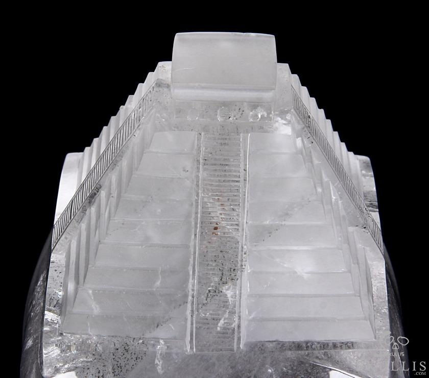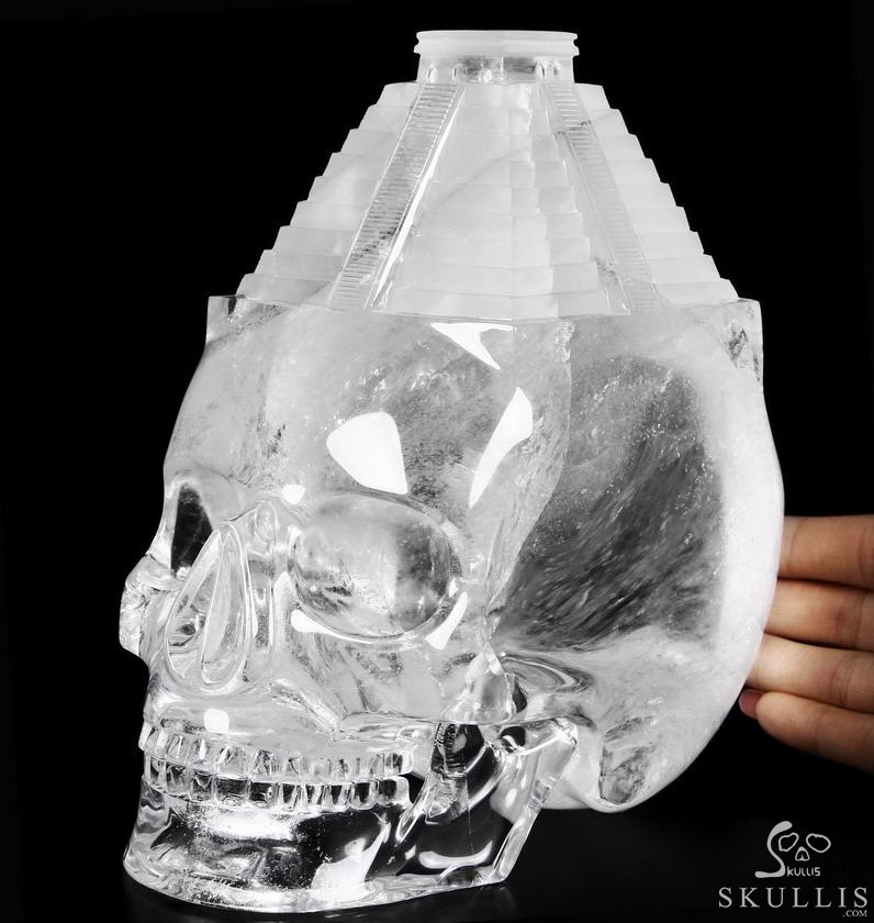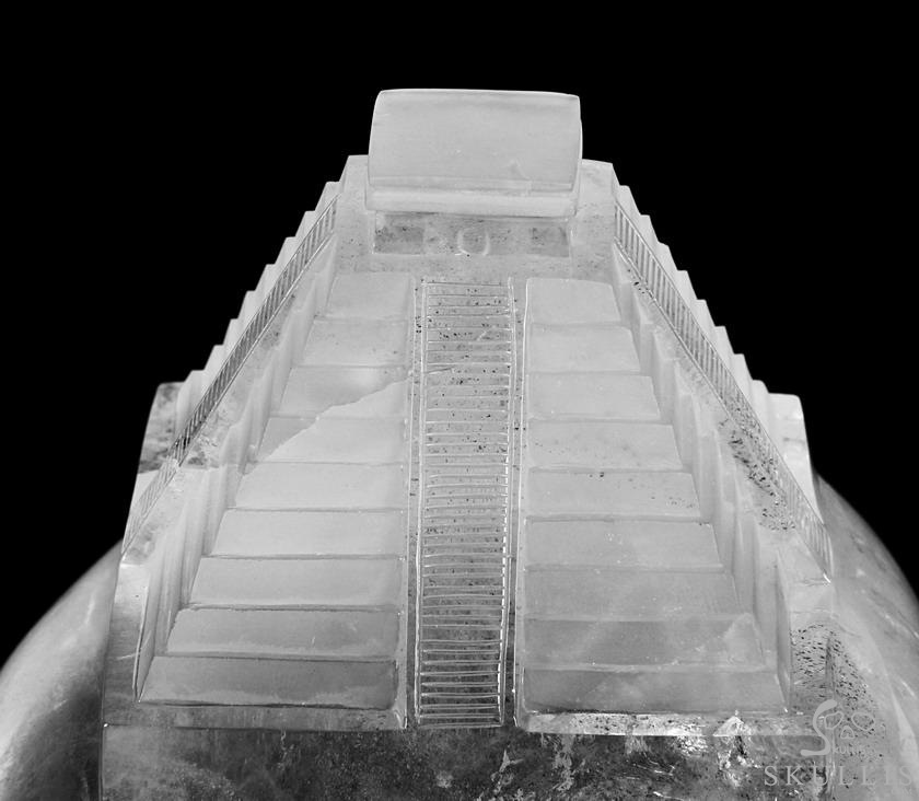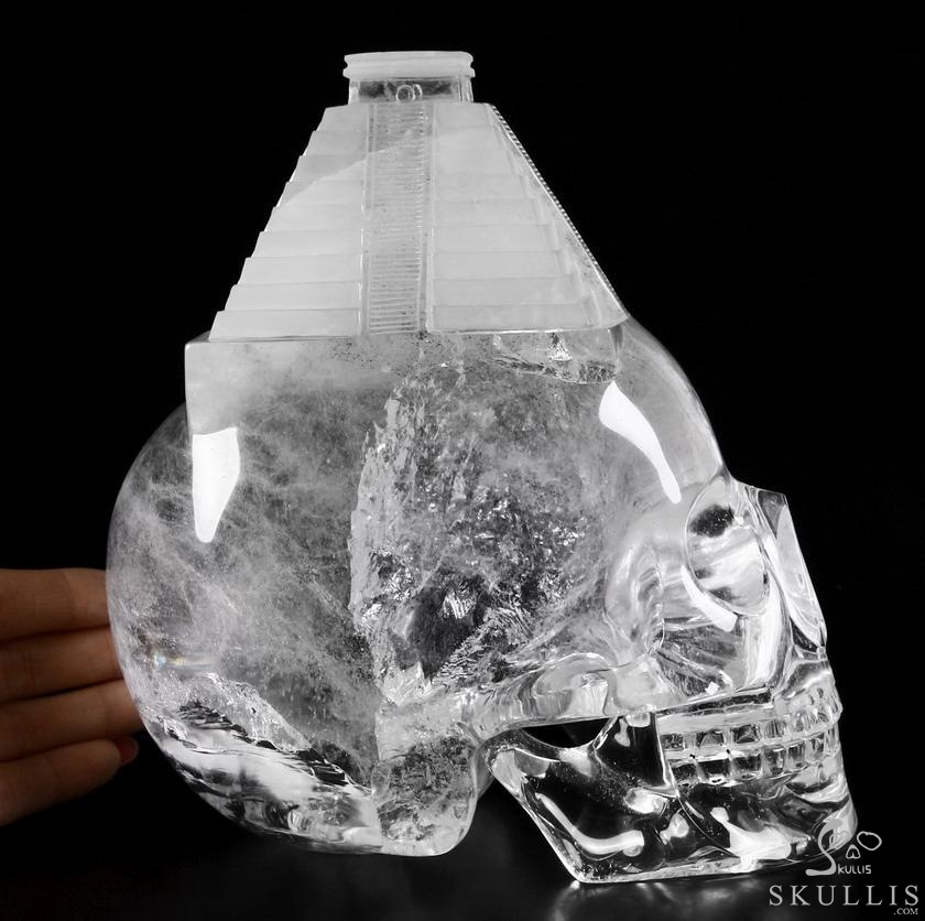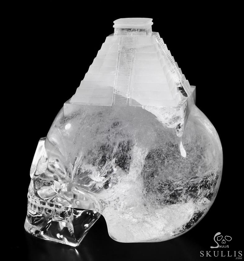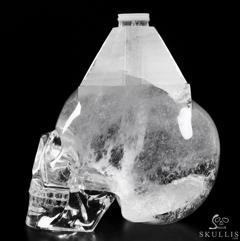 Lifesized 7.1" Quartz Rock Crystal Carved Mitchell-Hedges Crystal Skull Replica & Pyramid Sculpture