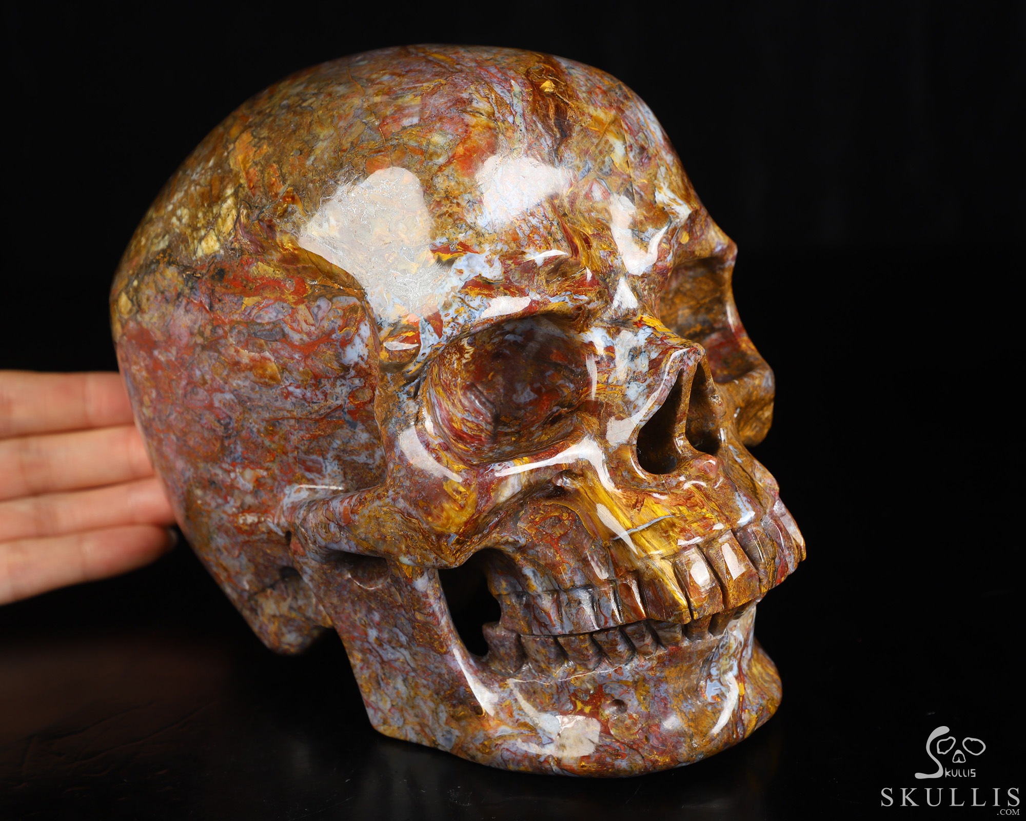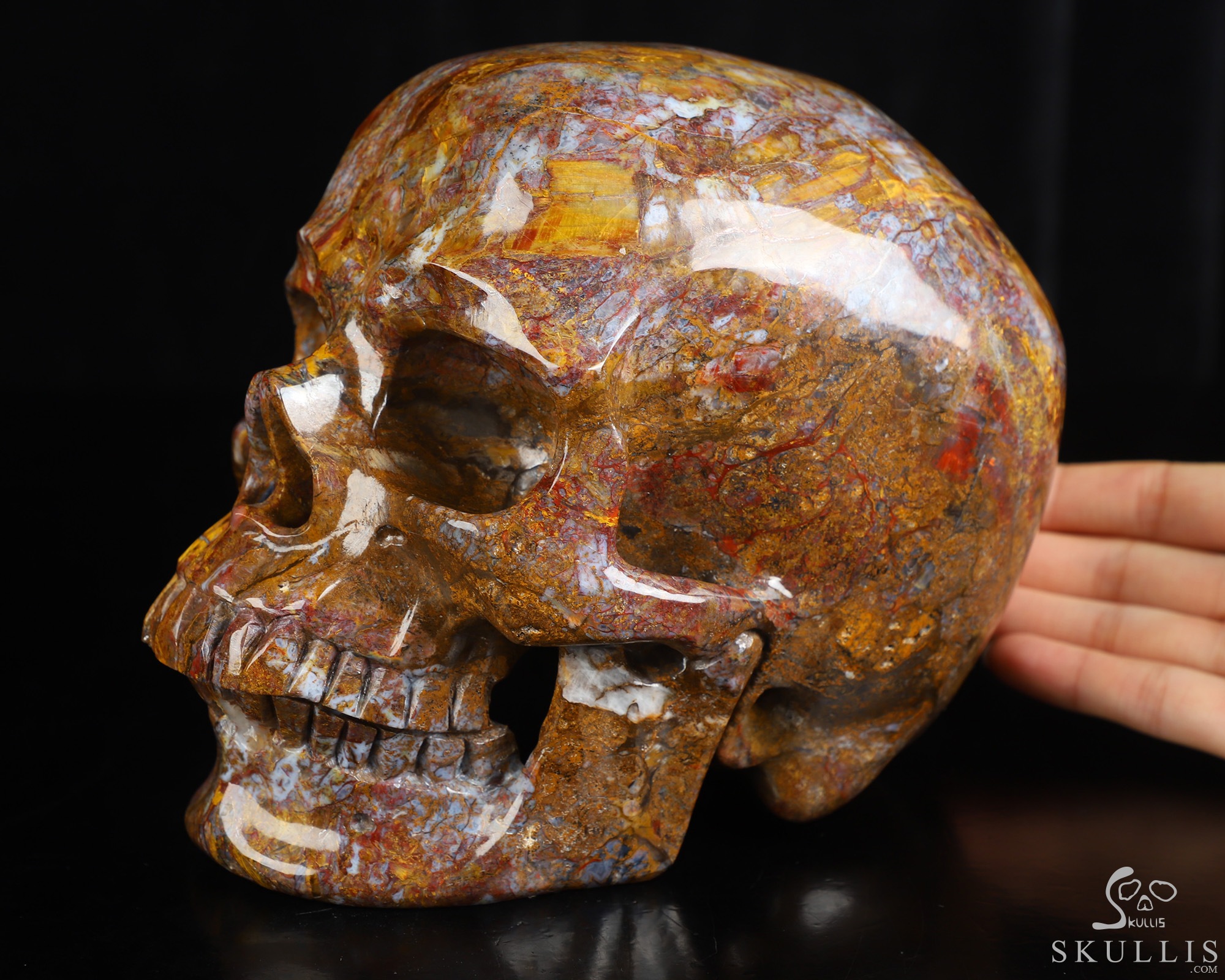 Lifesized 7.4" Pietersite Hand Carved Crystal Skull, Super Realistic, Crystal Healing