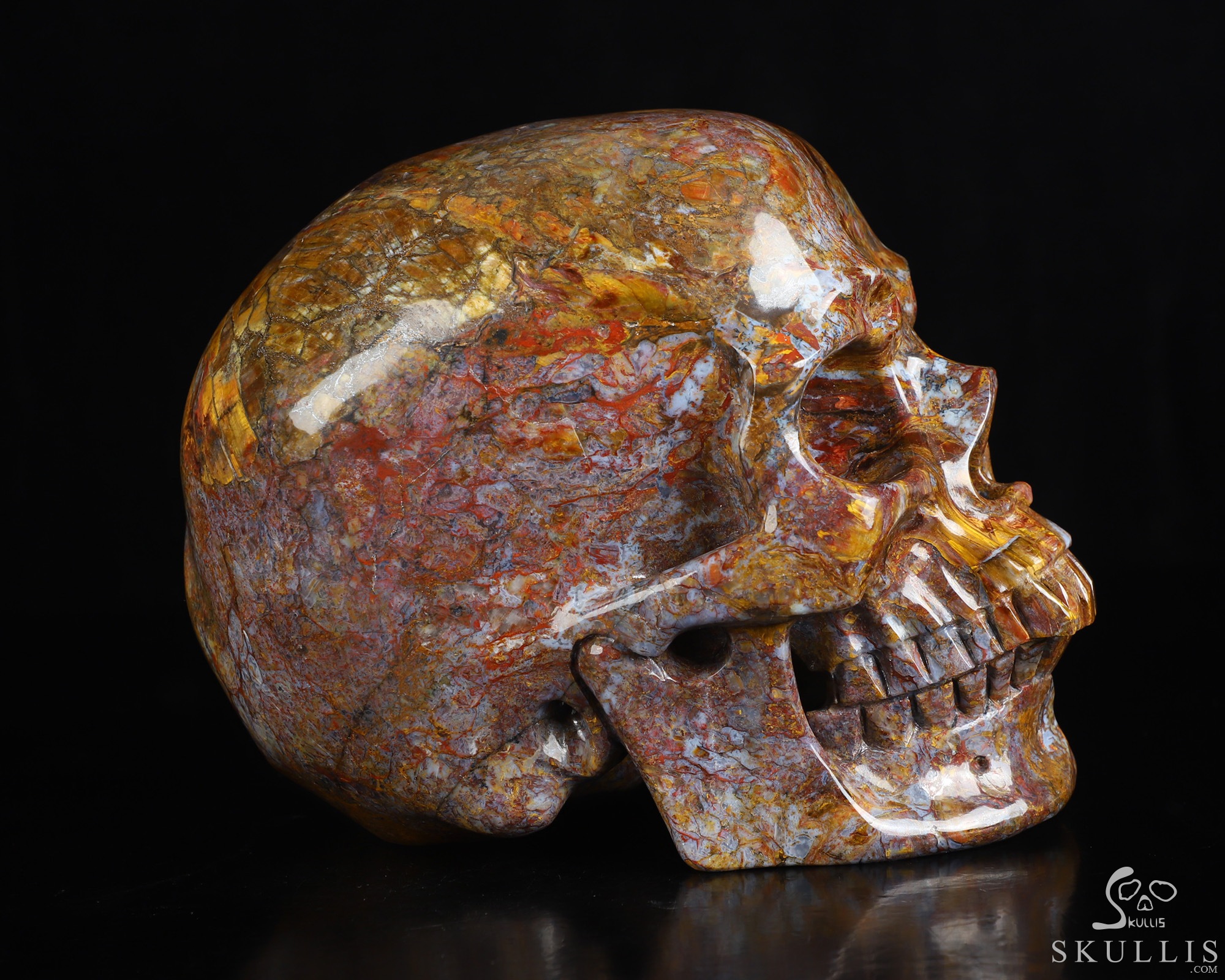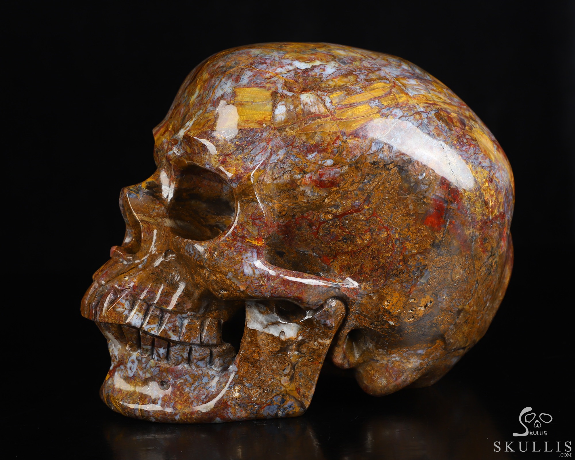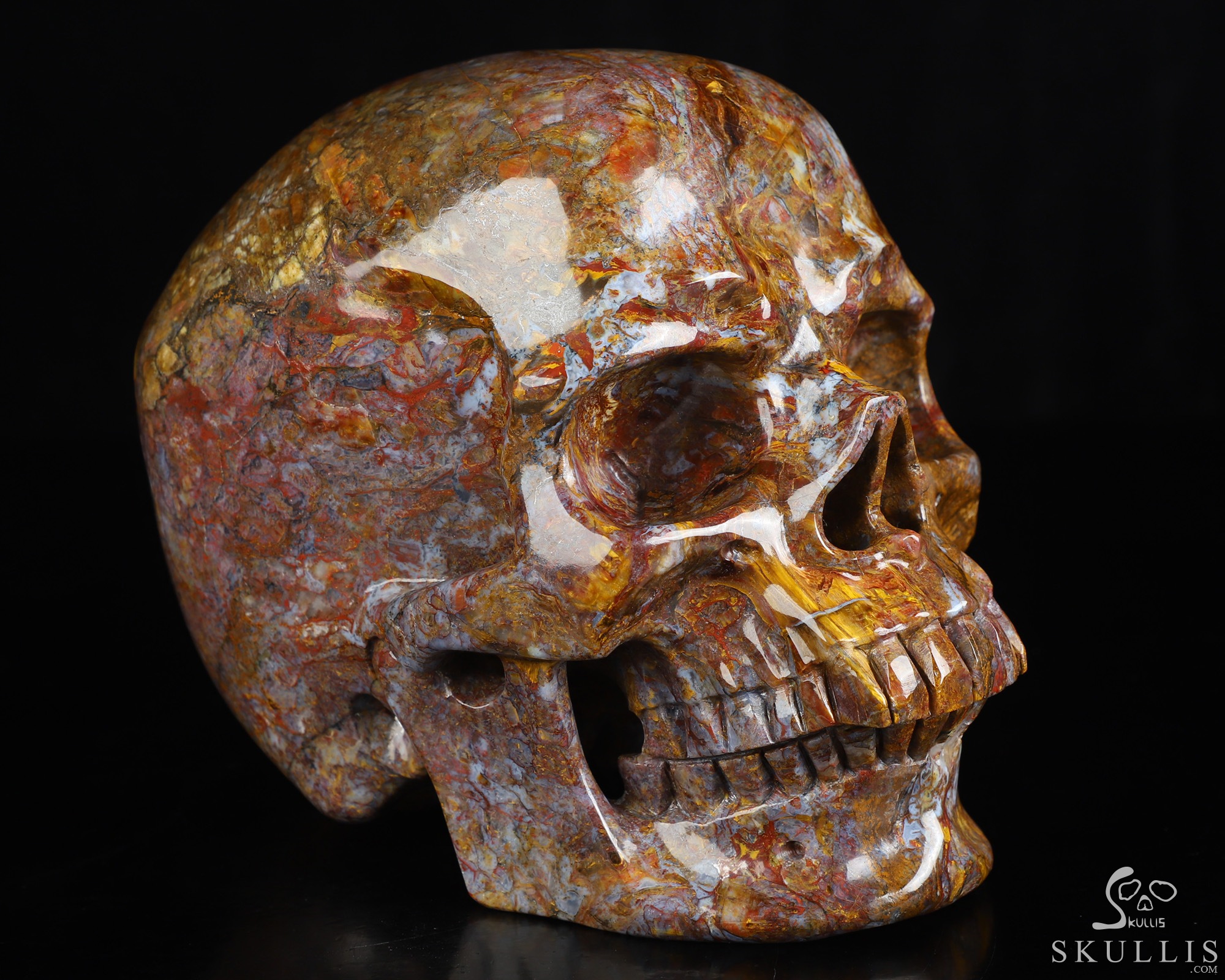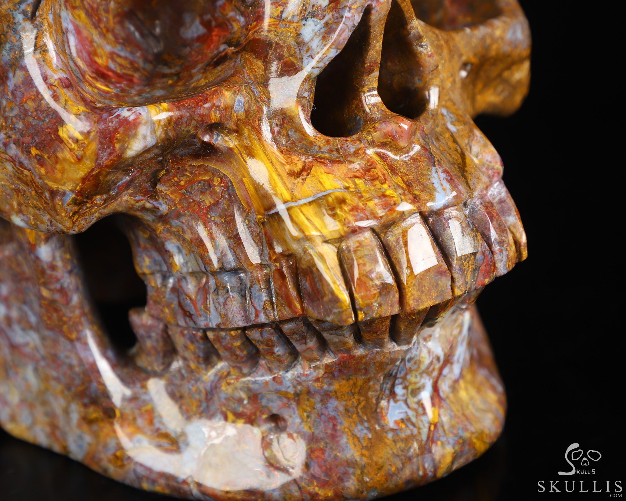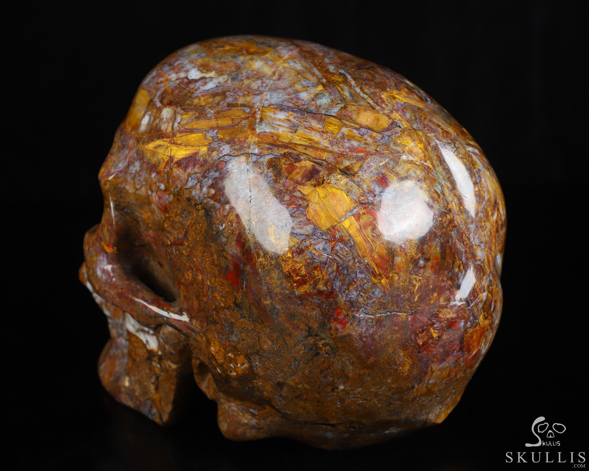 Gemstone Huge 5.6" Pietersite Carved Crystal Skull, Super Realistic