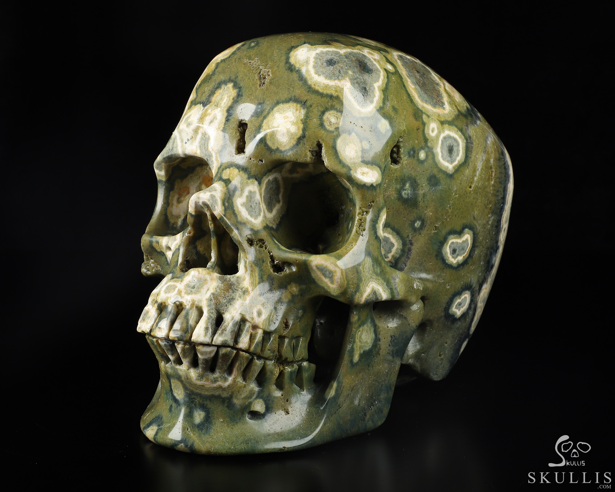 Lifesized 7.8" Ocean Jasper Carved Crystal Skull,Super Realistic, Crystal Healing