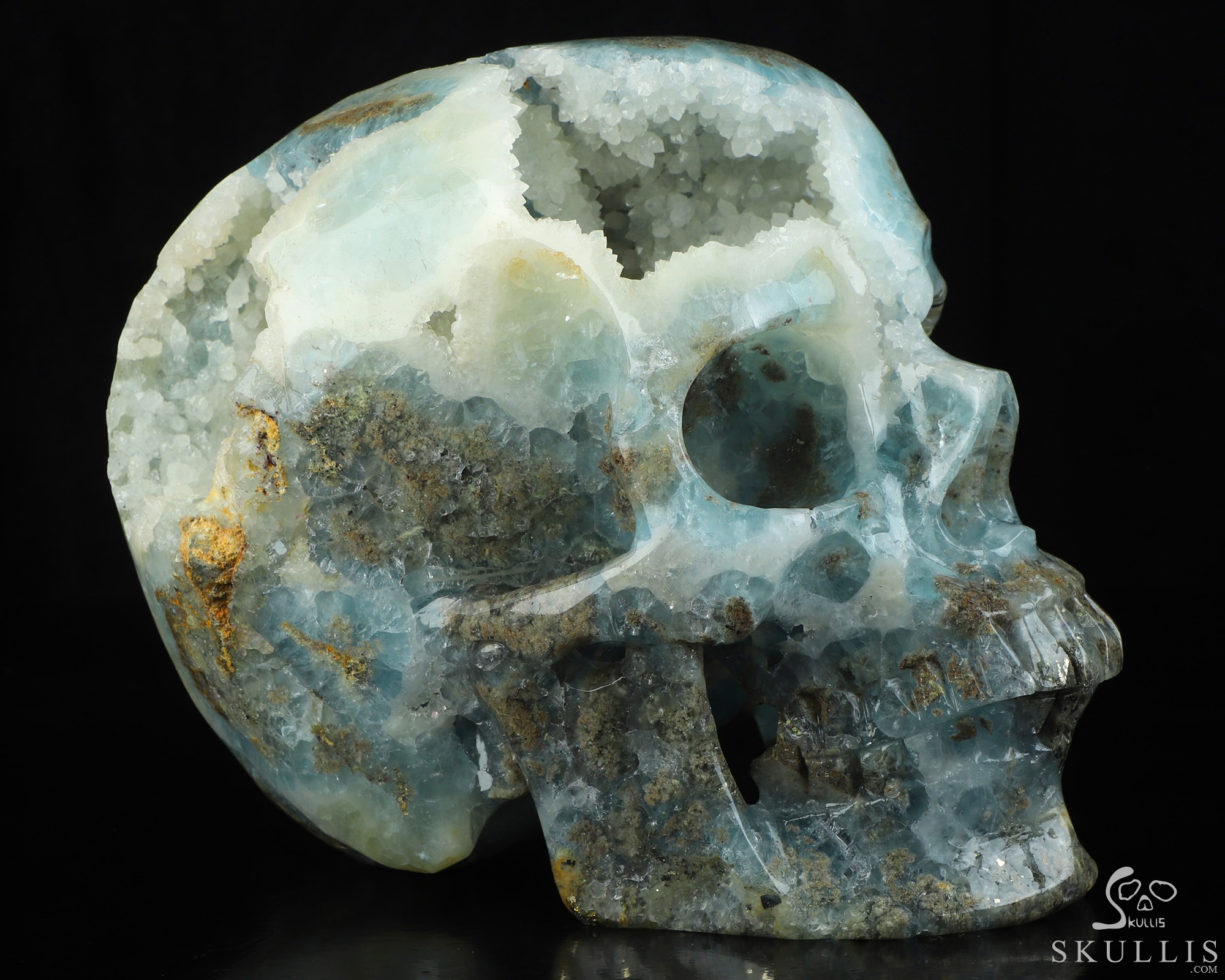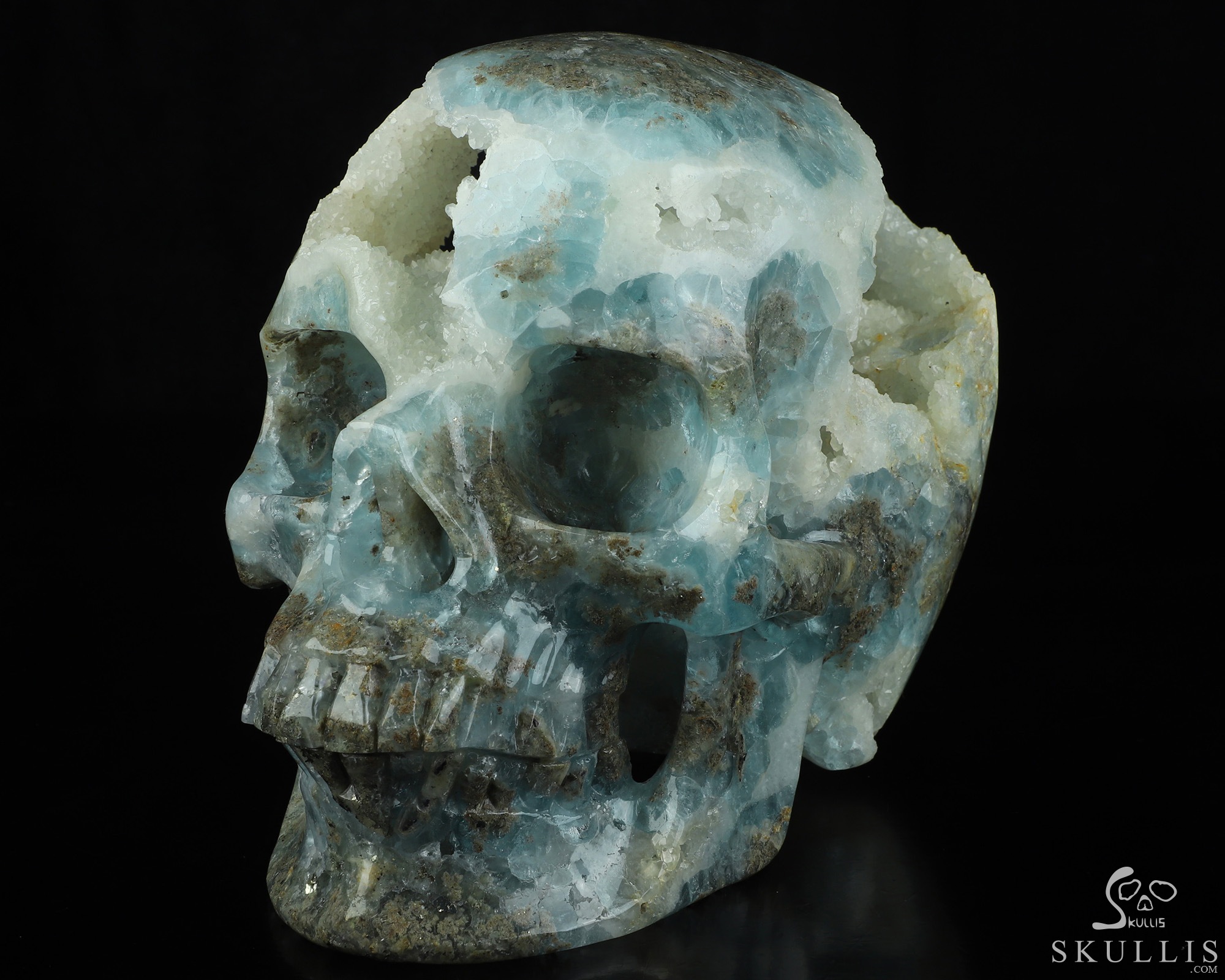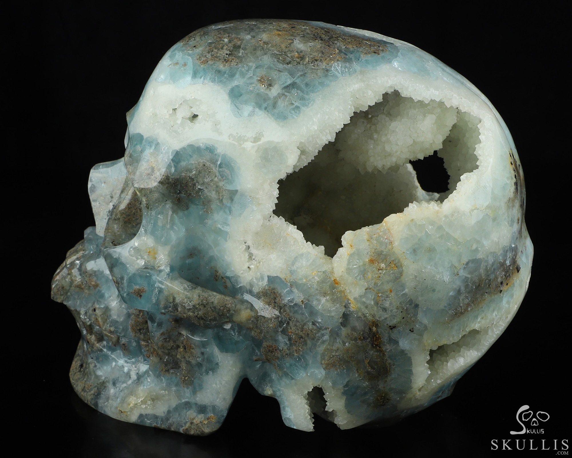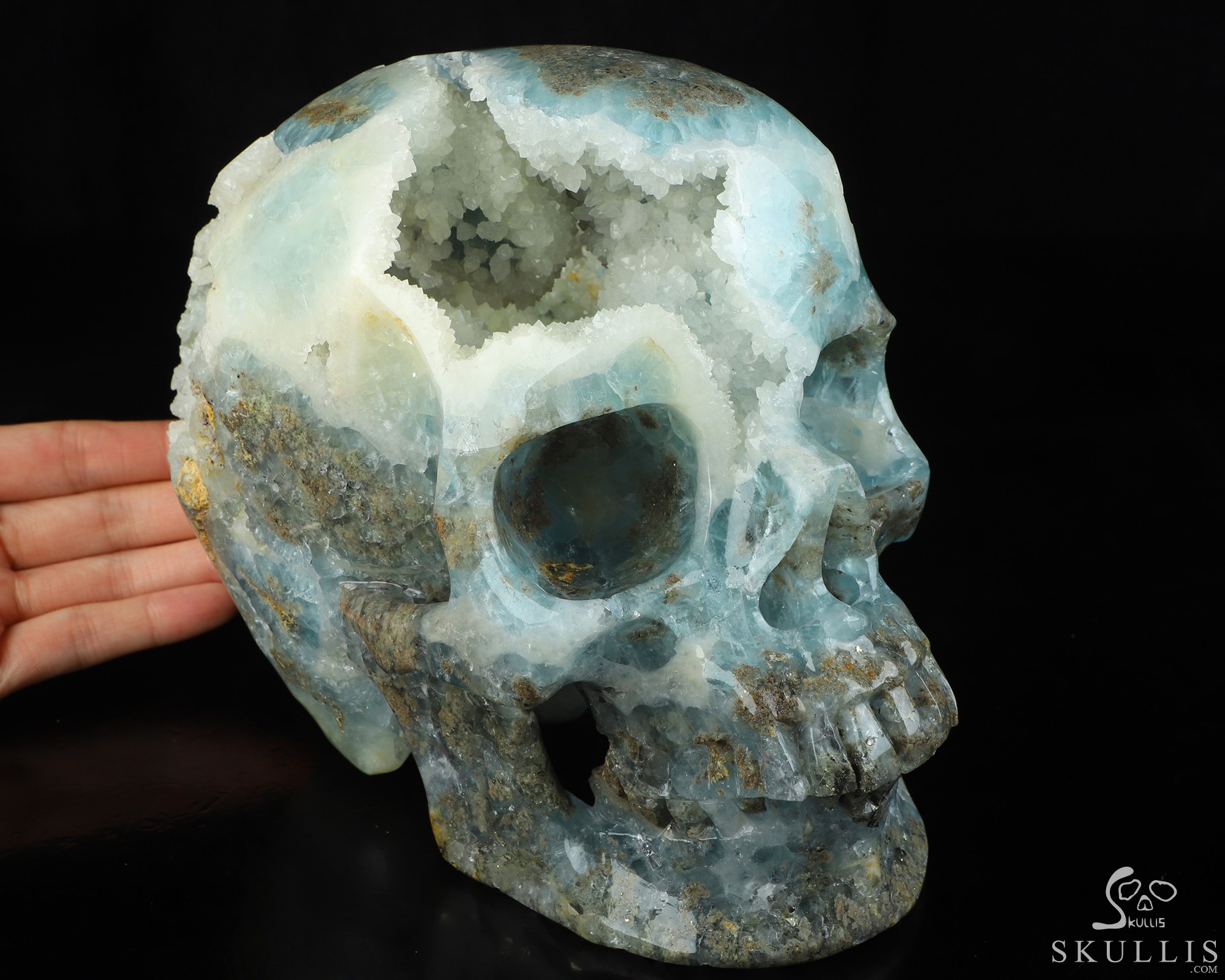 Lifesized 7.9" Fluorite Geode Hand Carved Crystal Skull, Super Realistic, Crystal Healing