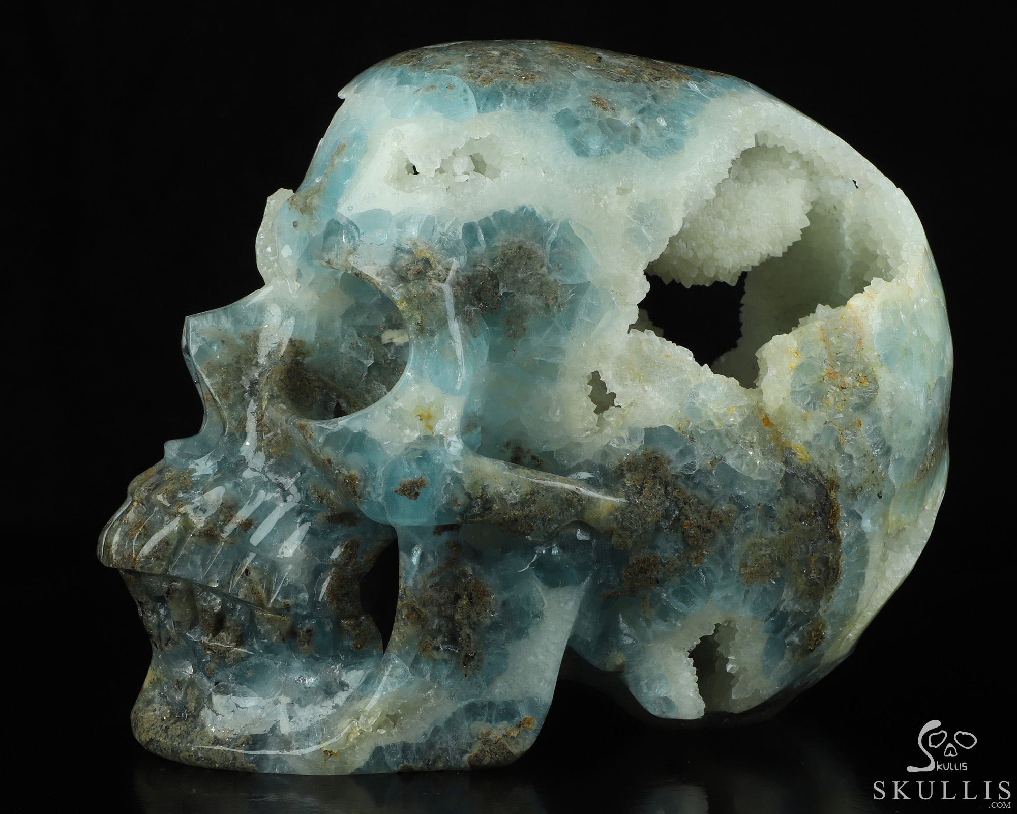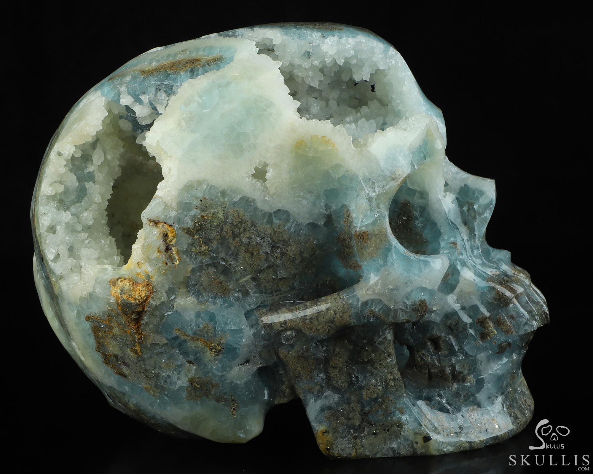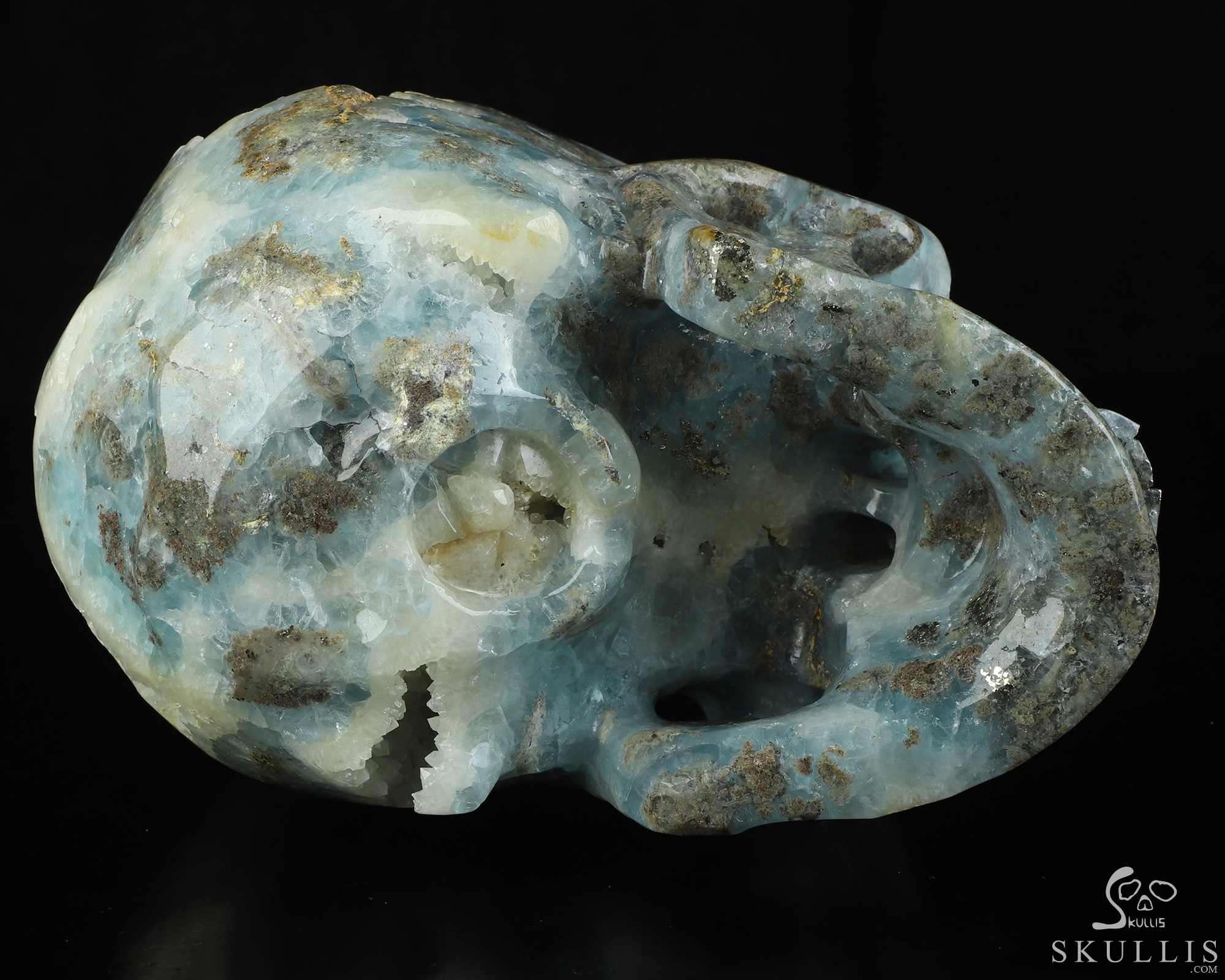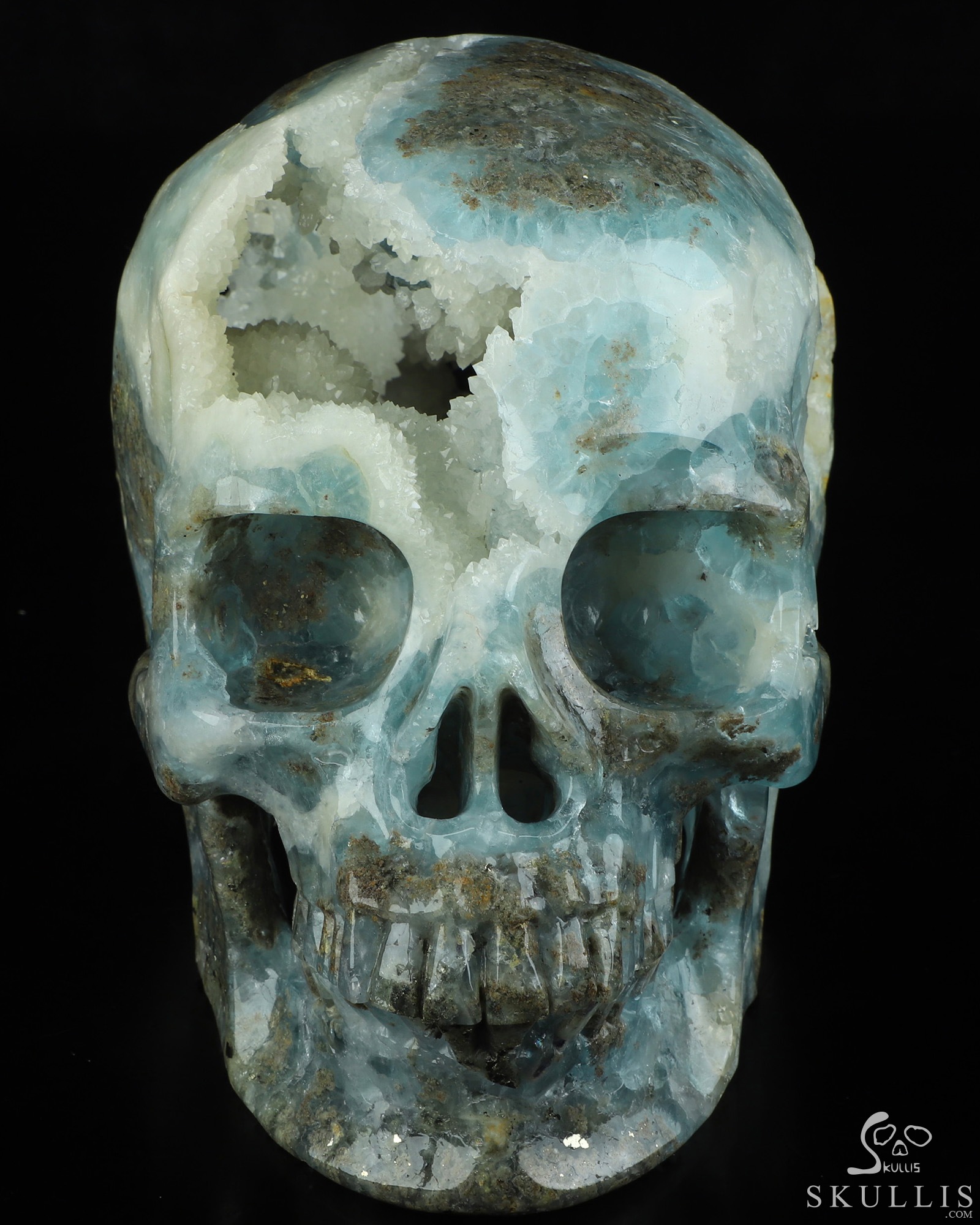 Lifesized 7.9" Fluorite Geode Hand Carved Crystal Skull, Super Realistic, Crystal Healing