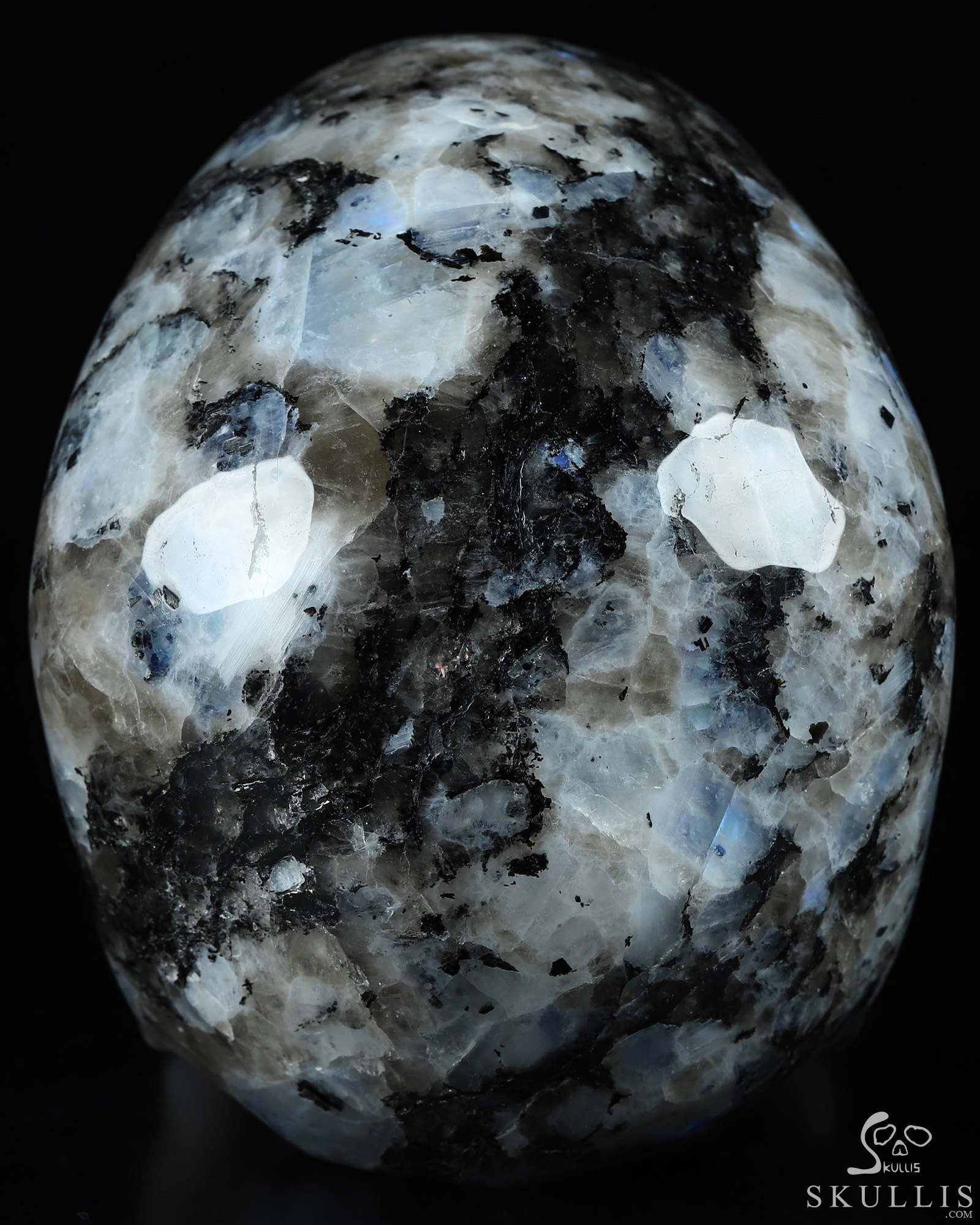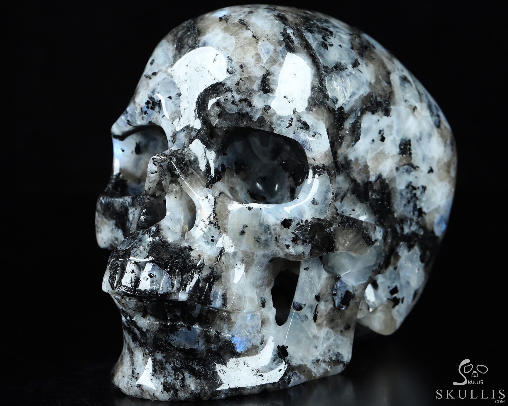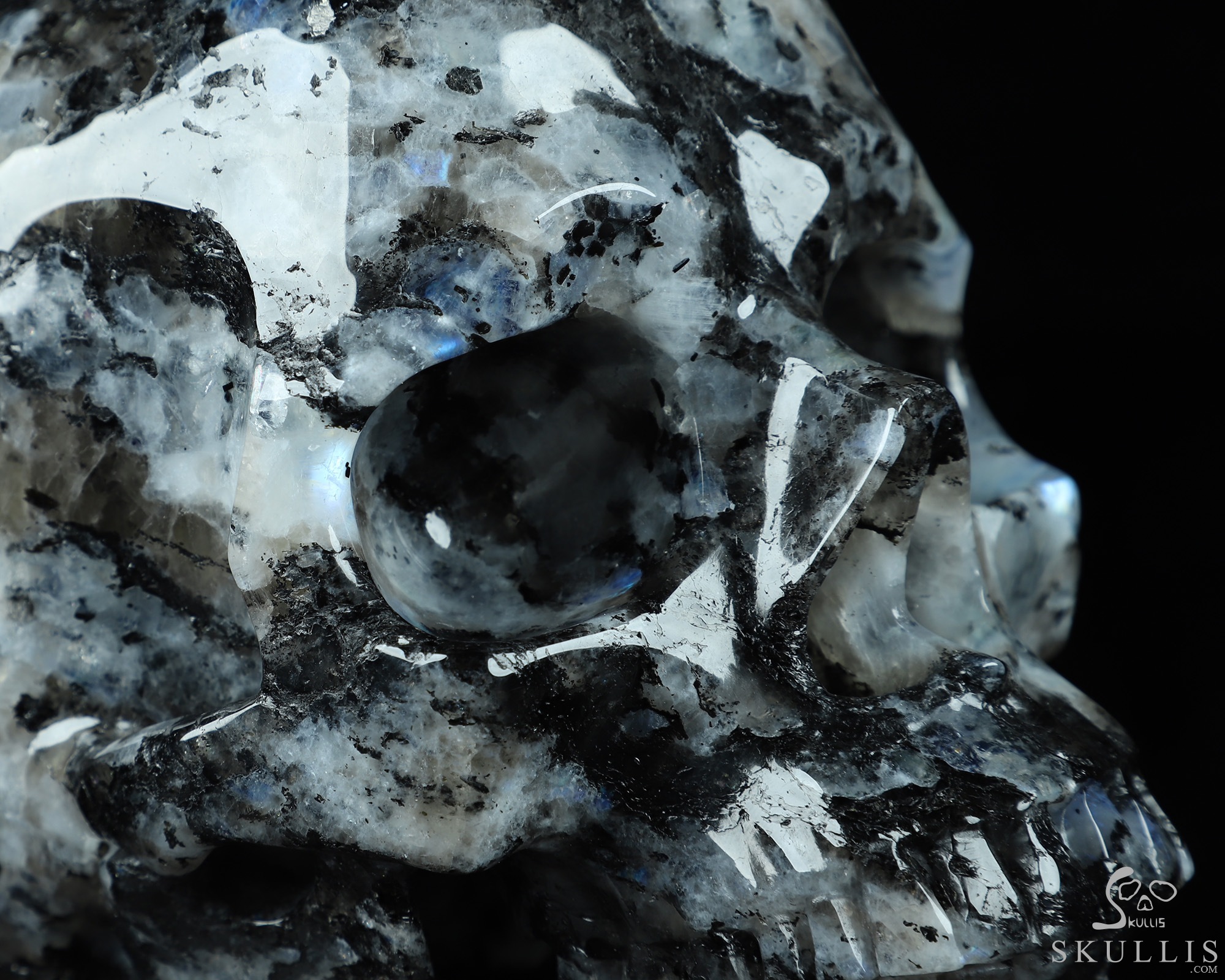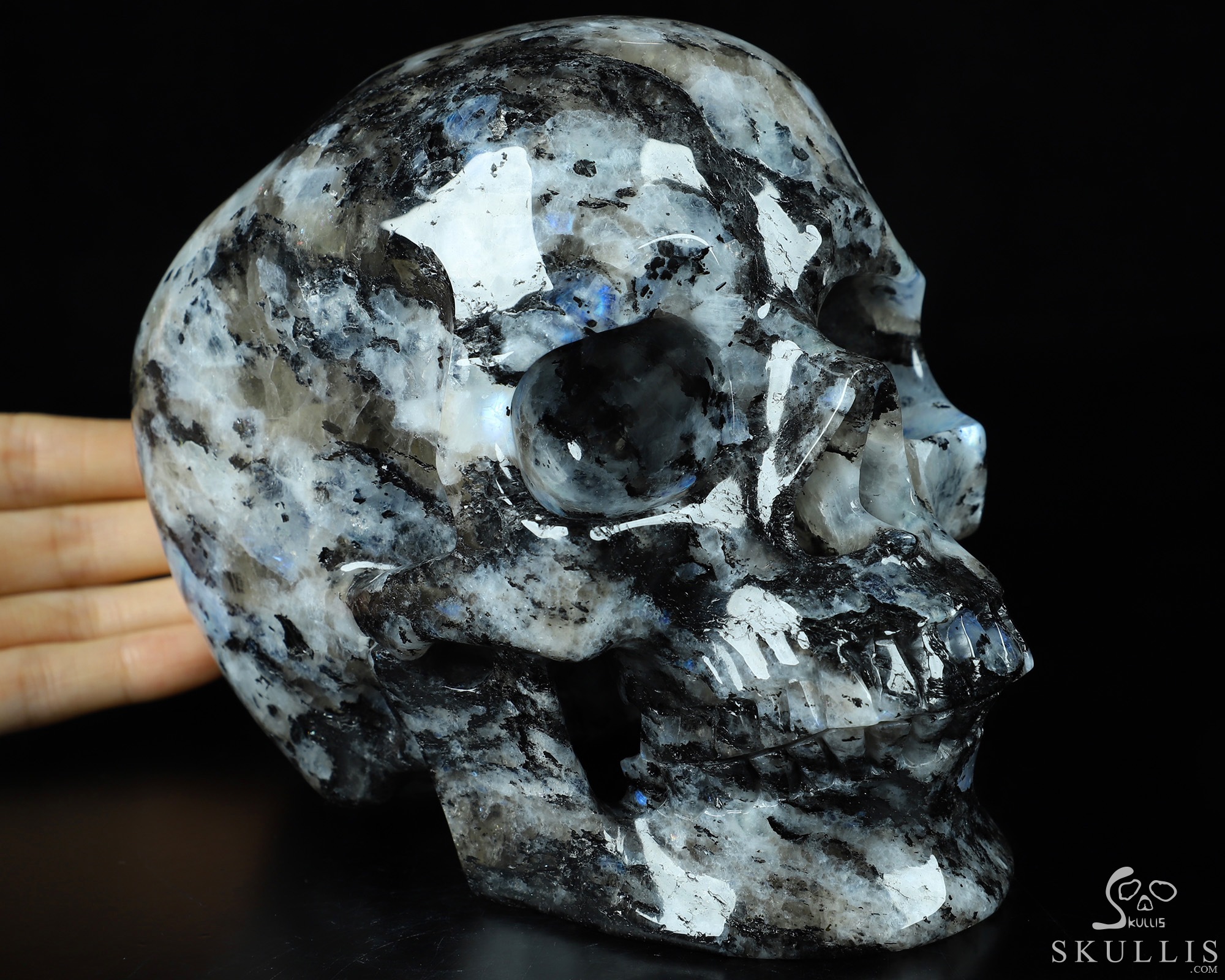 Lifesized Gemstone 6.7" Black Tourmaline and Moonstone Carved Crystal Skull,Super Realistic, Crystal Healing