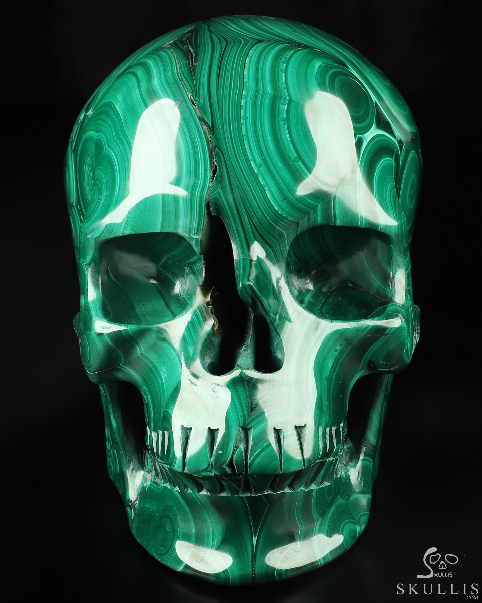 Giant 7.0" Malachite Carved Crystal Skull, Super Realistic