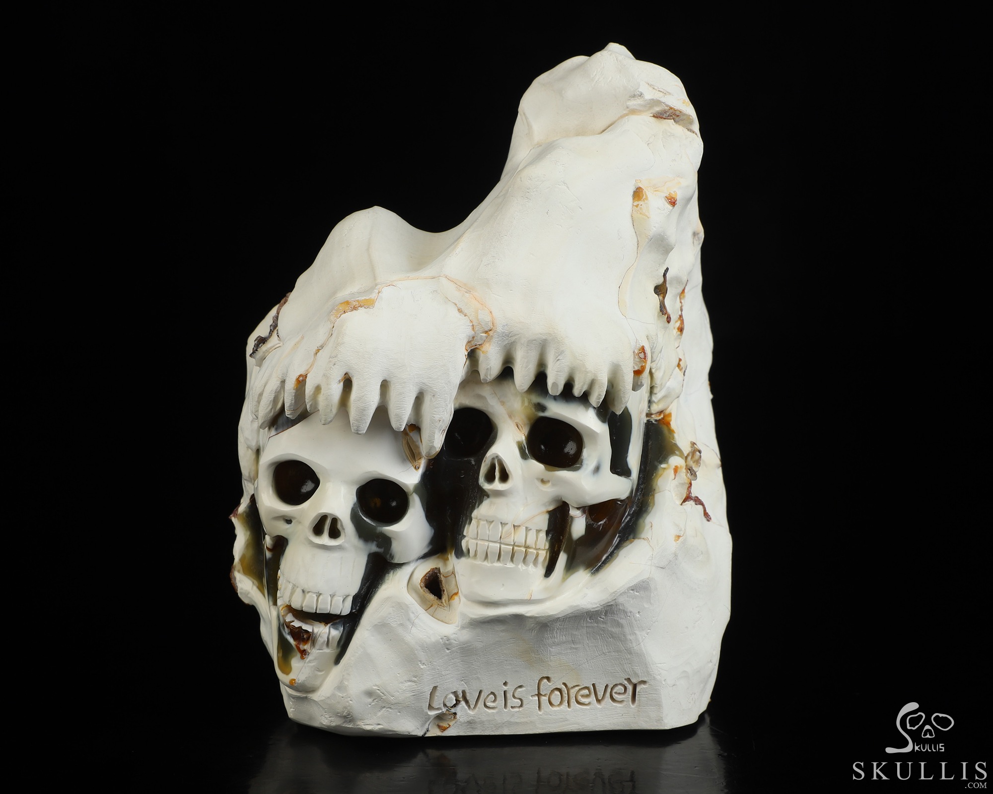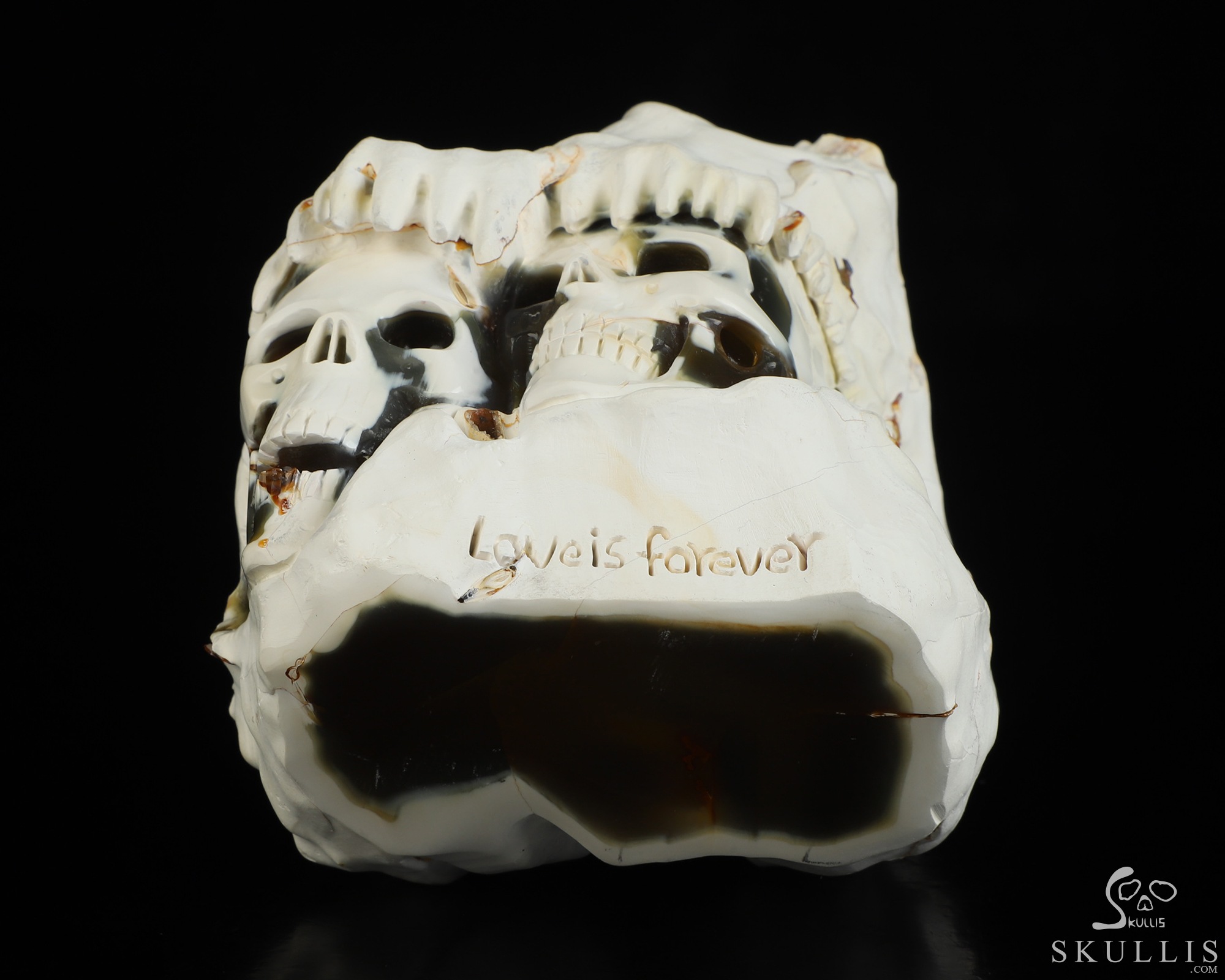 Love is Forever, 5.0" Orca agate Hand Carved Crystal Skull Fine Art Sculpture, Crystal Healing