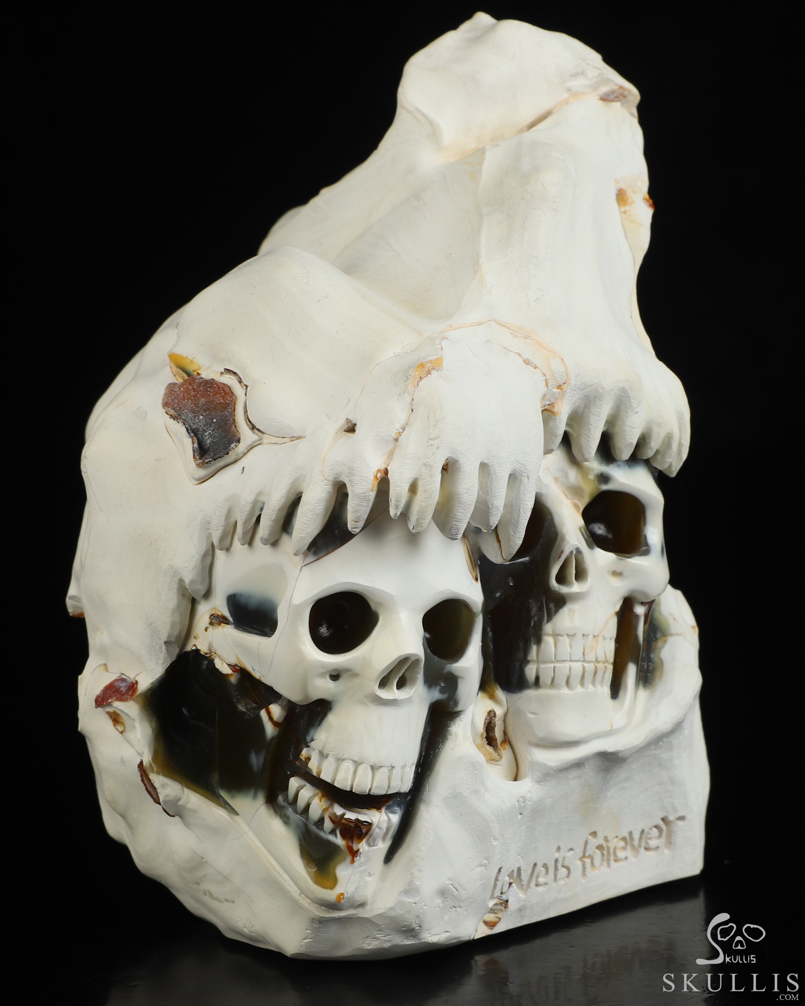8.7" Orca agate Hand Carved Crystal Skull and Dragon Fine Art Sculpture, Crystal Healing
