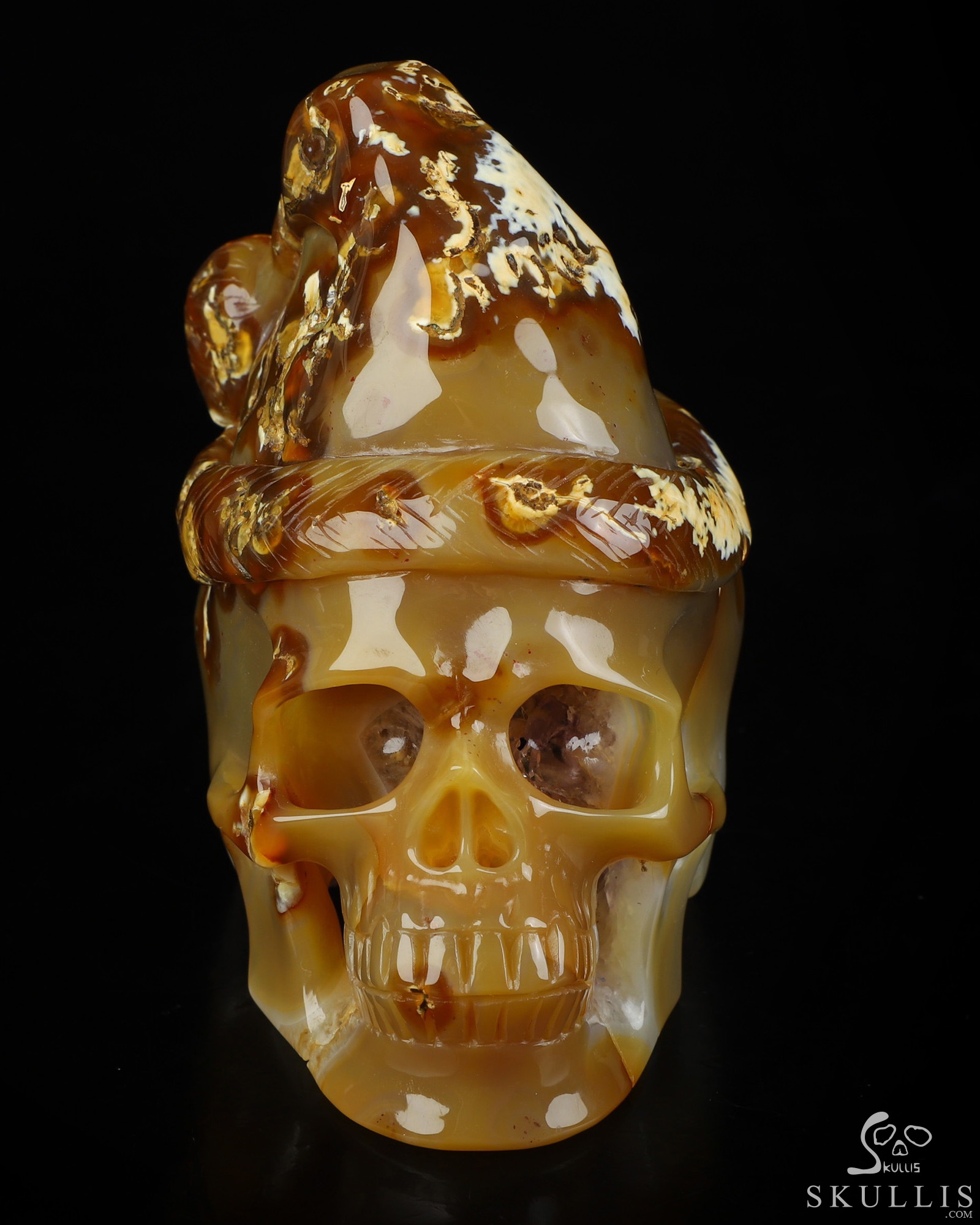 Merry Christmas! 3.8" Agate Amethyst Geode Hand Carved Crystal Skull Fine Art Sculpture, Crystal Healing