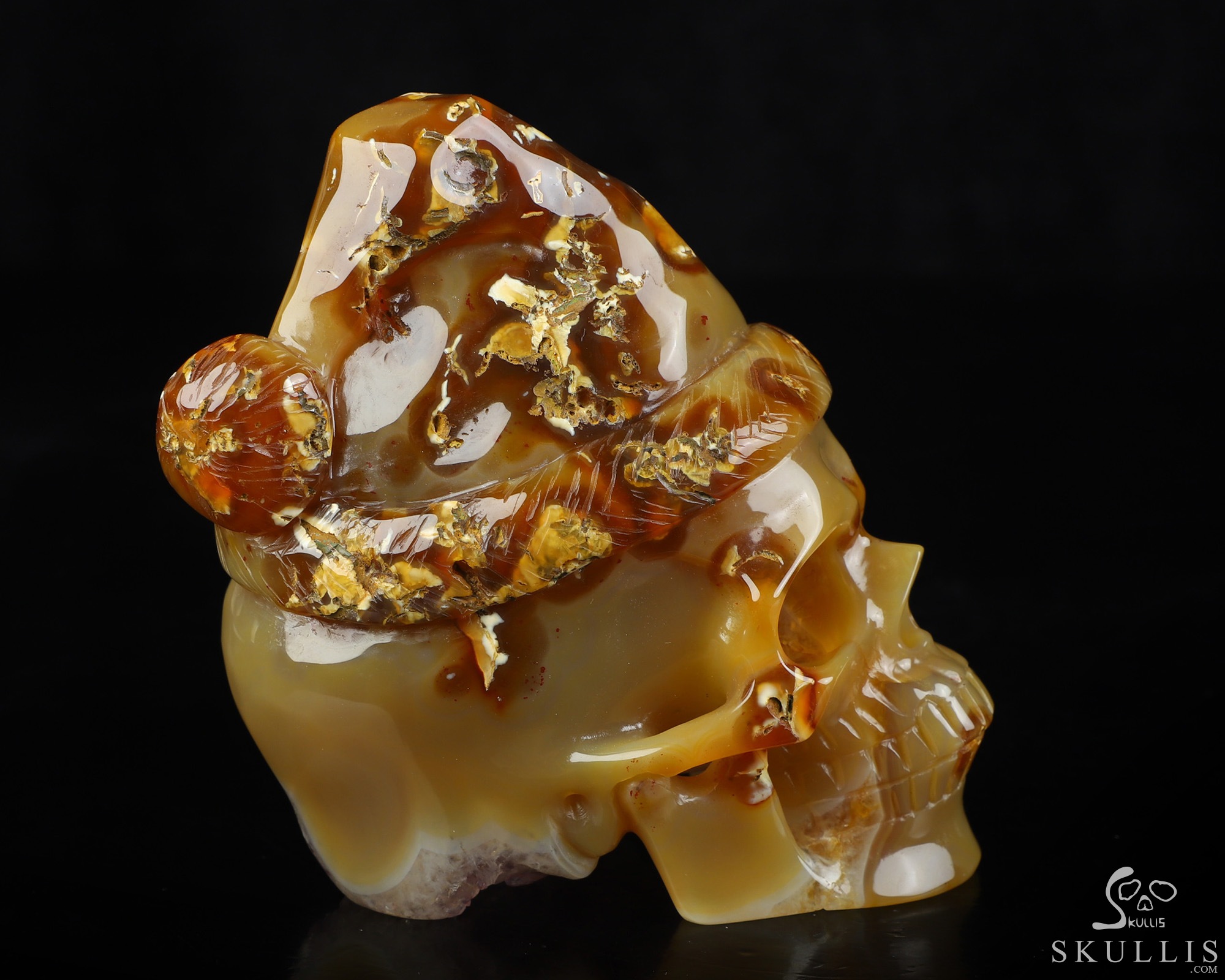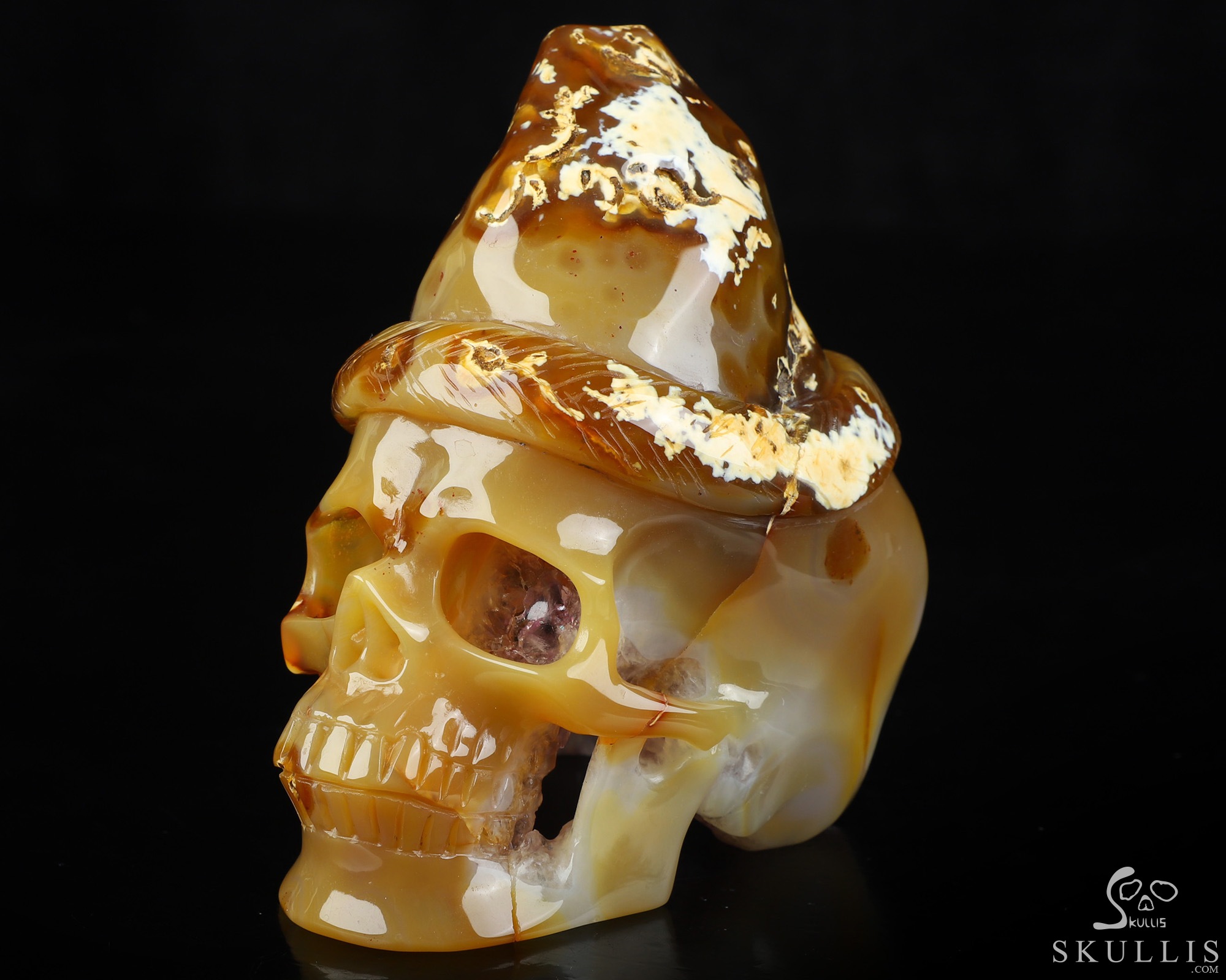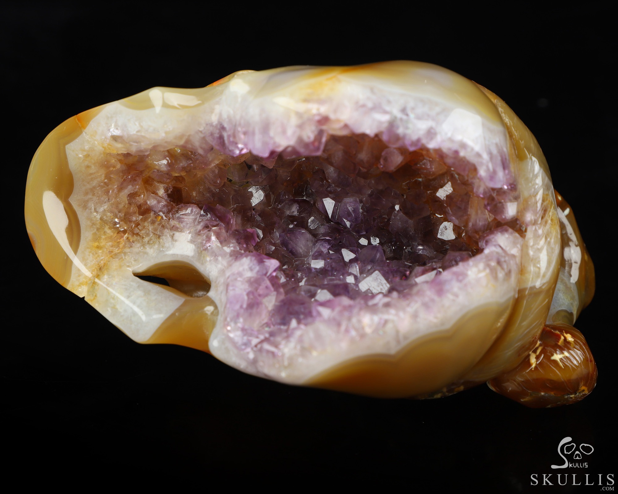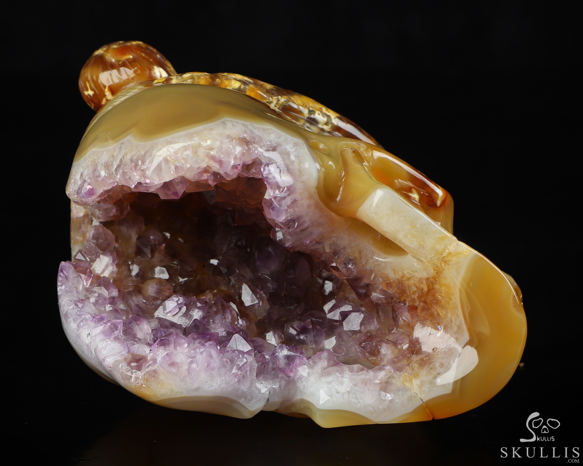 7.9" Agate Amethyst Geode Hand Carved Crystal Skull and Snail Sculpture, Crystal Healing