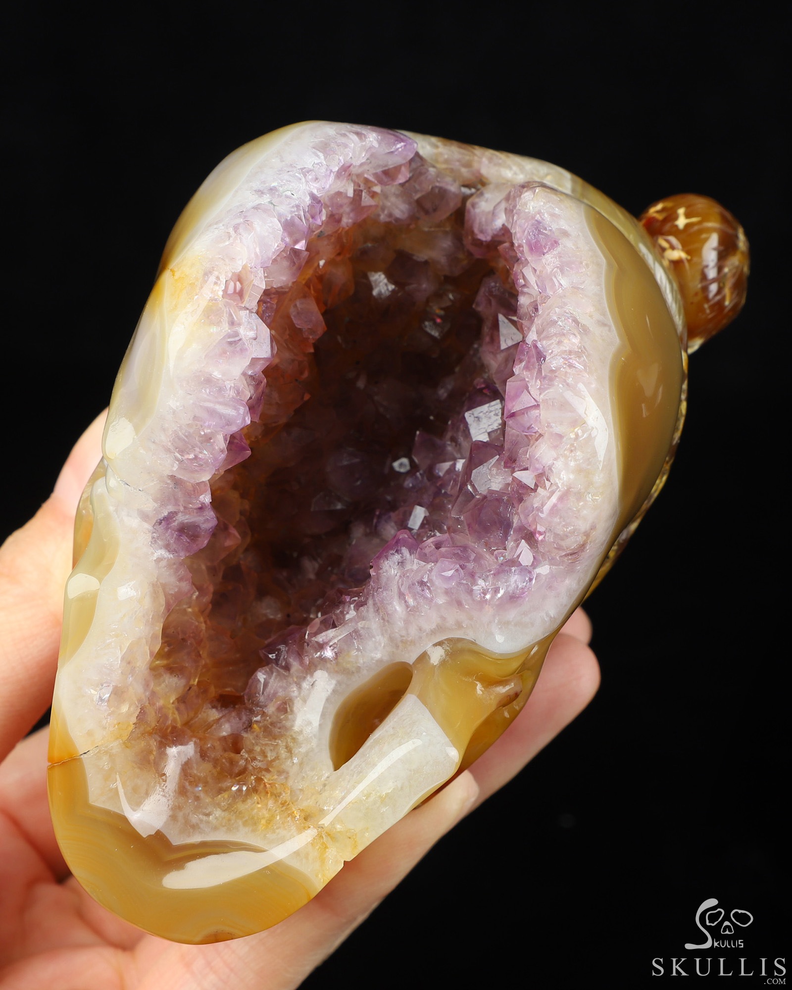 Super Realistic! Lifesized 7.0" Agate Amethyst Geode Hand Carved Crystal Skull, Crystal Healing