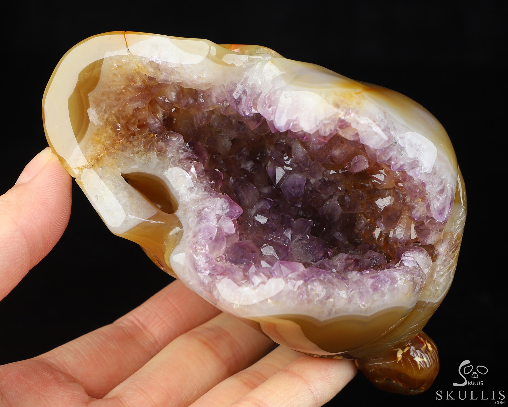 AMAZING GEODE 5.0" Agate Amethyst Geode Carved Crystal Skull,Super Realistic, Crystal Healing