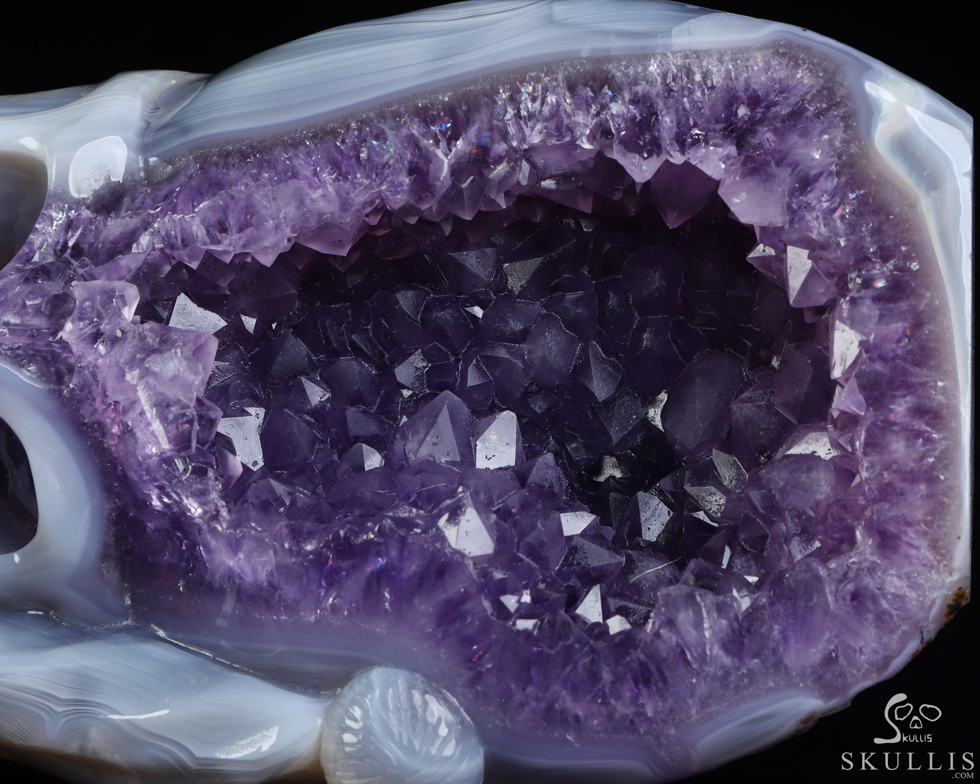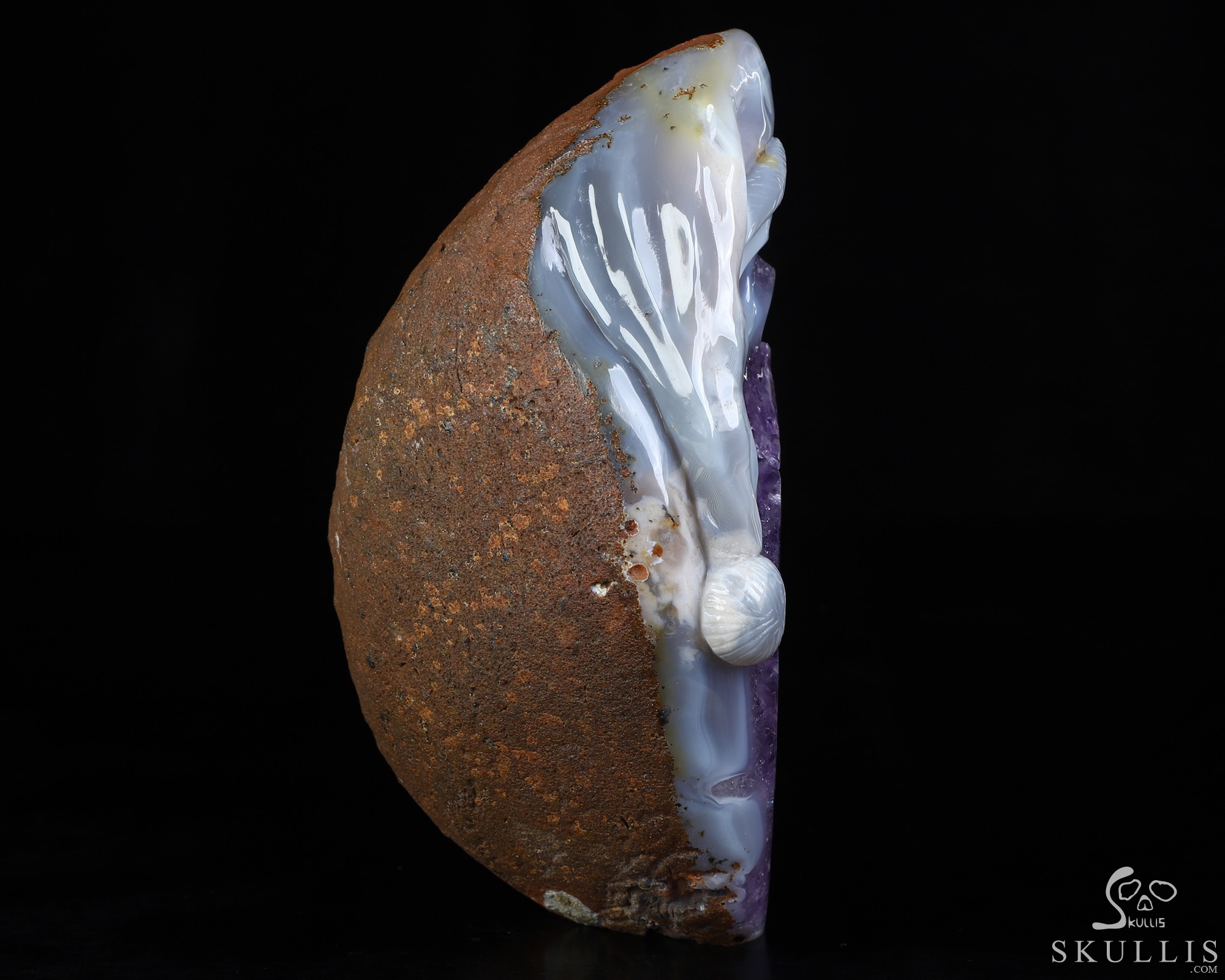 Lifesize 6.7" Agate Amethyst Geode Carved Crystal Skull, Realistic