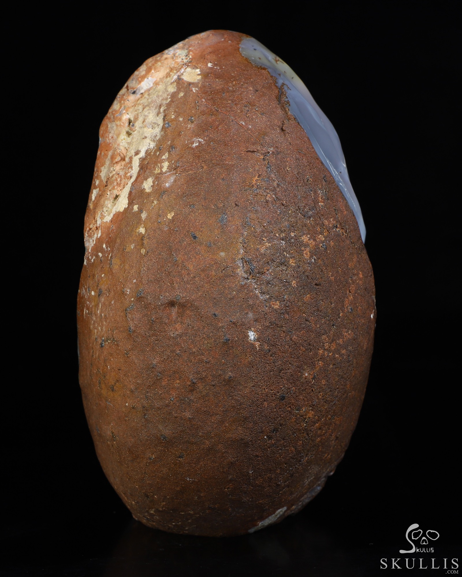 You are looking at an Agate Amethyst Geode skull. The skull is 5.3 inches from top to bottom.