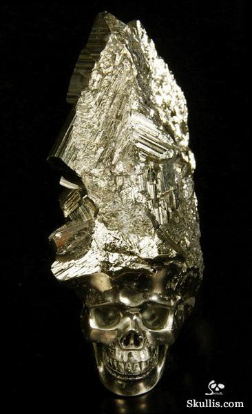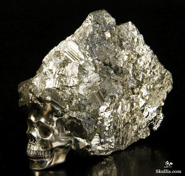 5.1" Pyrite Carved Crystal Guardian Skull, Crystal Healing