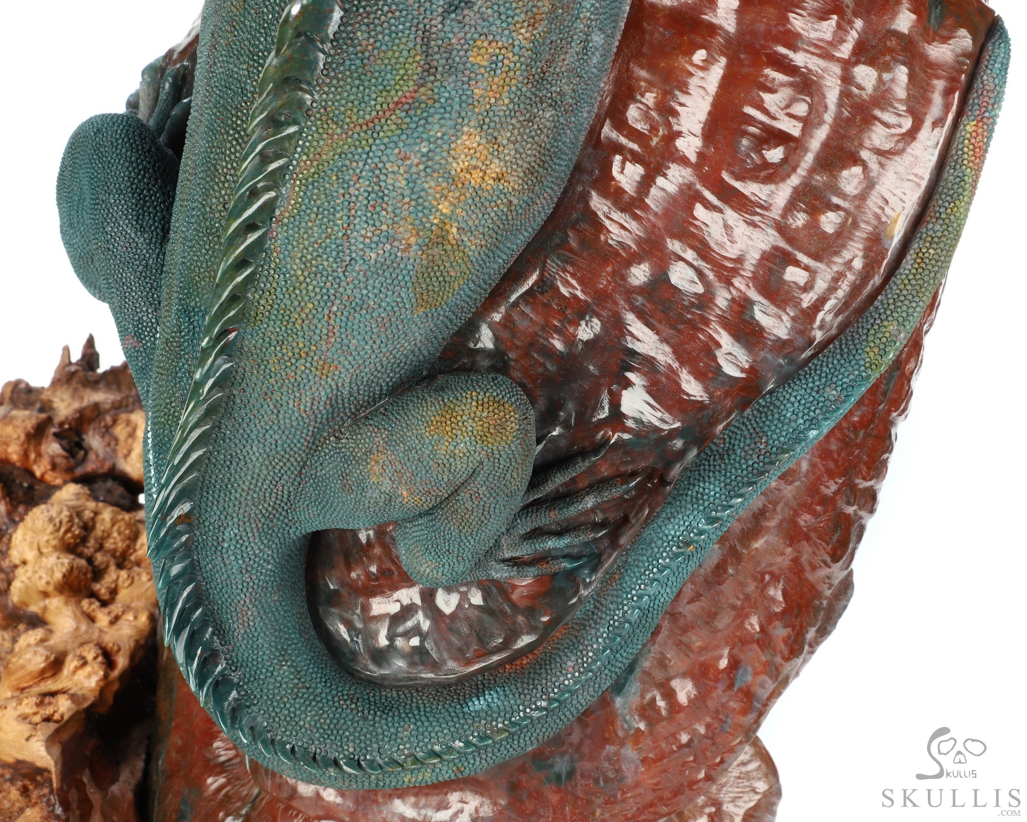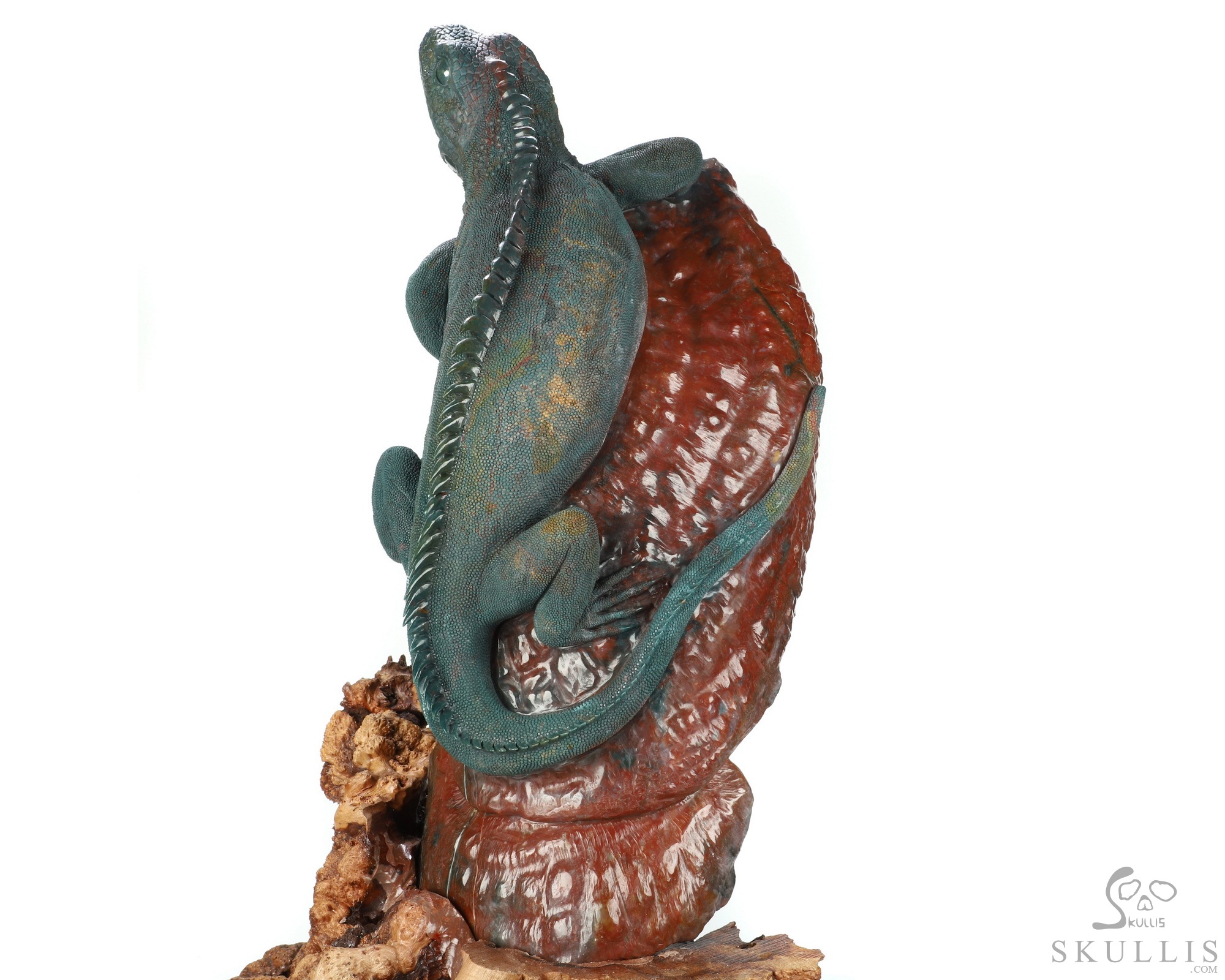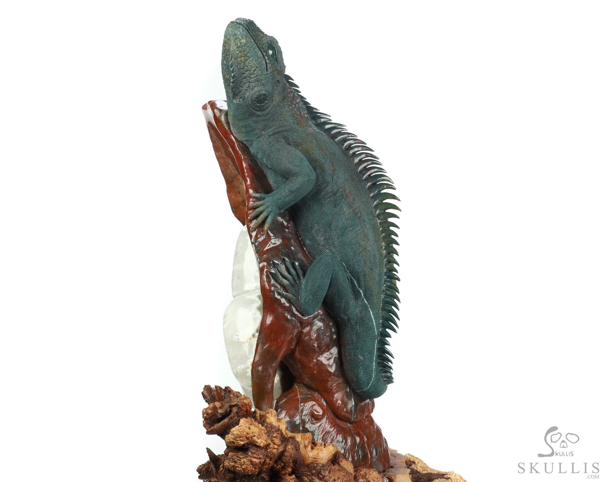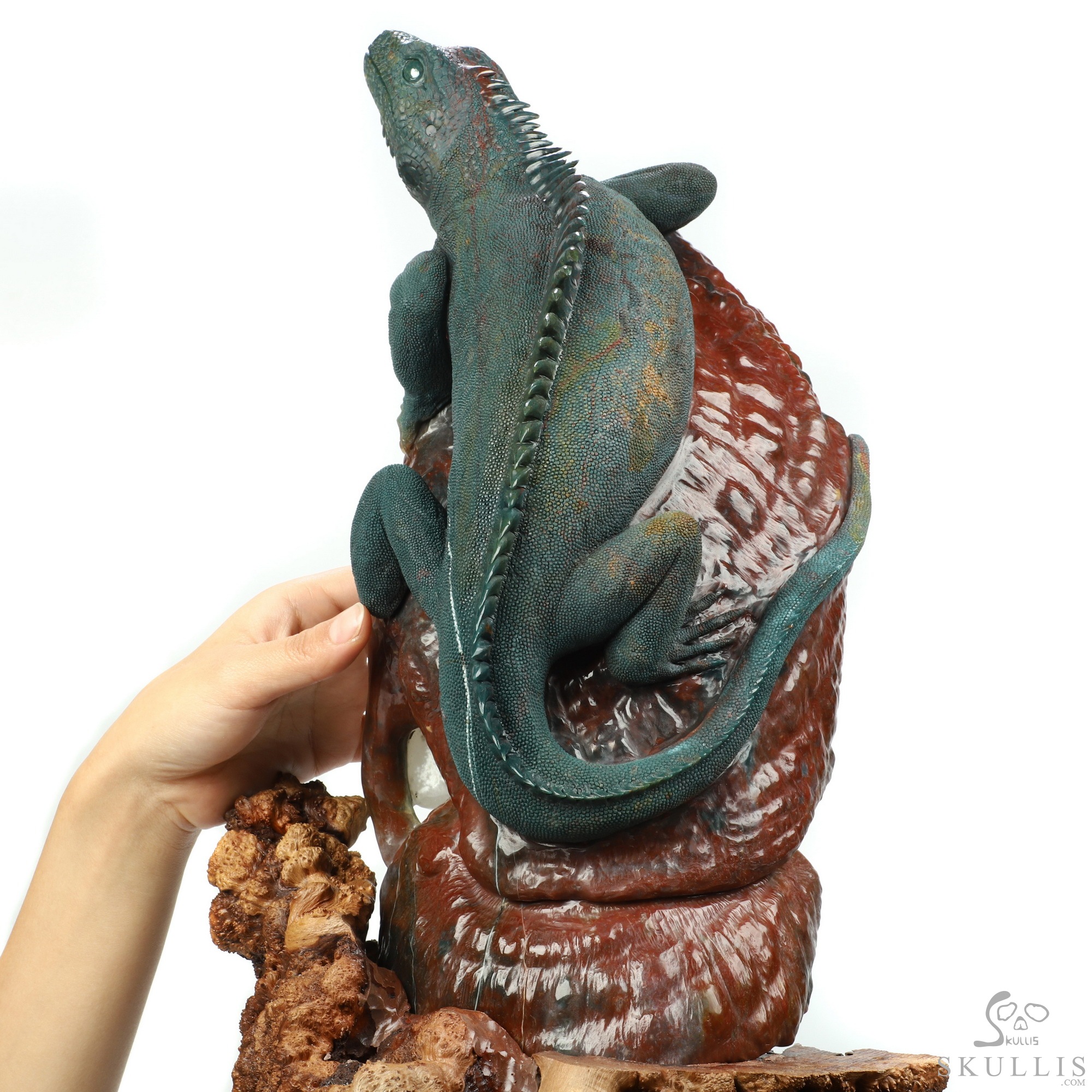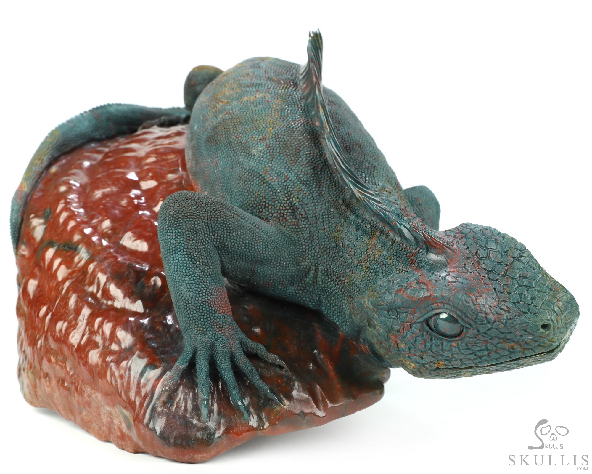 Museum Quality! Titan 21.7" Bloodstone Hand Carved Crystal Lizard Sculpture, Crystal Healing