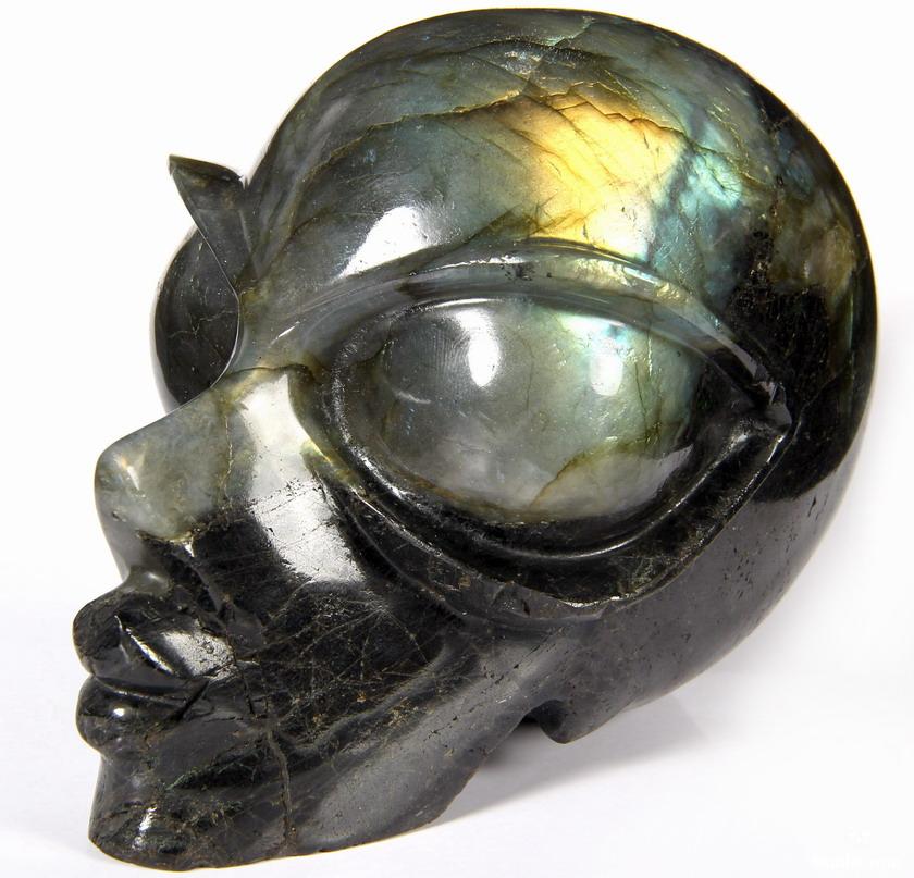 NEW STYLE HUGE 5.0" Labradorite Carved Crystal Beauty Alien Skull