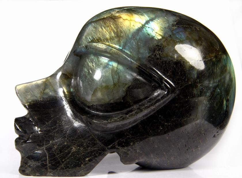 Flash 5.3" Labradorite Hand Carved Crystal Skull, Super Realistic, Crystal Healing