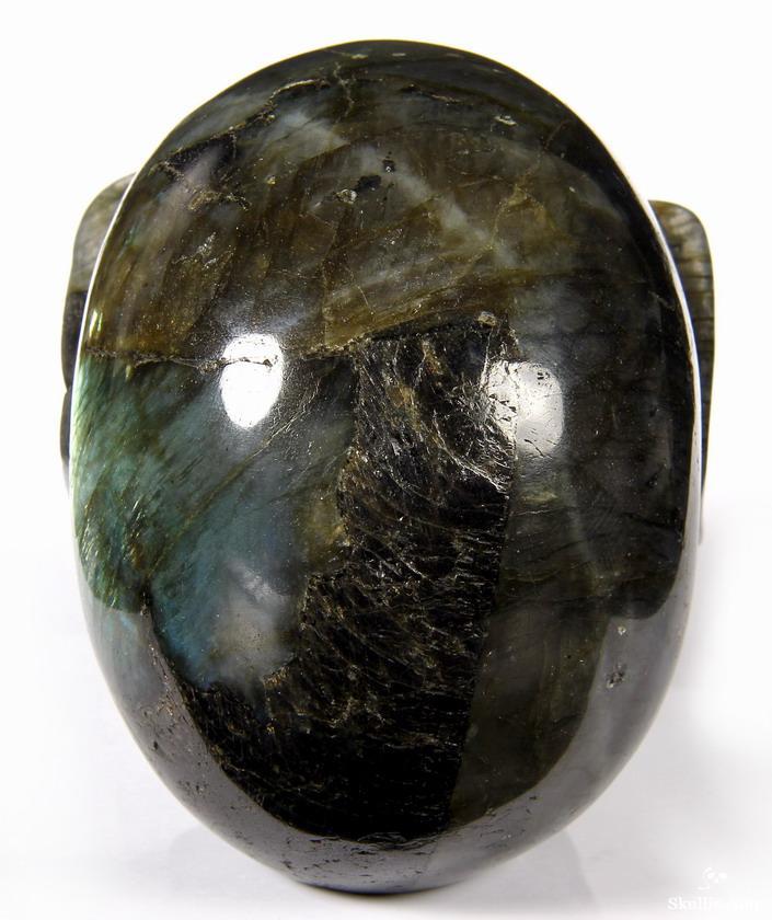 7.7" Labradorite Hand Carved Crystal Skull and Owls Sculpture, Crystal Healing