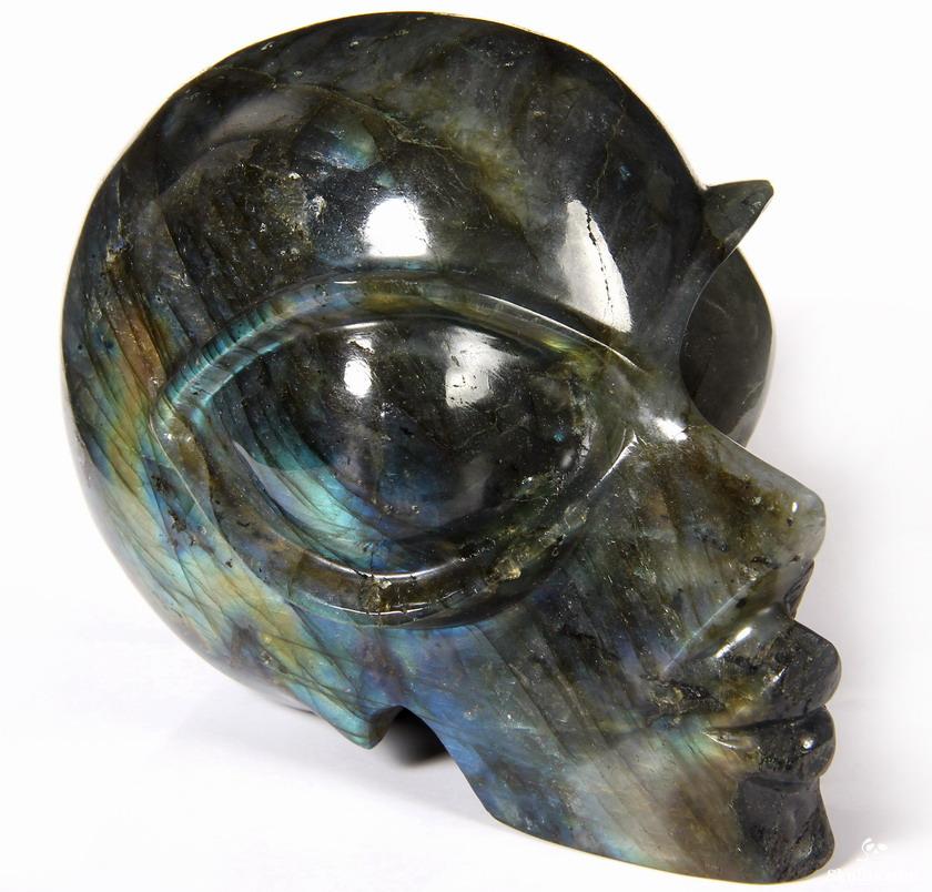 5.1" Labradorite Hand Carved Crystal Skull, Super Realistic, Crystal Healing