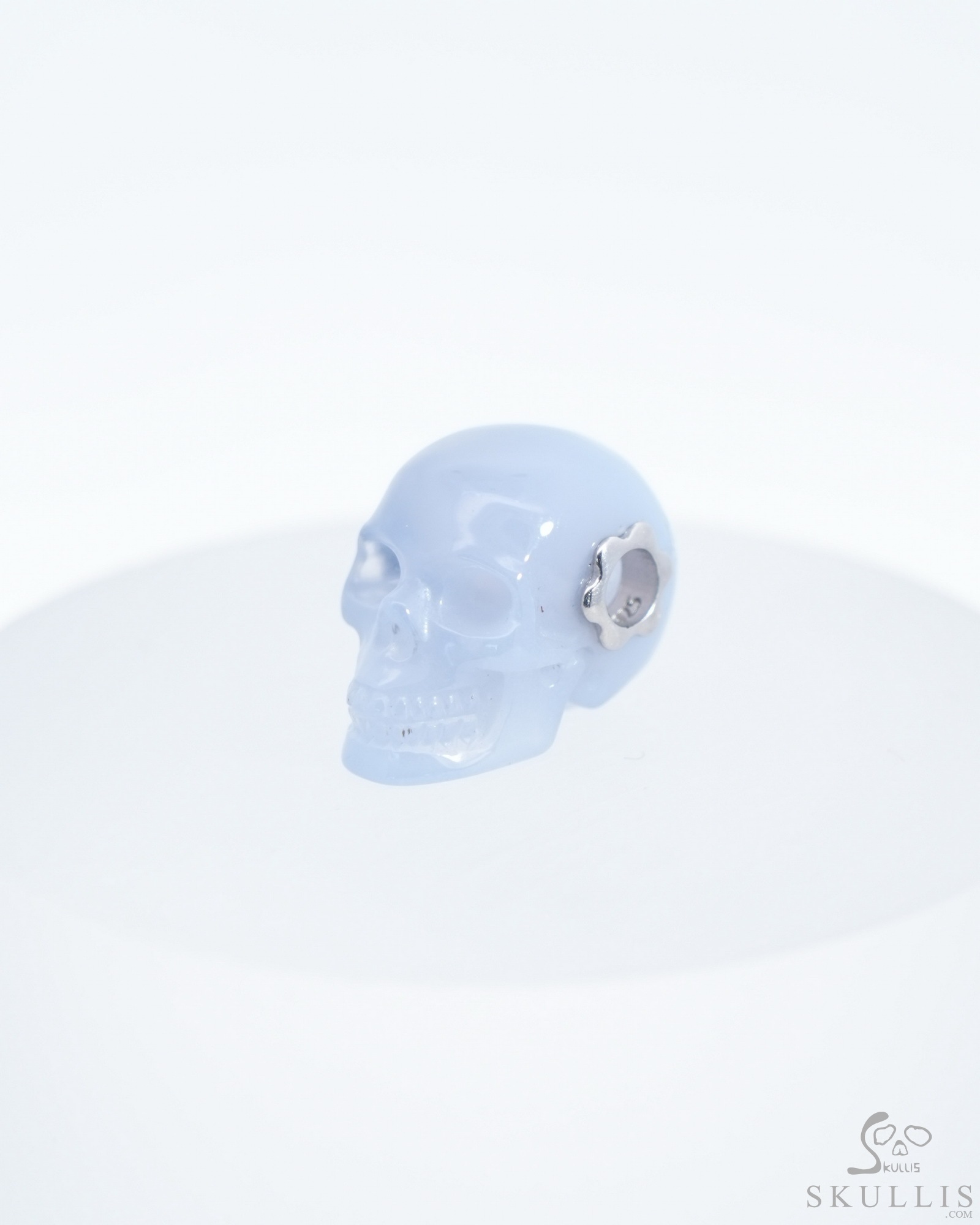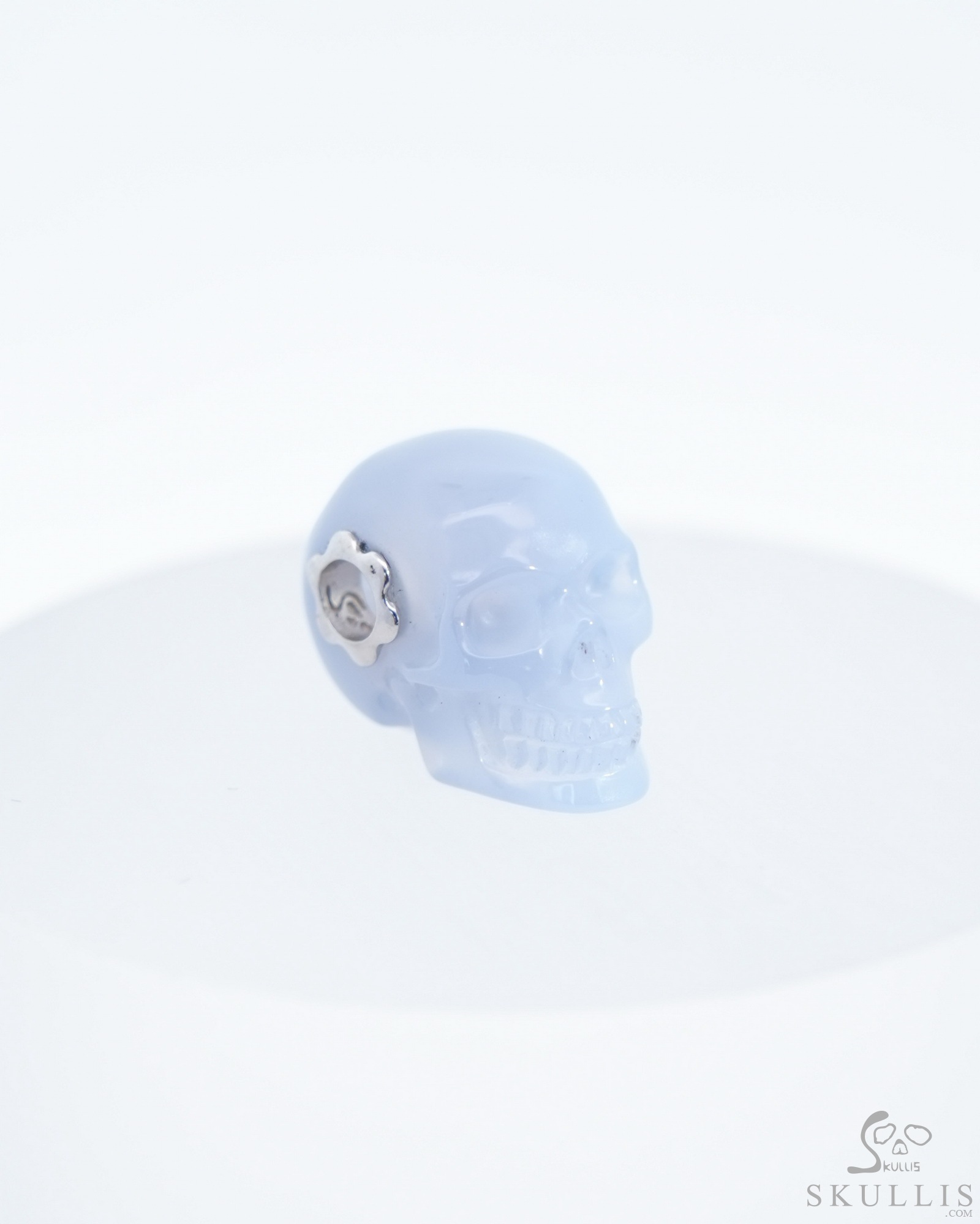 You are looking at a Blue Chalcedony skull. The skull is 0.7 inches from front to back.