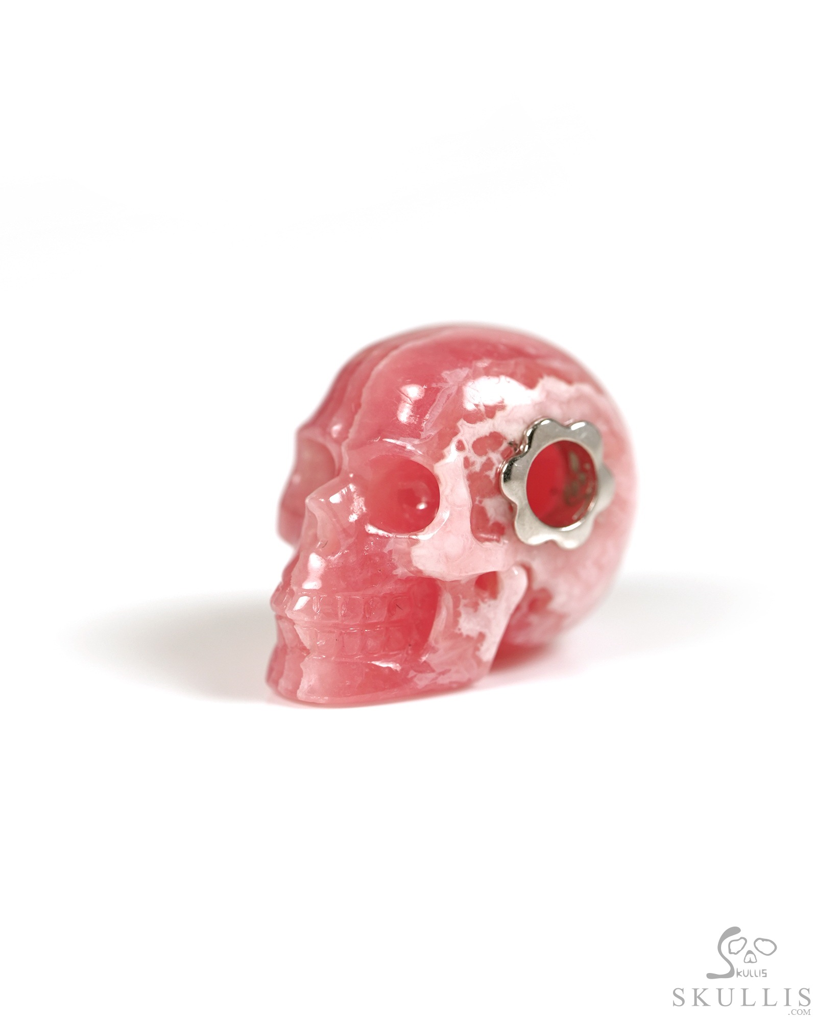 0.7" Rhodochrosite Hand Carved Crystal Skull, Realistic, Crystal Healing